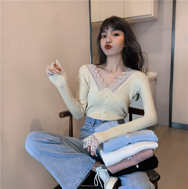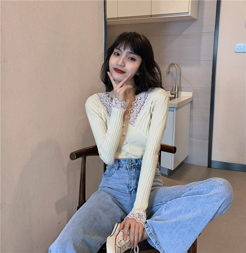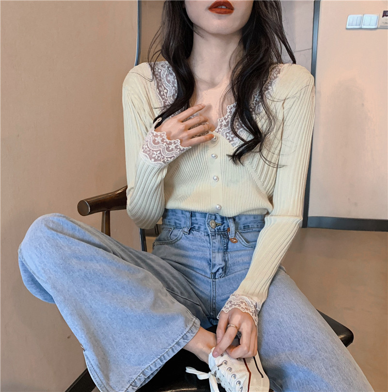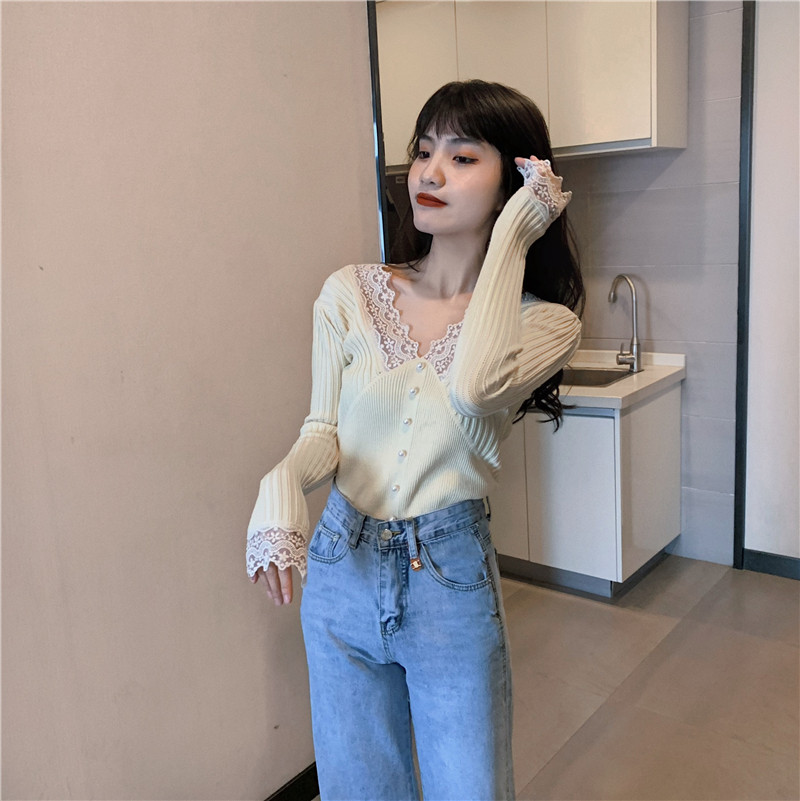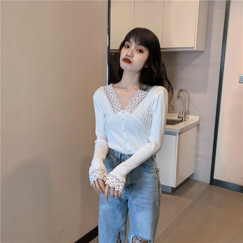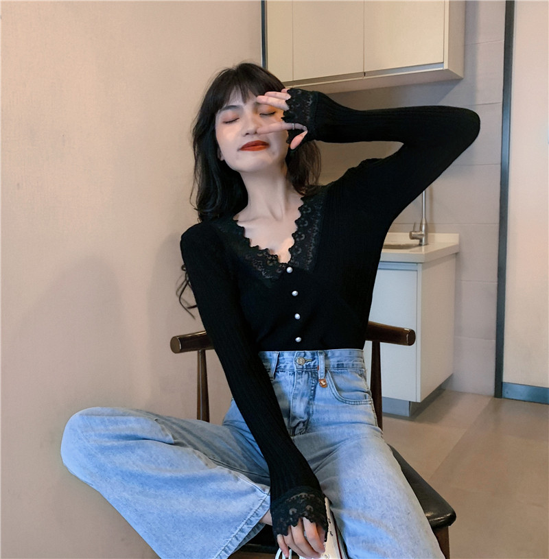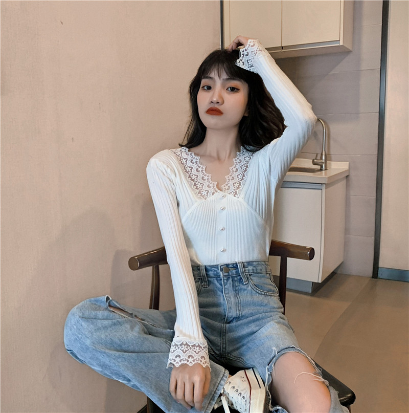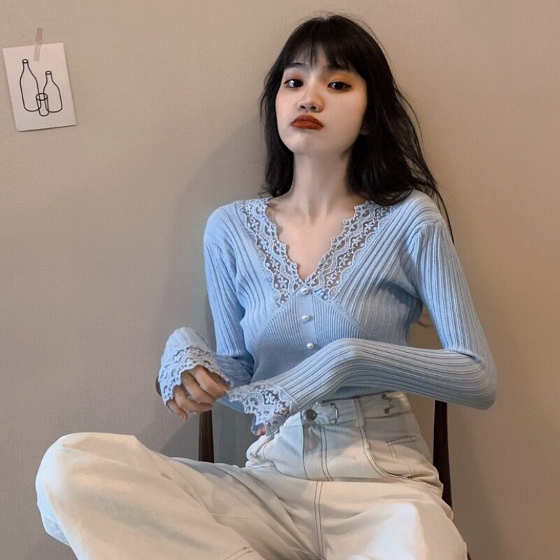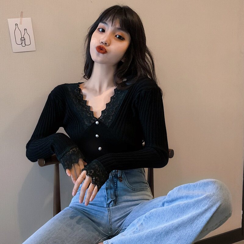 Кружевной трикотажный демисезонный приталенный лонгслив, свитер, коллекция 2023, в западном стиле