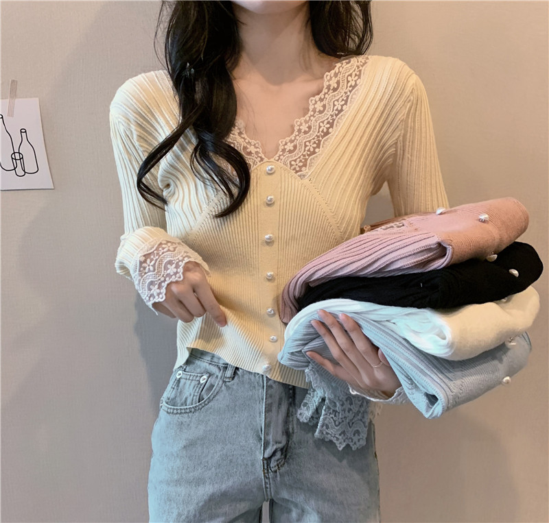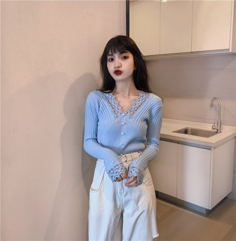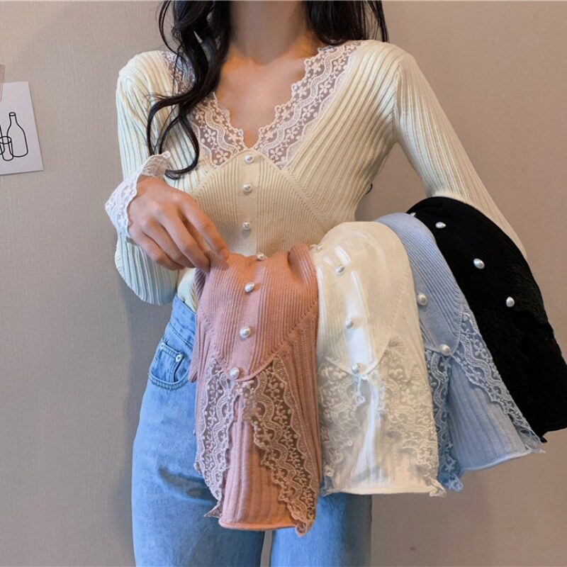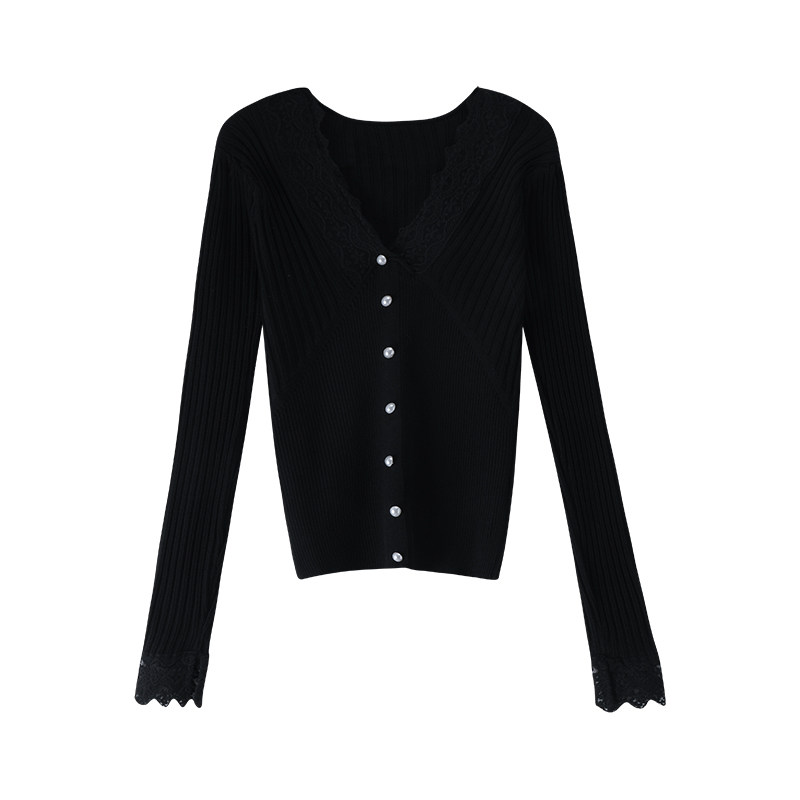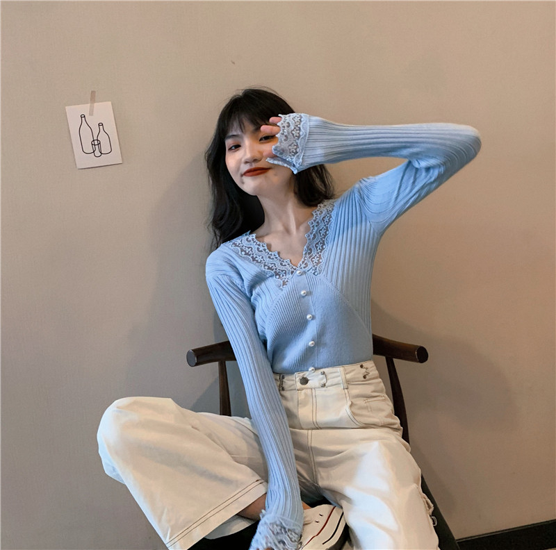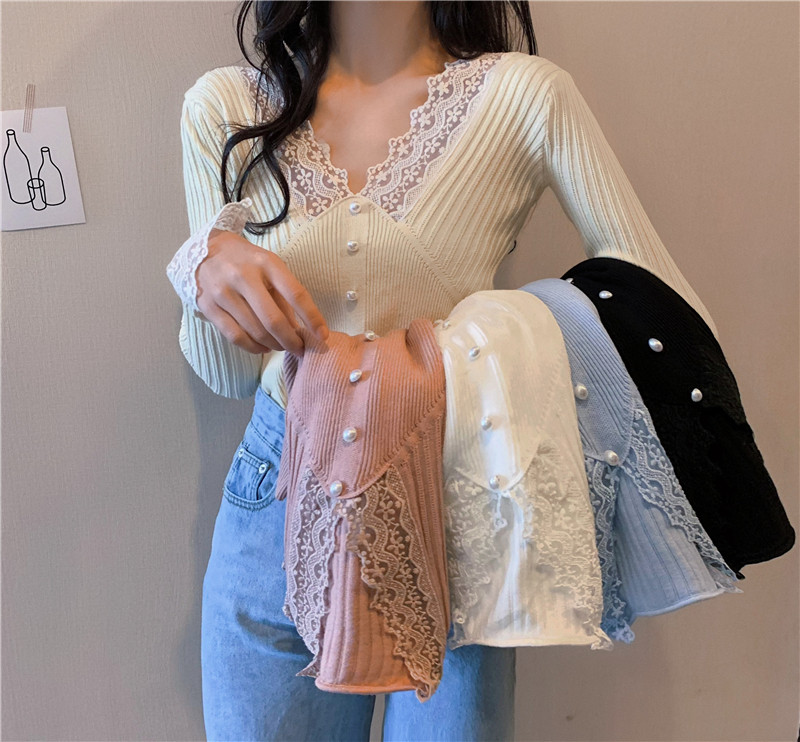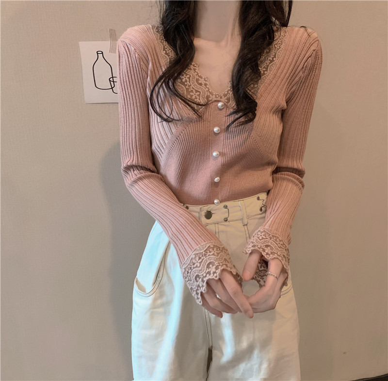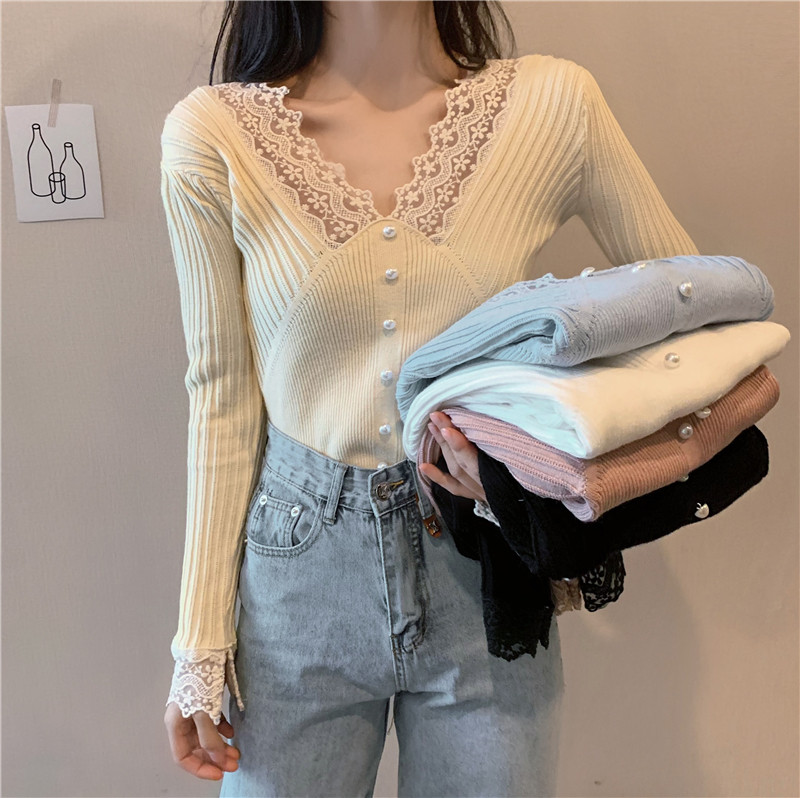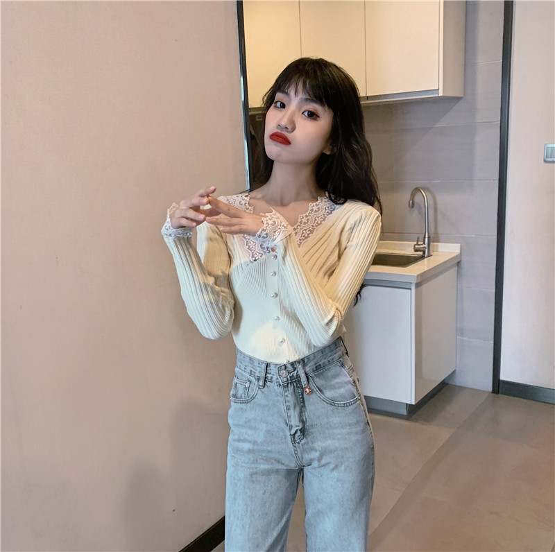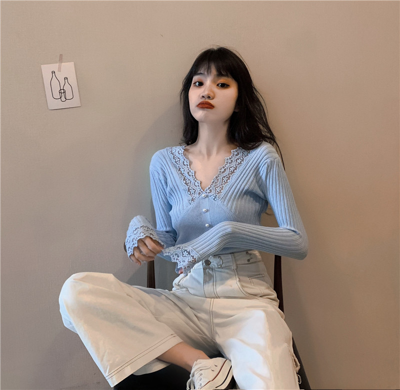 Кружевной трикотажный демисезонный приталенный лонгслив, свитер, коллекция 2023, в западном стиле