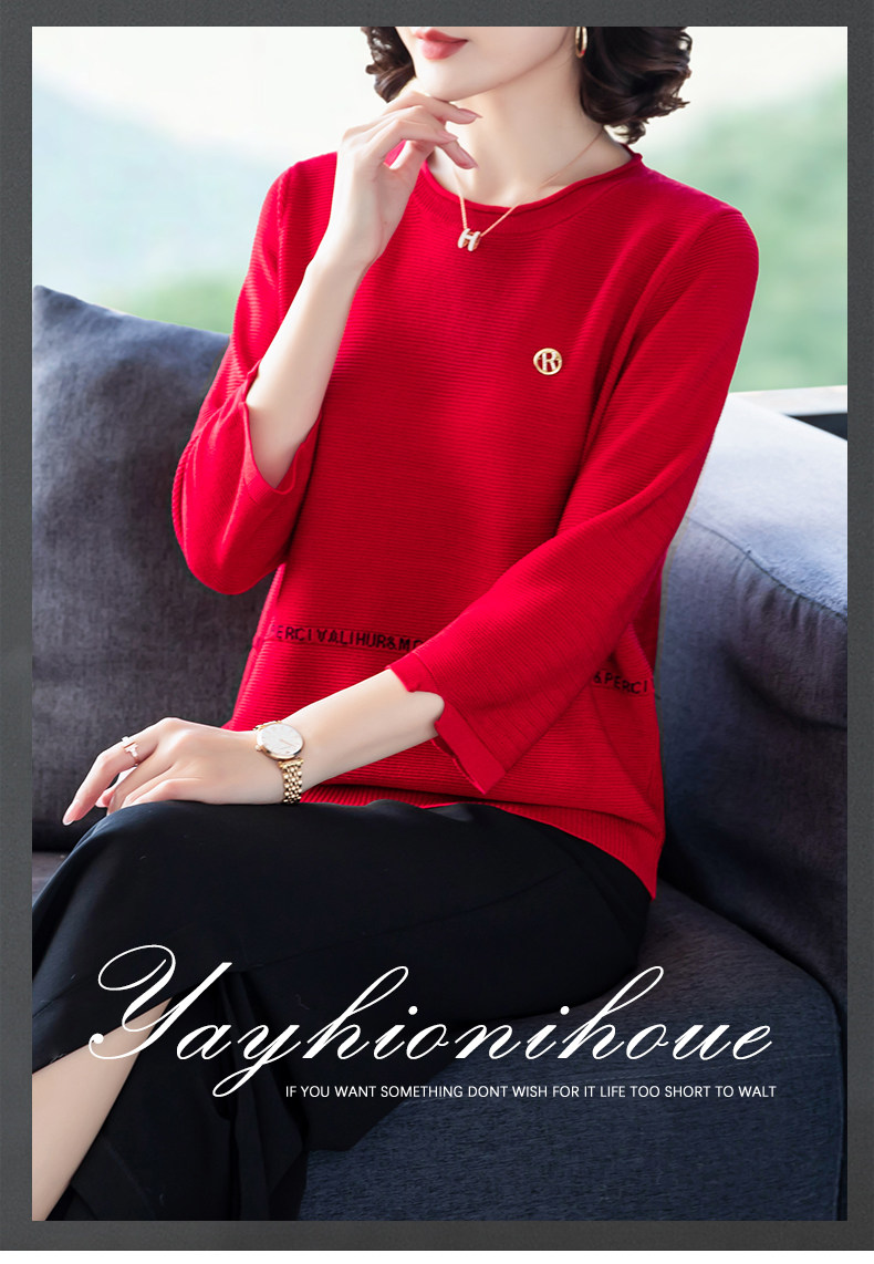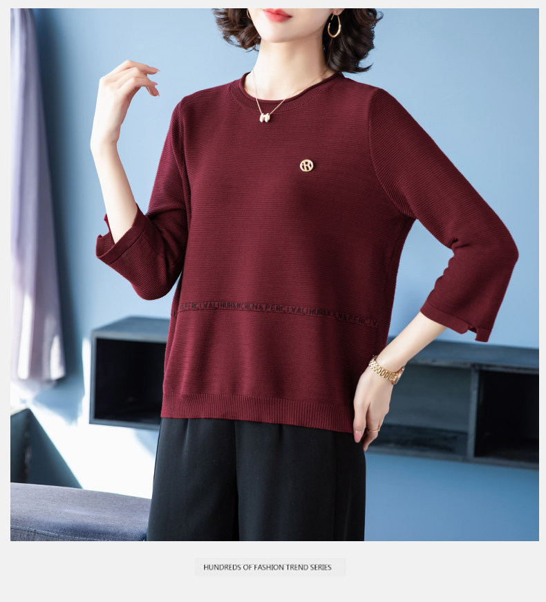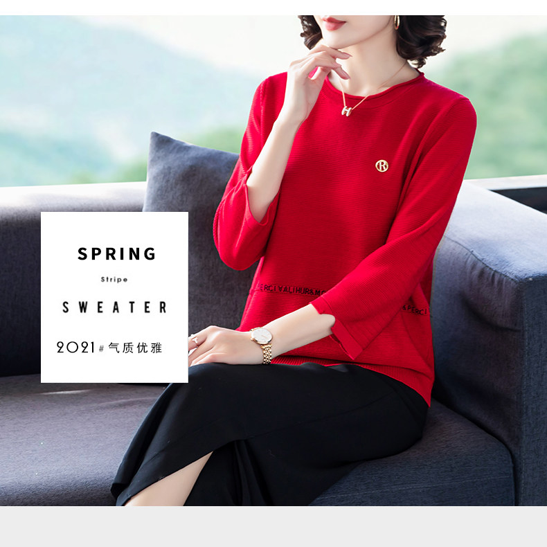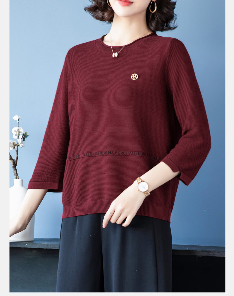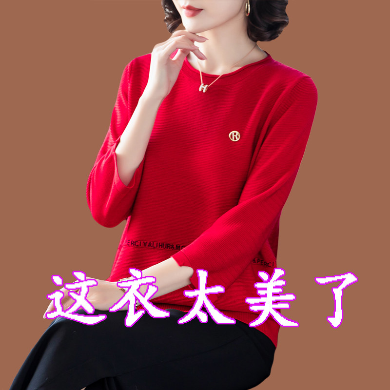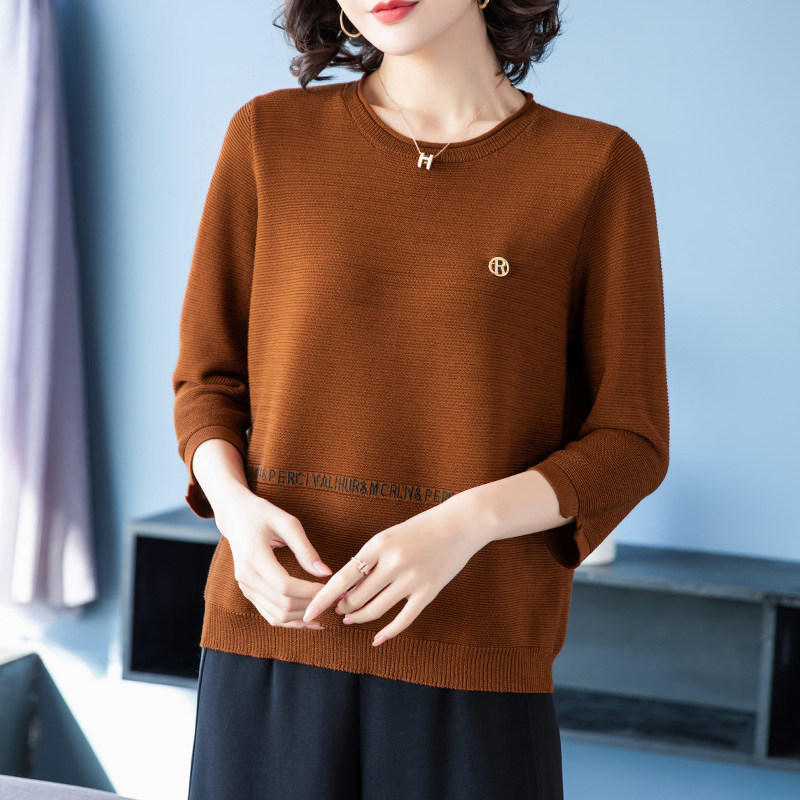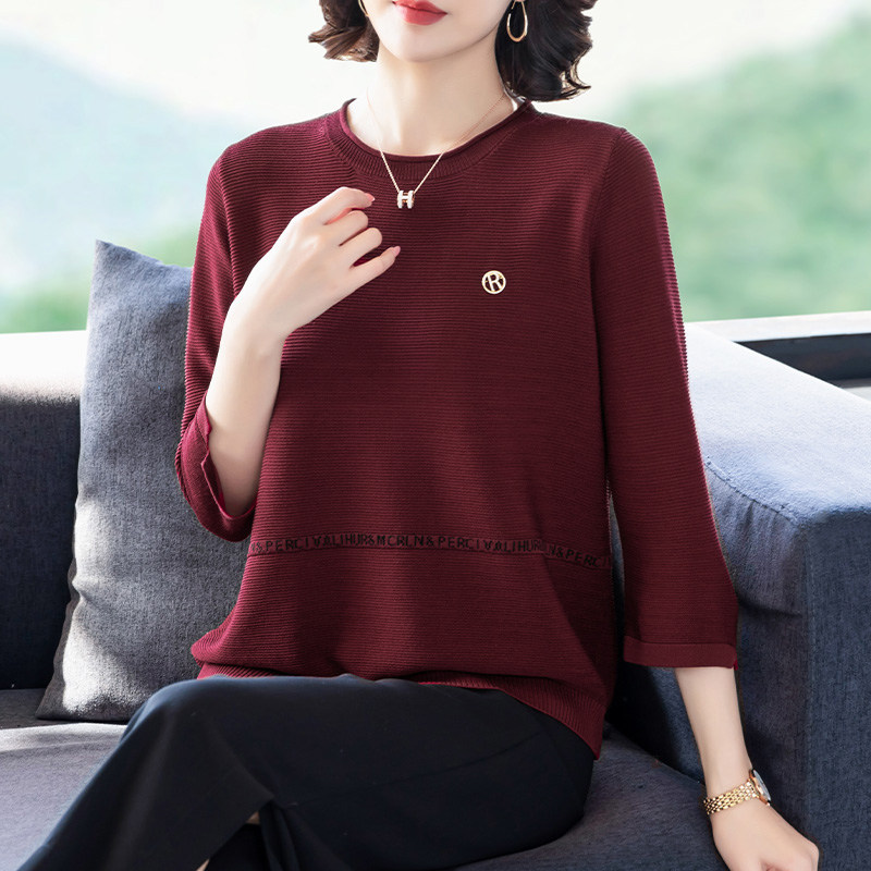 Осенняя футболка, весенний трикотажный тонкий свитер, для среднего возраста, оверсайз
