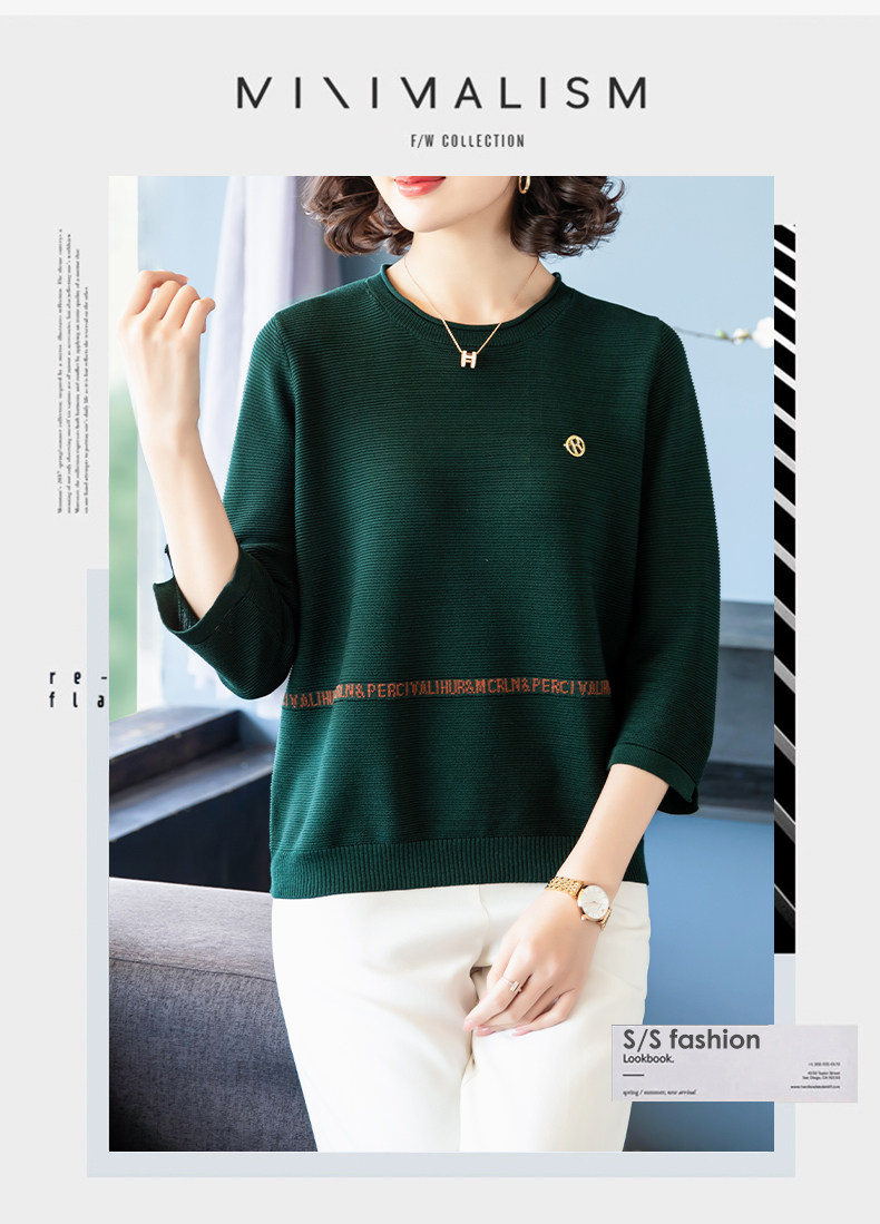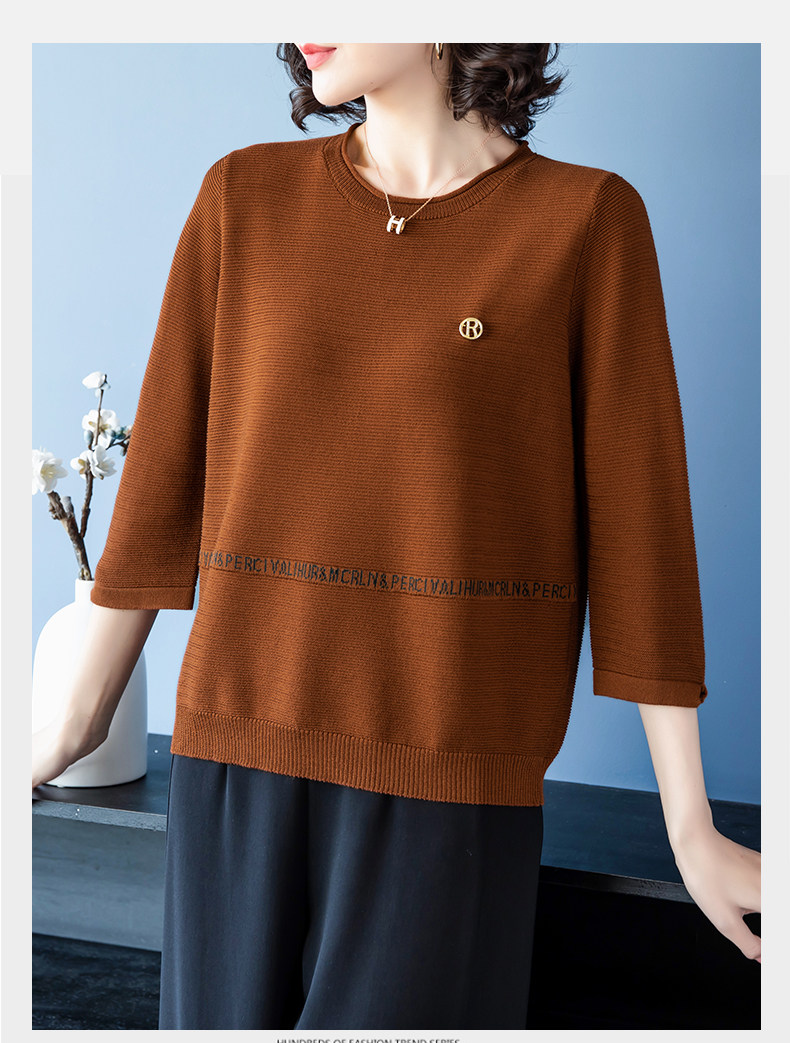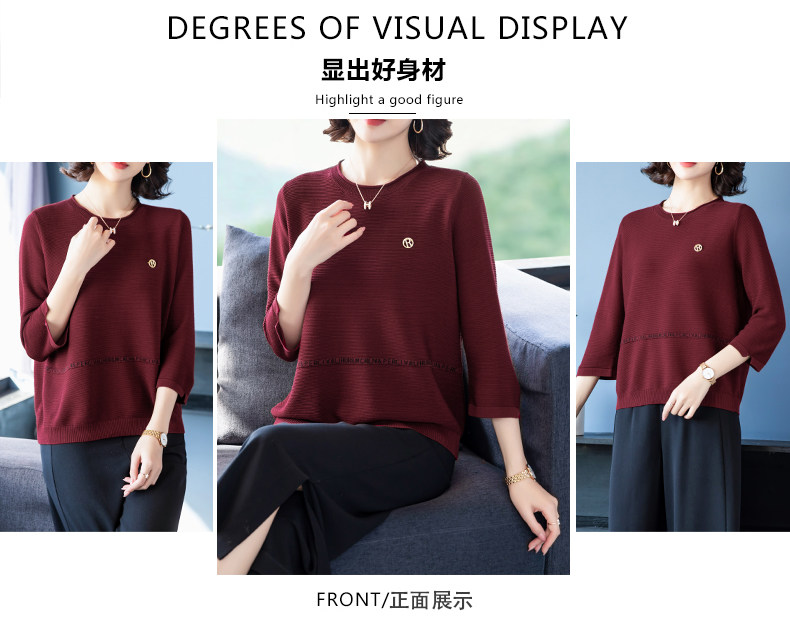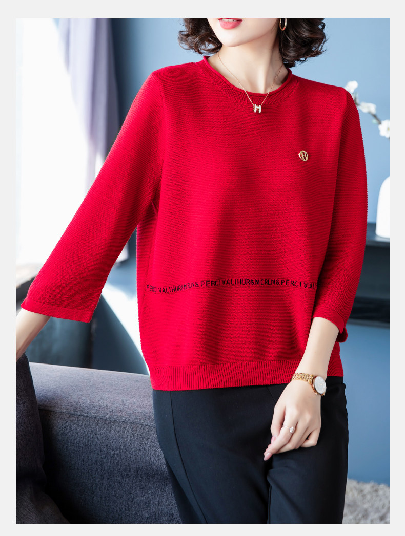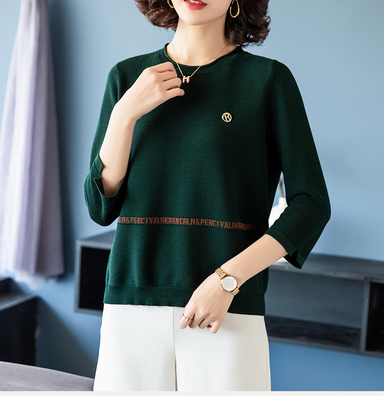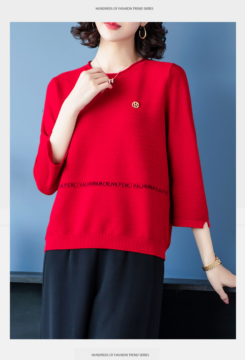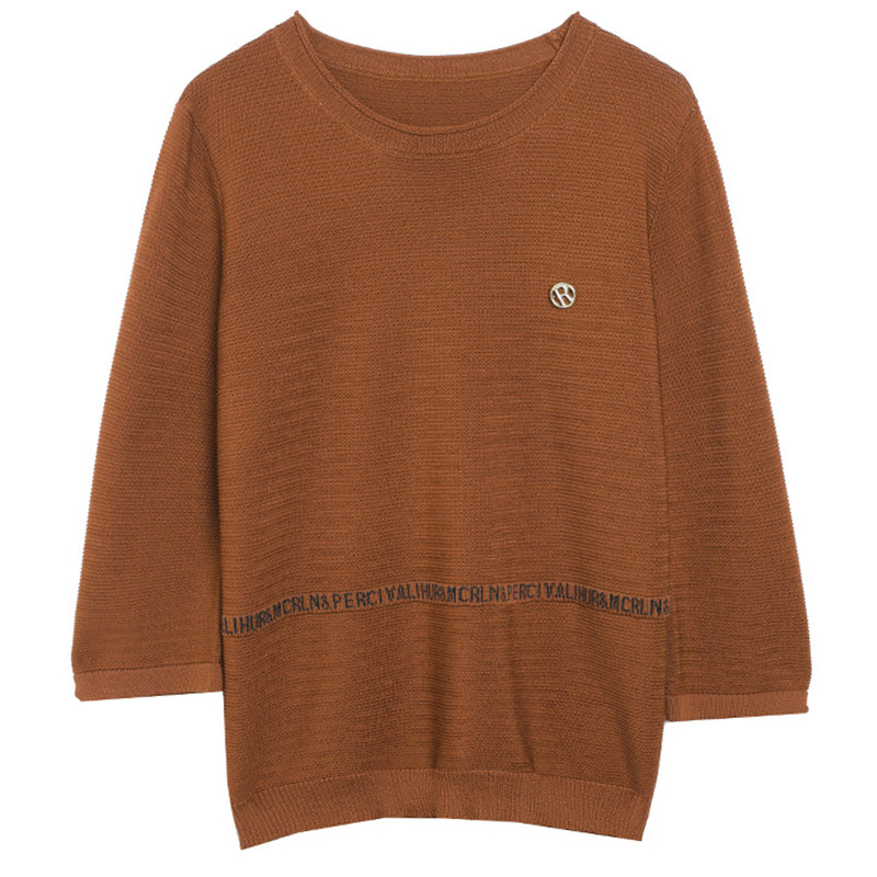 Осенняя футболка, весенний трикотажный тонкий свитер, для среднего возраста, оверсайз