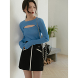 Трикотажный осенний приталенный комплект, городской стиль, 2021 года, с открытой спиной