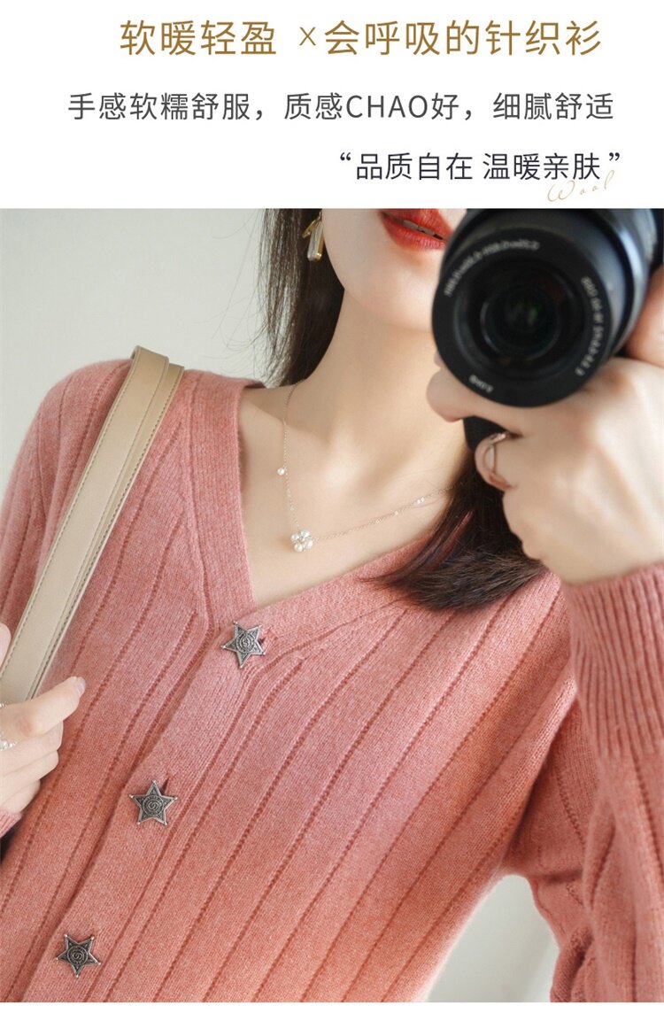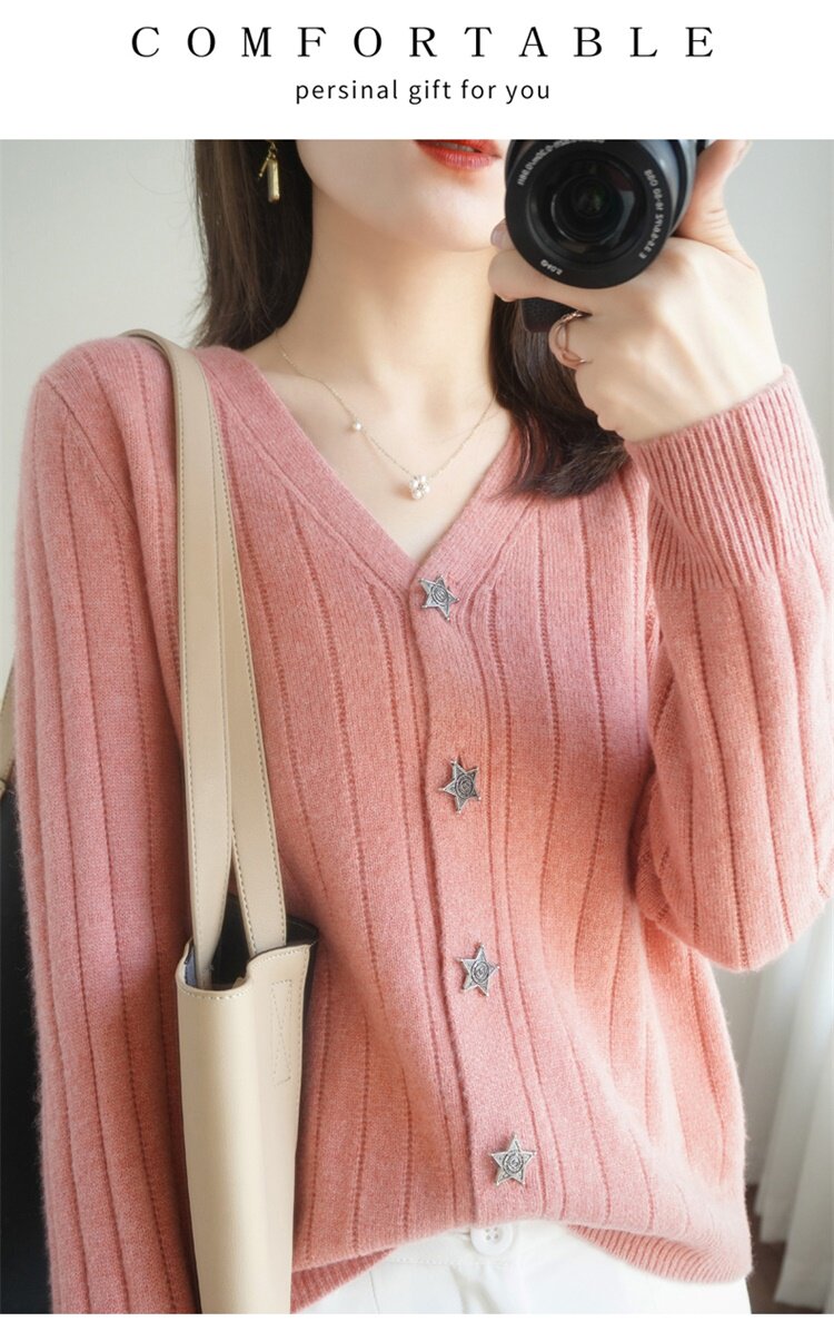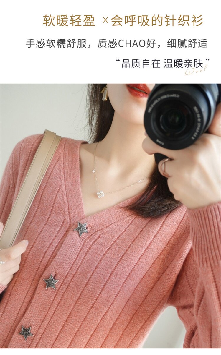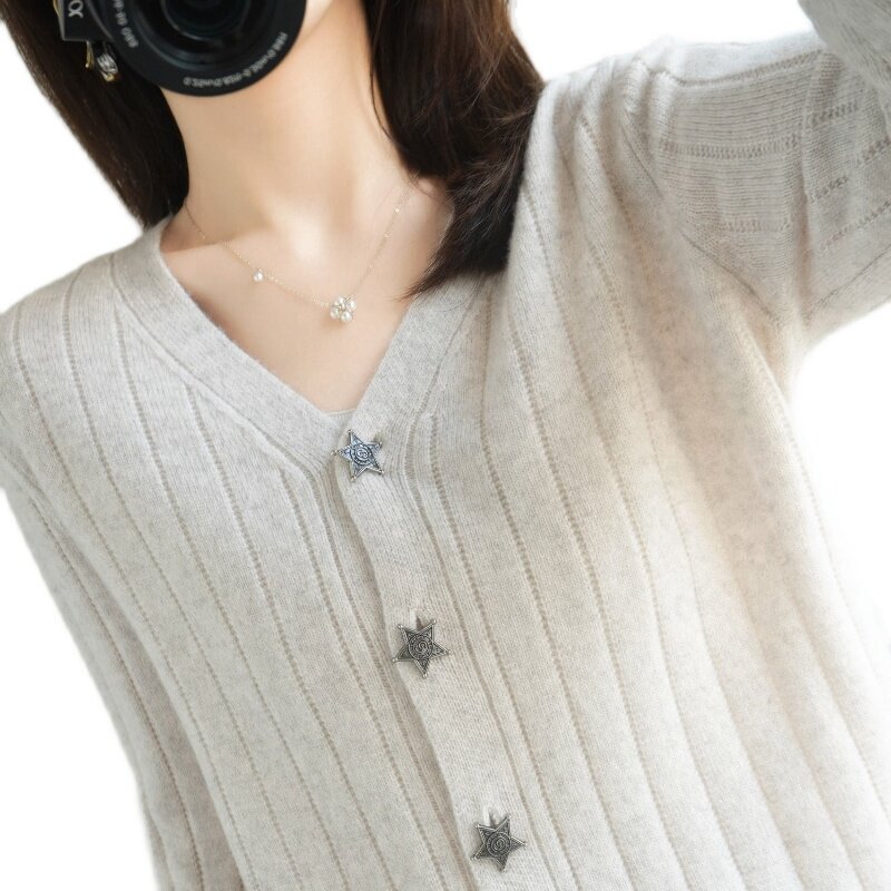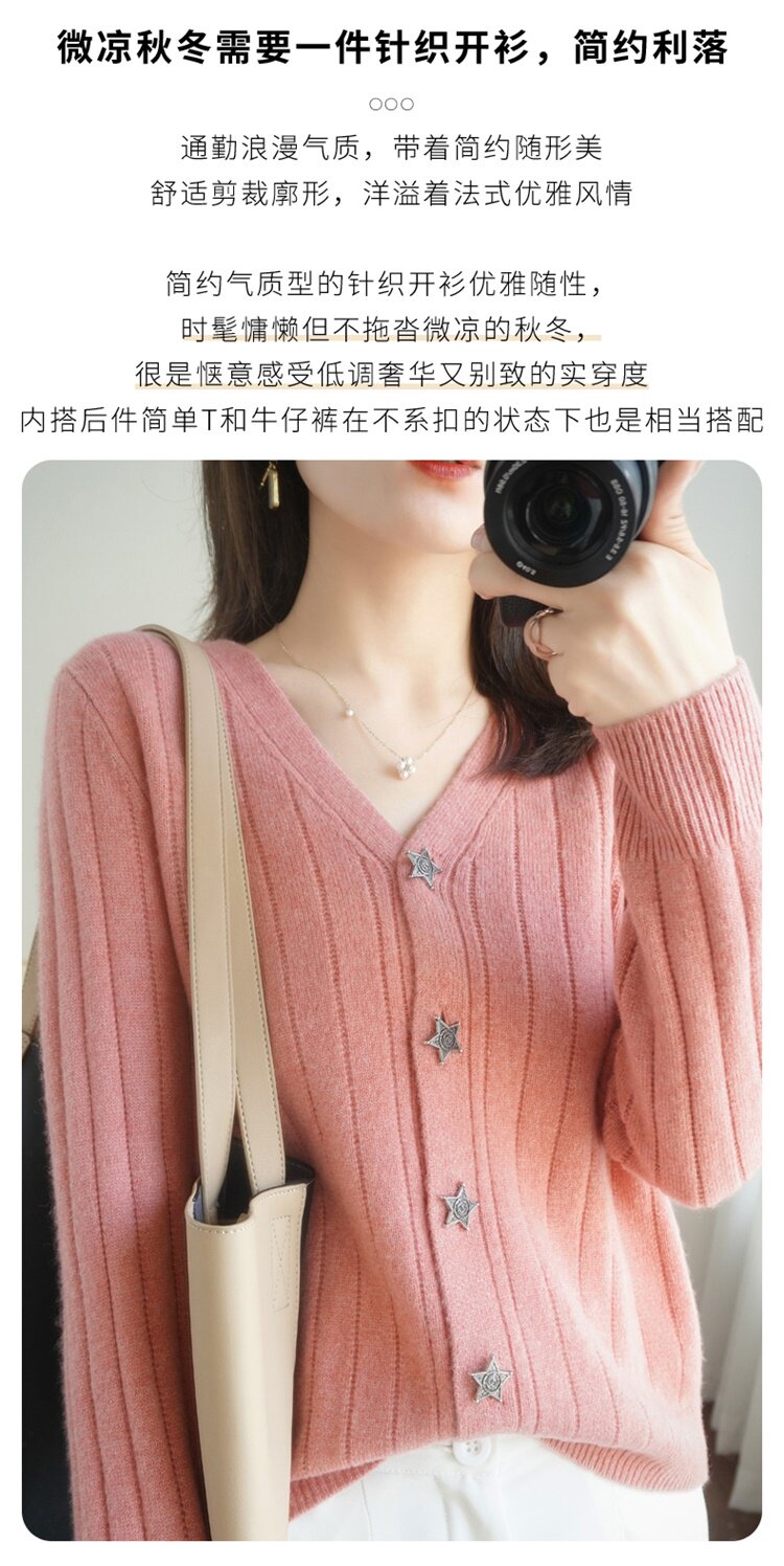 Демисезонный трикотажный кардиган, куртка, модный короткий кашемировый базовый приятный телу свитер, V-образный вырез, оверсайз