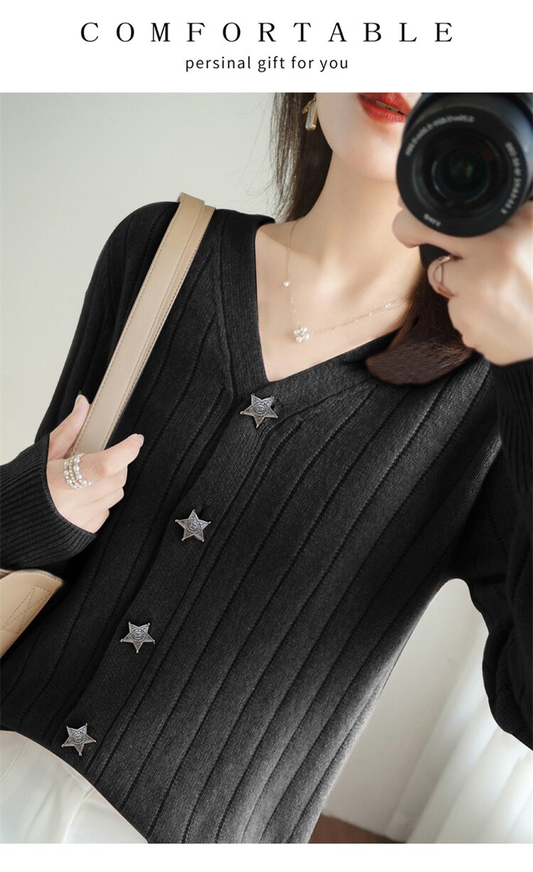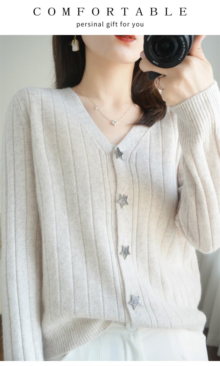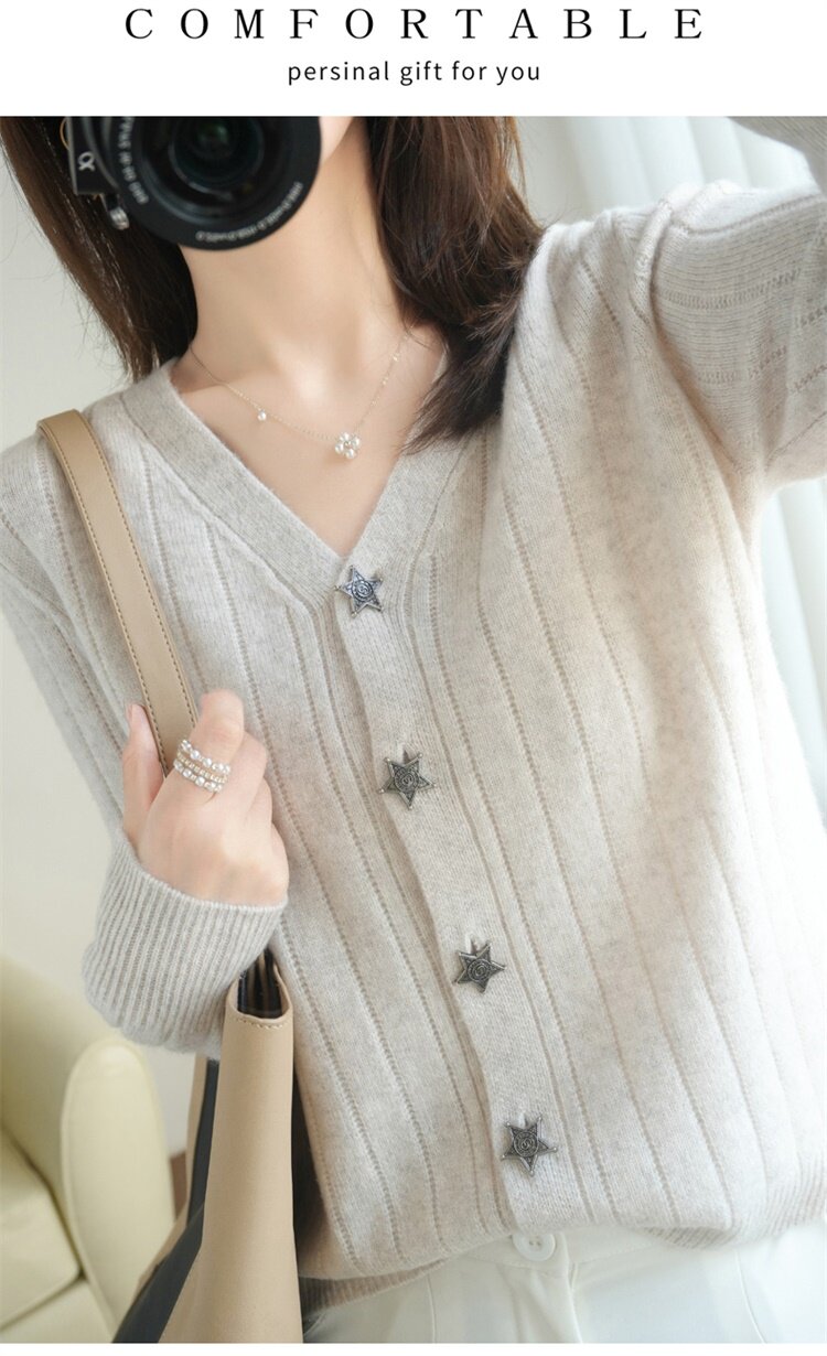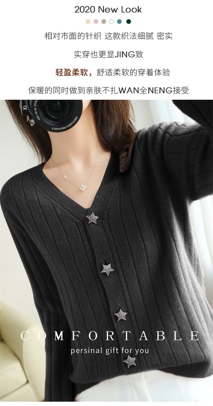 Демисезонный трикотажный кардиган, куртка, модный короткий кашемировый базовый приятный телу свитер, V-образный вырез, оверсайз