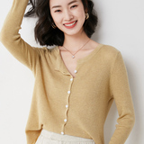 Осенний кашемировый кардиган, свитер, трикотажная шерстяная короткая куртка, 2023, V-образный вырез, оверсайз
