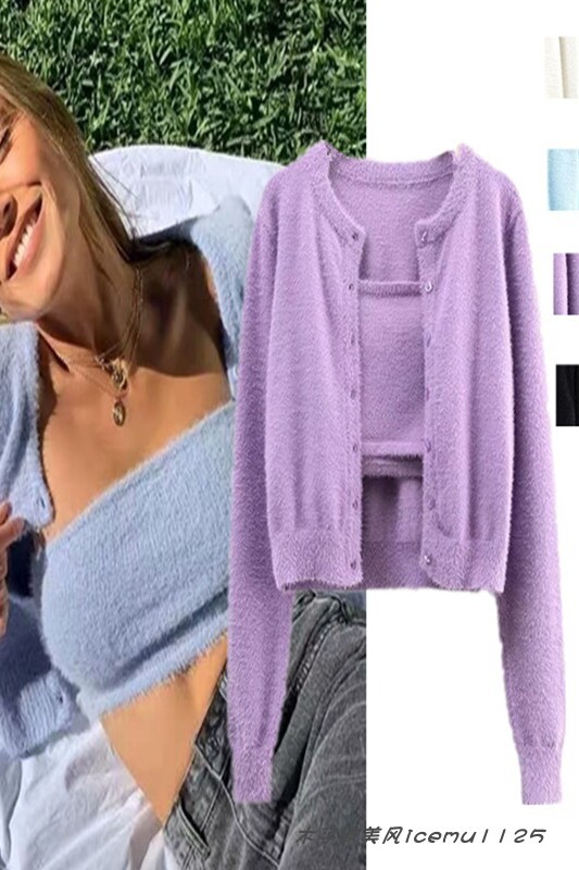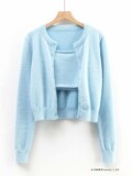 Бархатный топ без лямок, кардиган, комплект с круглым воротником, трикотажный свитер, короткая футболка, по фигуре
