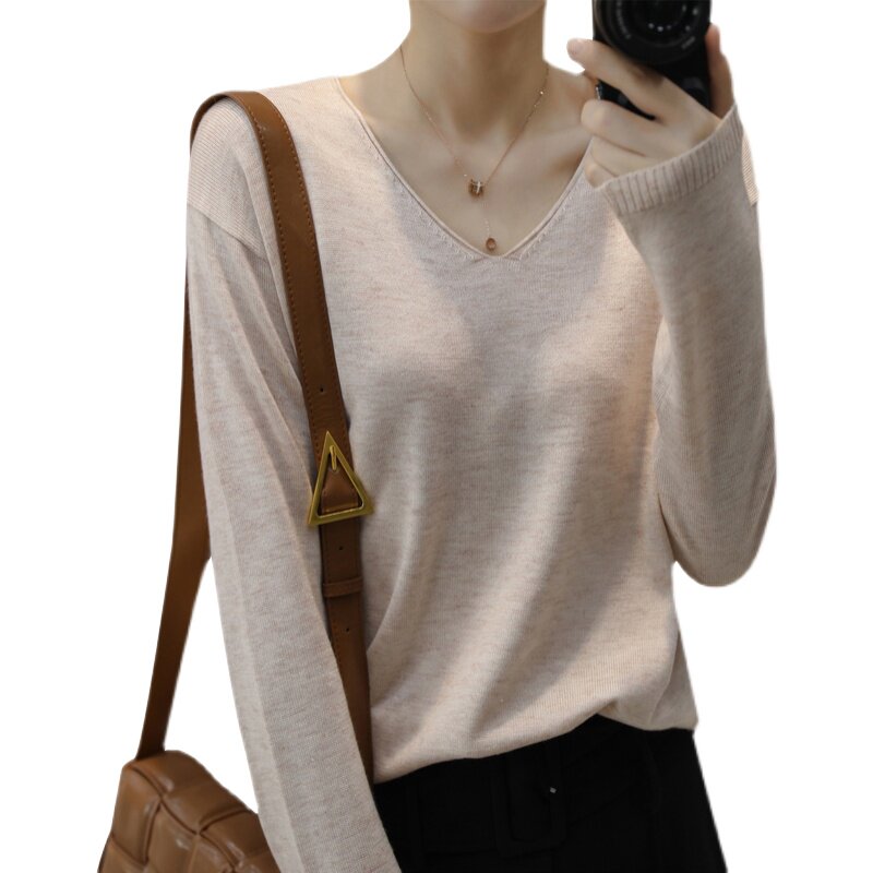 Трикотажный осенний свитер, шерстяной тонкий комплект, в корейском стиле, свободный крой