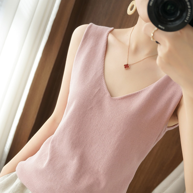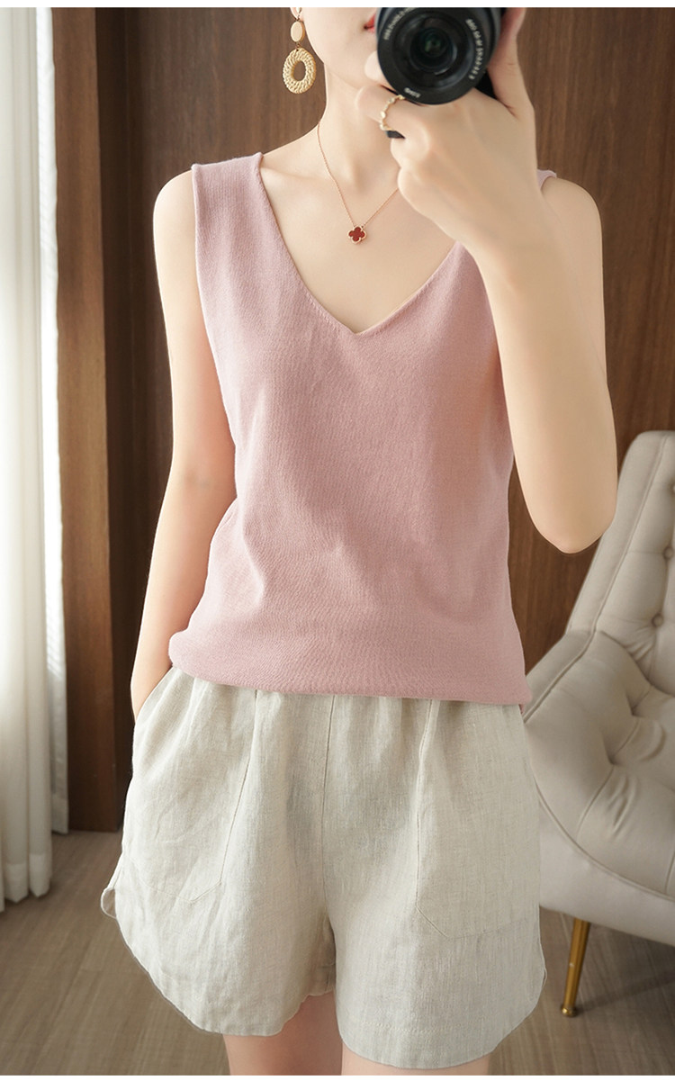Хлопковая майка топ, трикотажная рубашка, V-образный вырез, облегающий крой