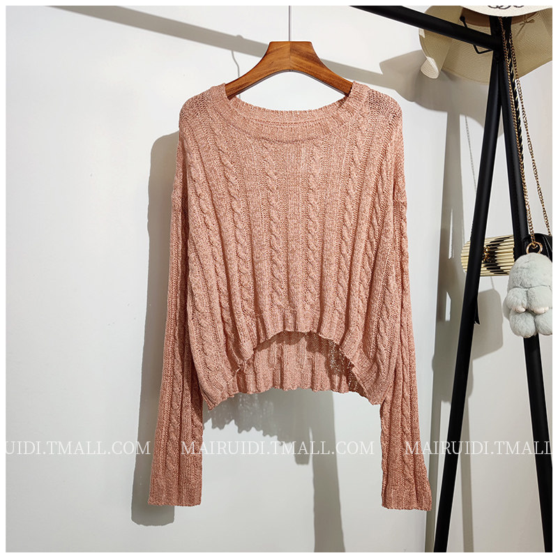 Трикотажный тонкий летний короткий лонгслив, в корейском стиле, защита от солнца