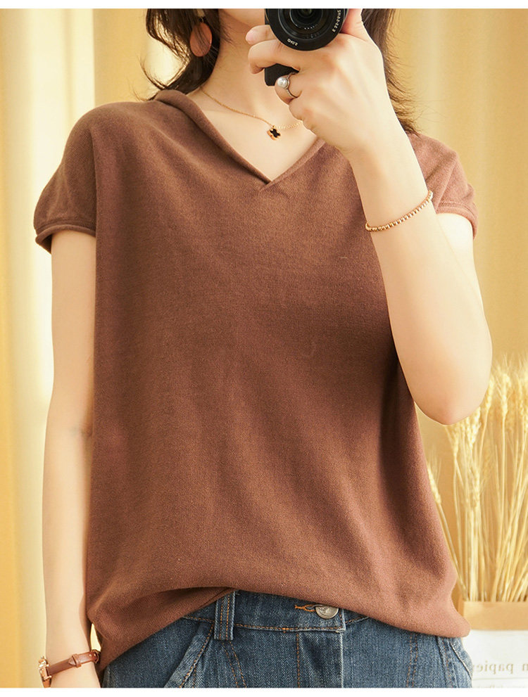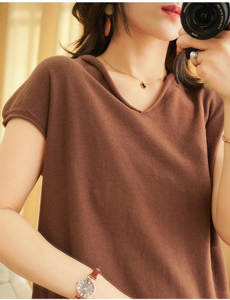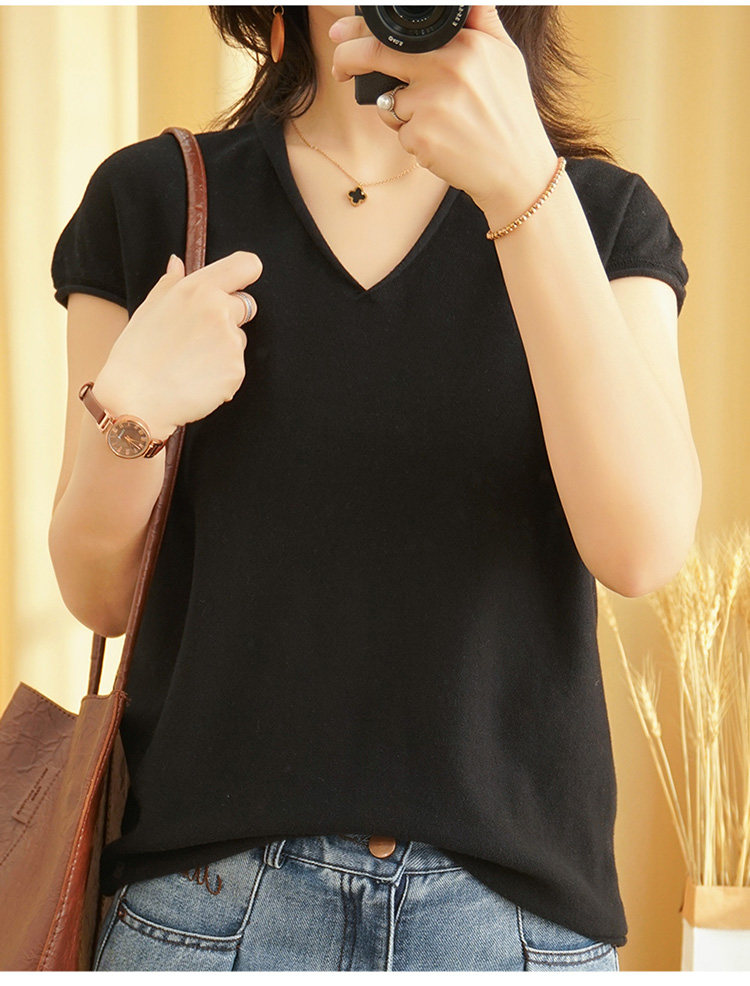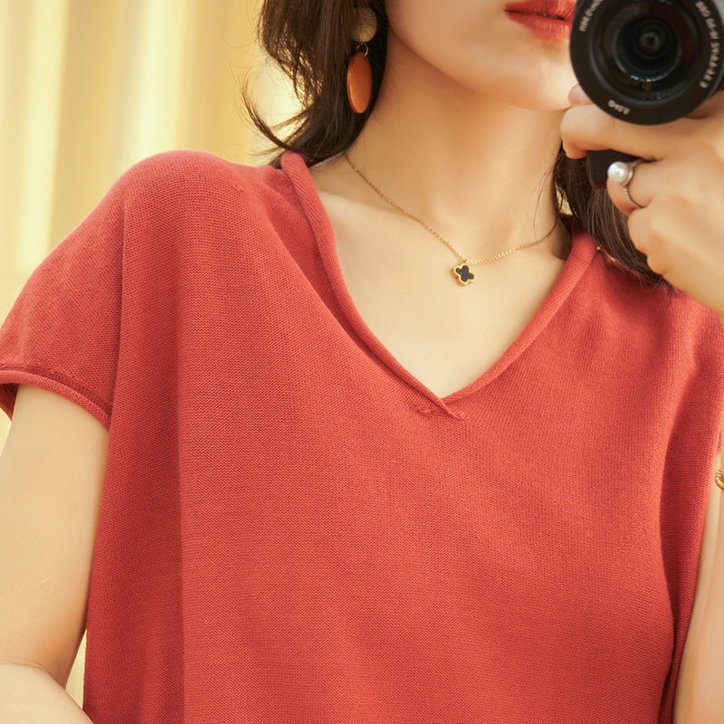 Футболка, трикотажный летний свитер для отдыха, из хлопка и льна, V-образный вырез, короткий рукав, свободный крой