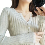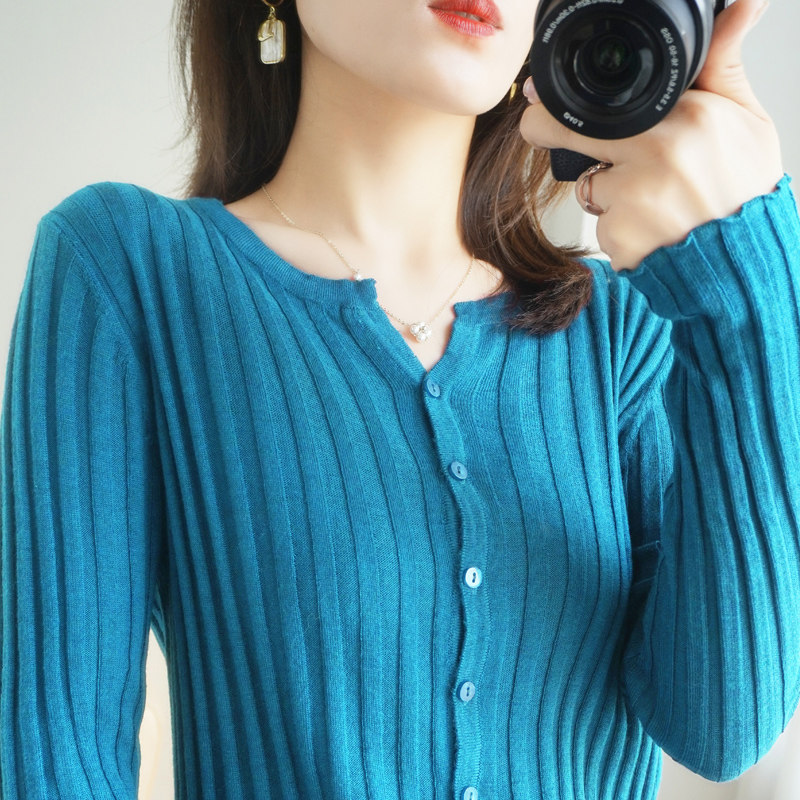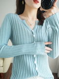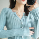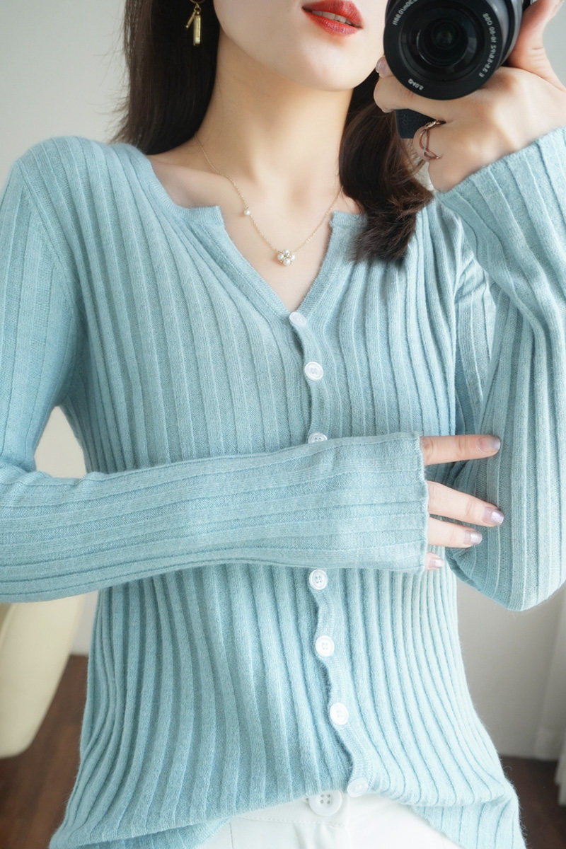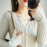 Демисезонный трикотажный кардиган, кашемировый свитер, базовый приятный телу приталенный лонгслив, куртка, в западном стиле, V-образный вырез