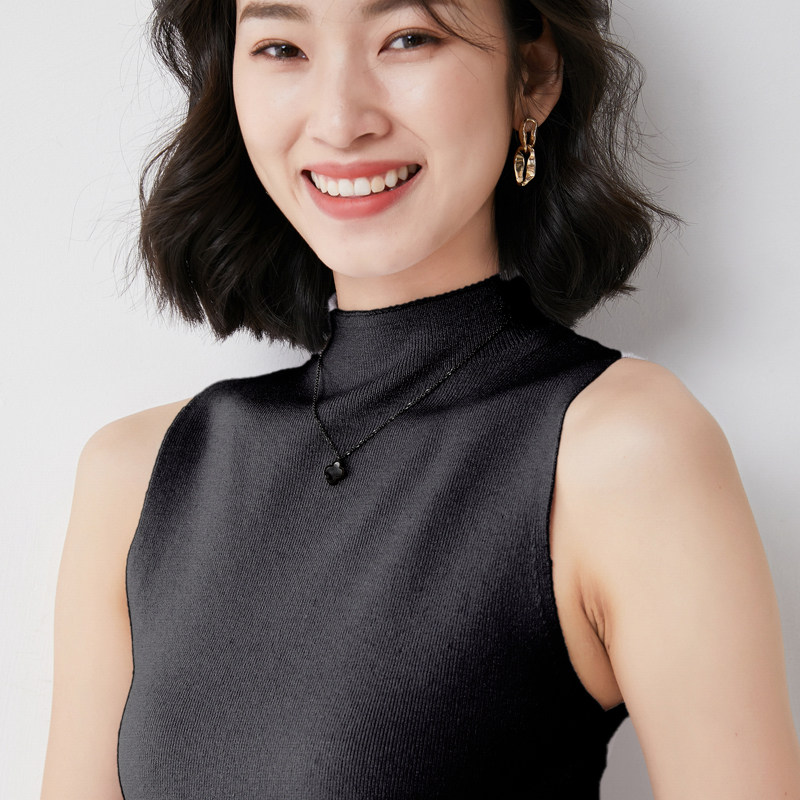 Летний трикотажный свитер без рукавов, майка топ, сексуальная футболка, коллекция 2021, высокий воротник