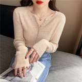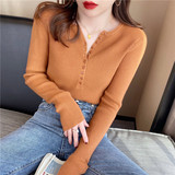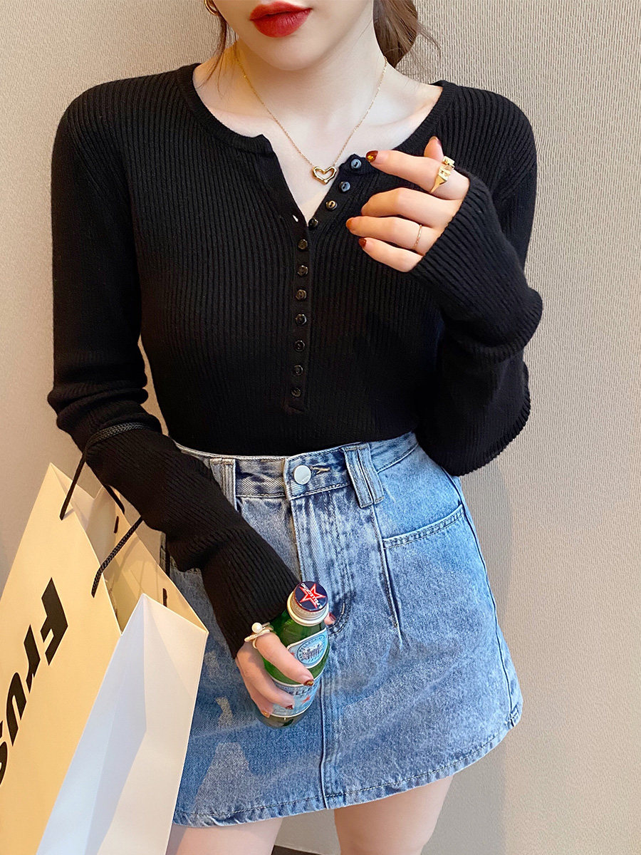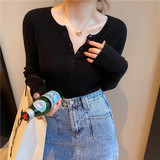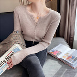 Трикотажный тонкий демисезонный свитер, белый базовый приятный телу лонгслив, коллекция 2022, V-образный вырез, облегающий крой