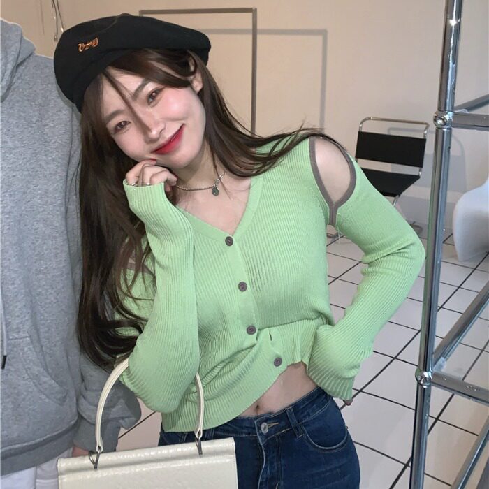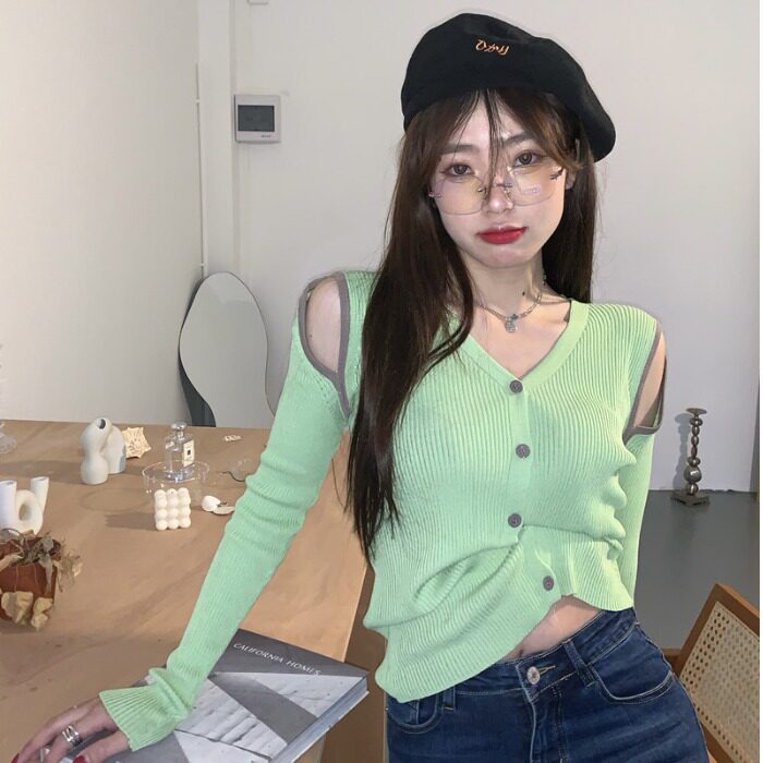 Трикотажный лонгслив, дизайнерский осенний зеленый свитер, тренд сезона