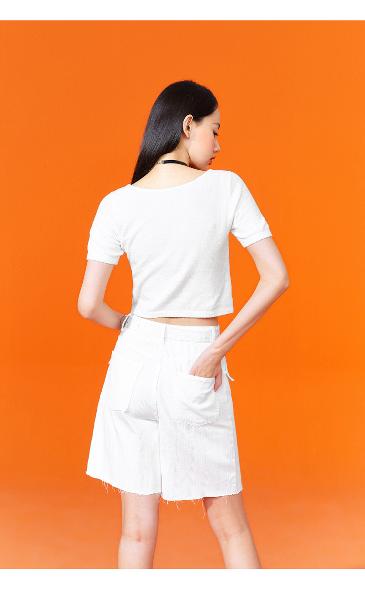 Трикотажный весенний белый свитер, квадратный вырез, облегающий крой, короткий рукав
