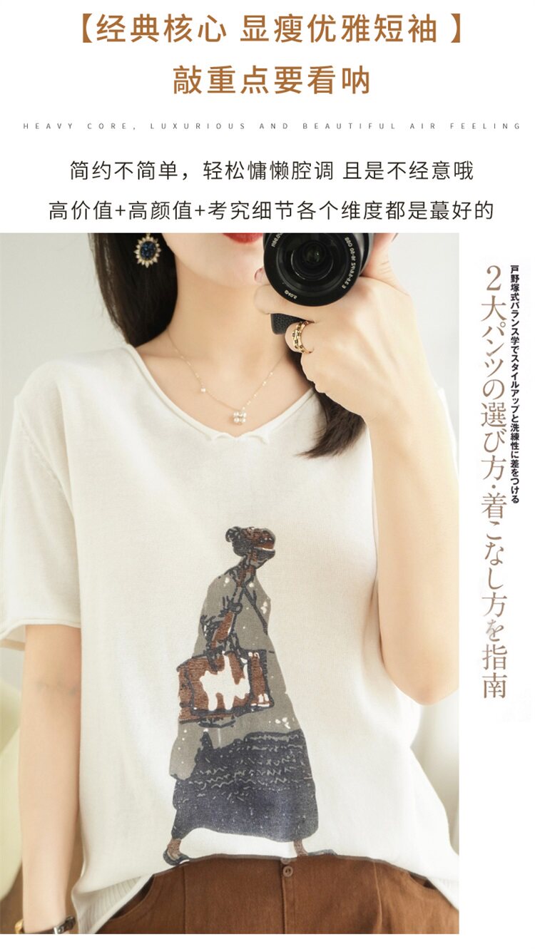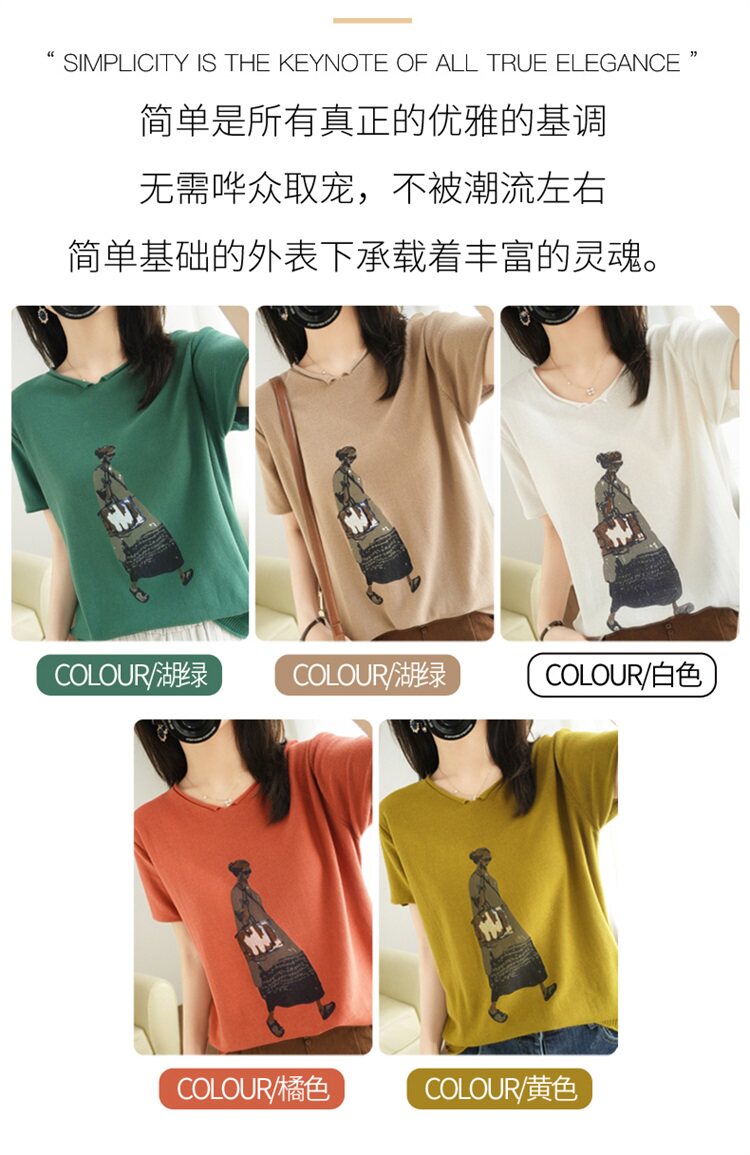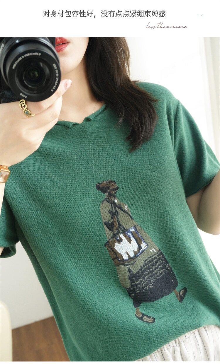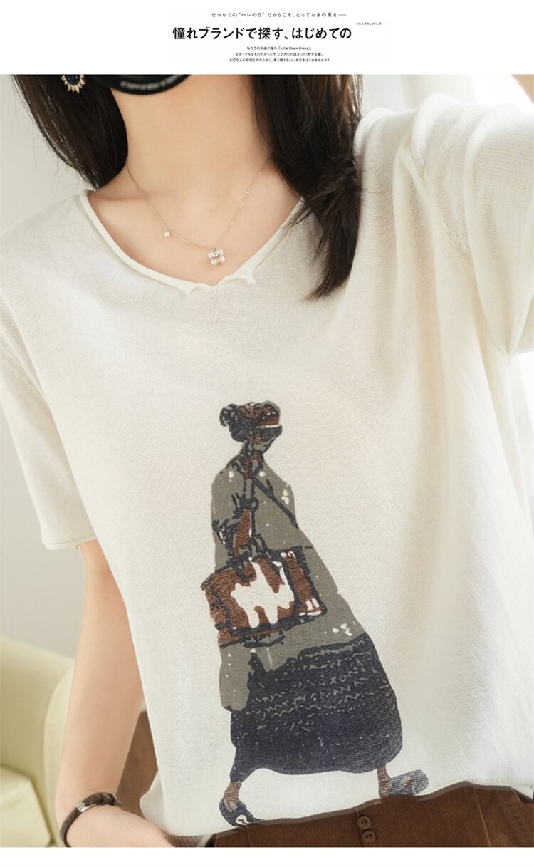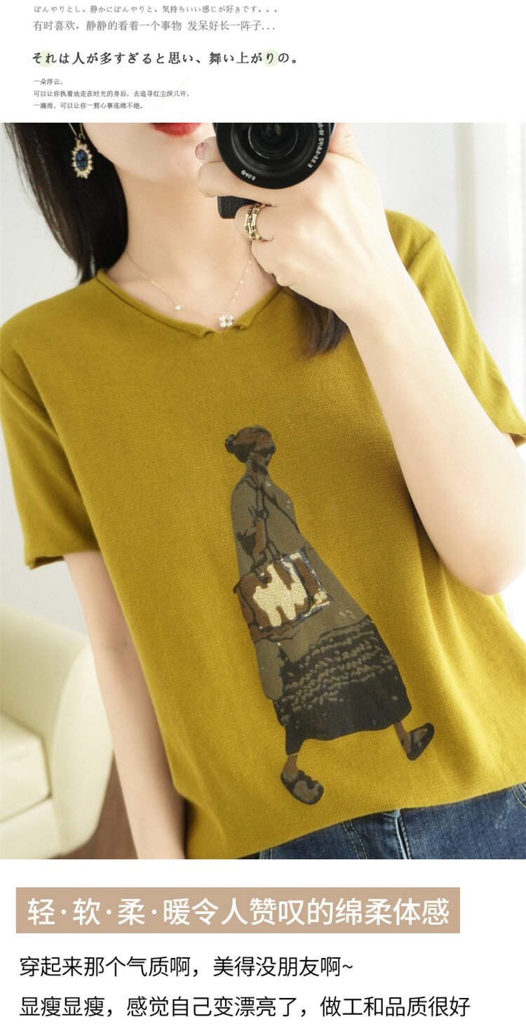 Летняя футболка, V-образный вырез, оверсайз, короткий рукав, свободный крой, из хлопка и льна