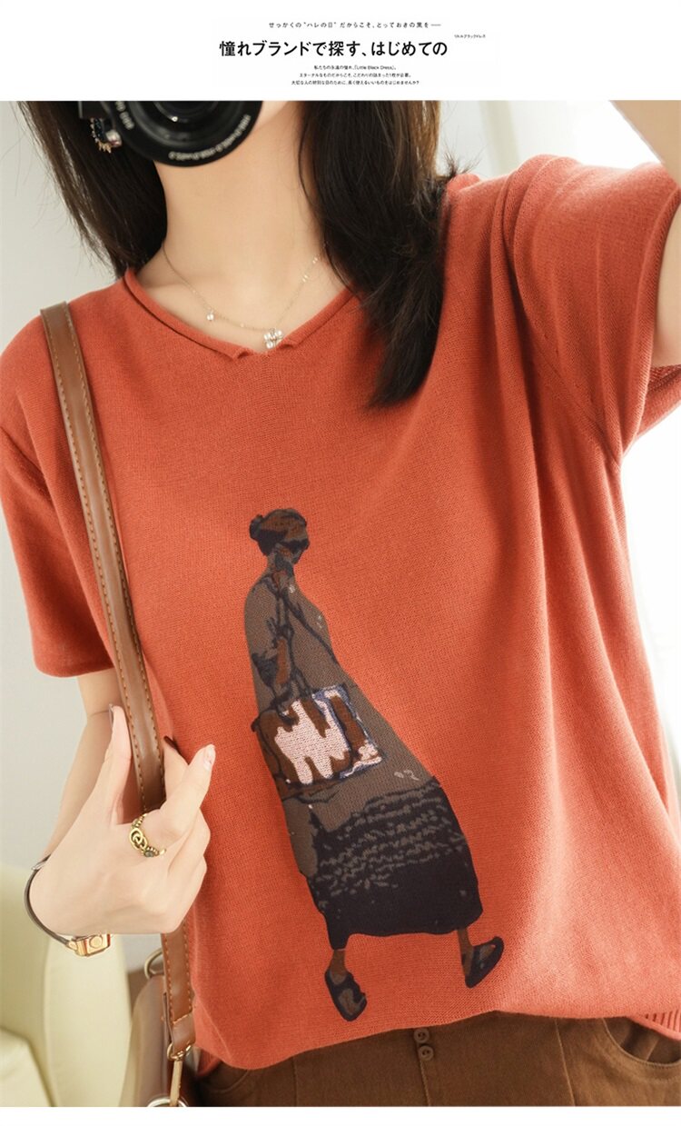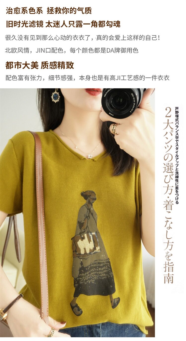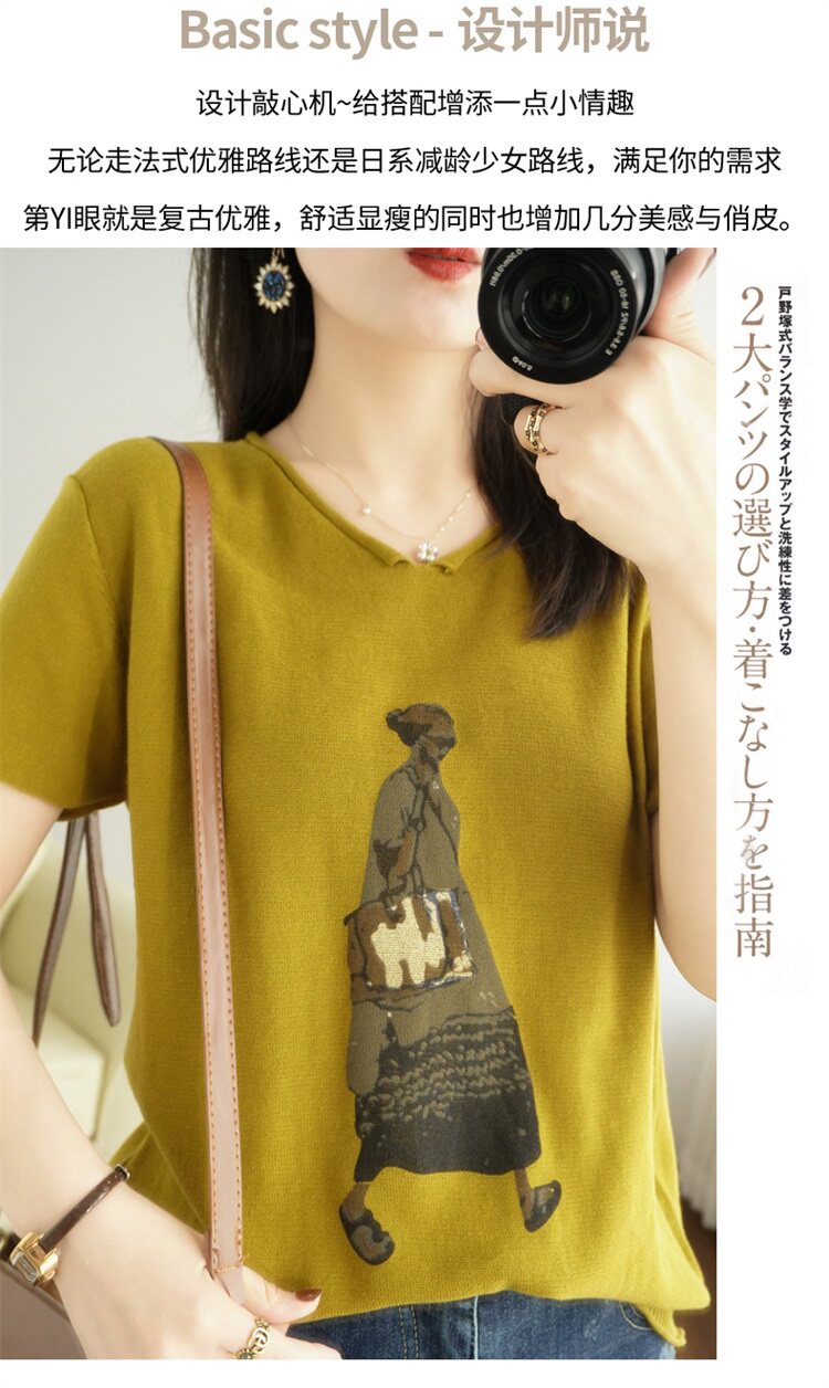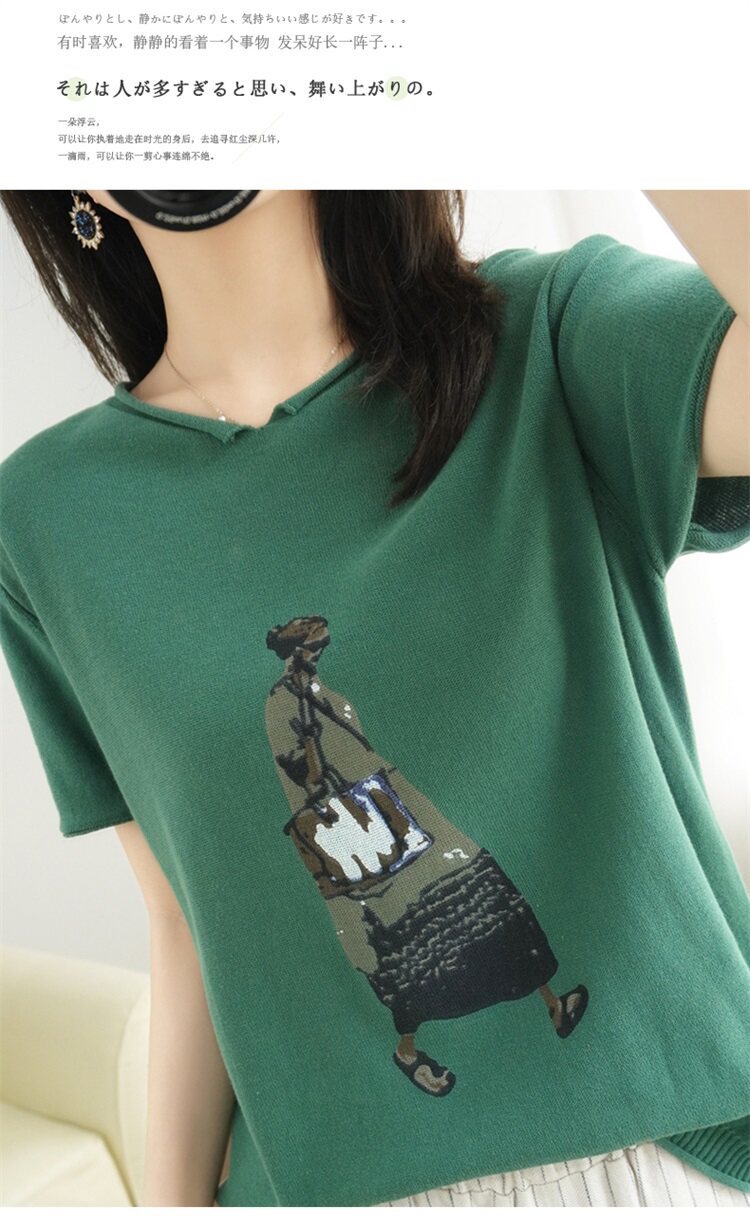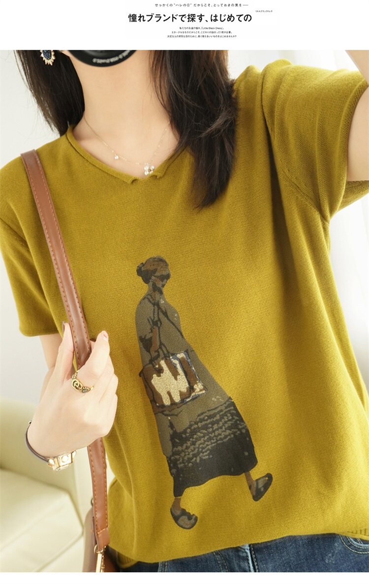 Летняя футболка, V-образный вырез, оверсайз, короткий рукав, свободный крой, из хлопка и льна