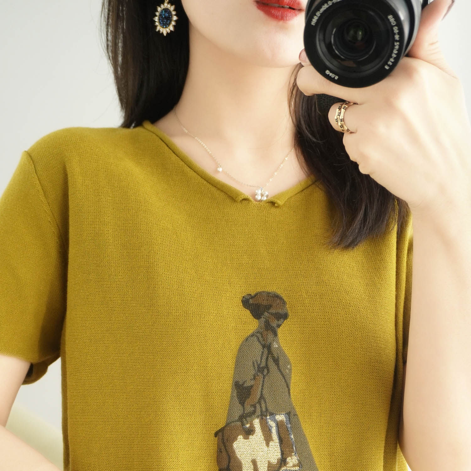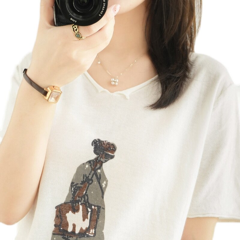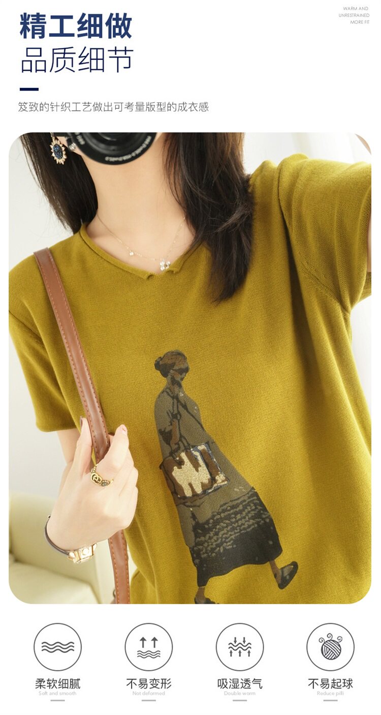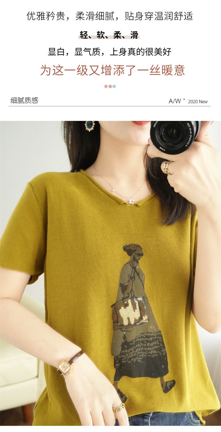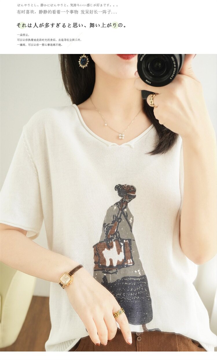 Летняя футболка, V-образный вырез, оверсайз, короткий рукав, свободный крой, из хлопка и льна