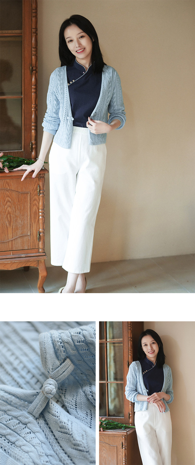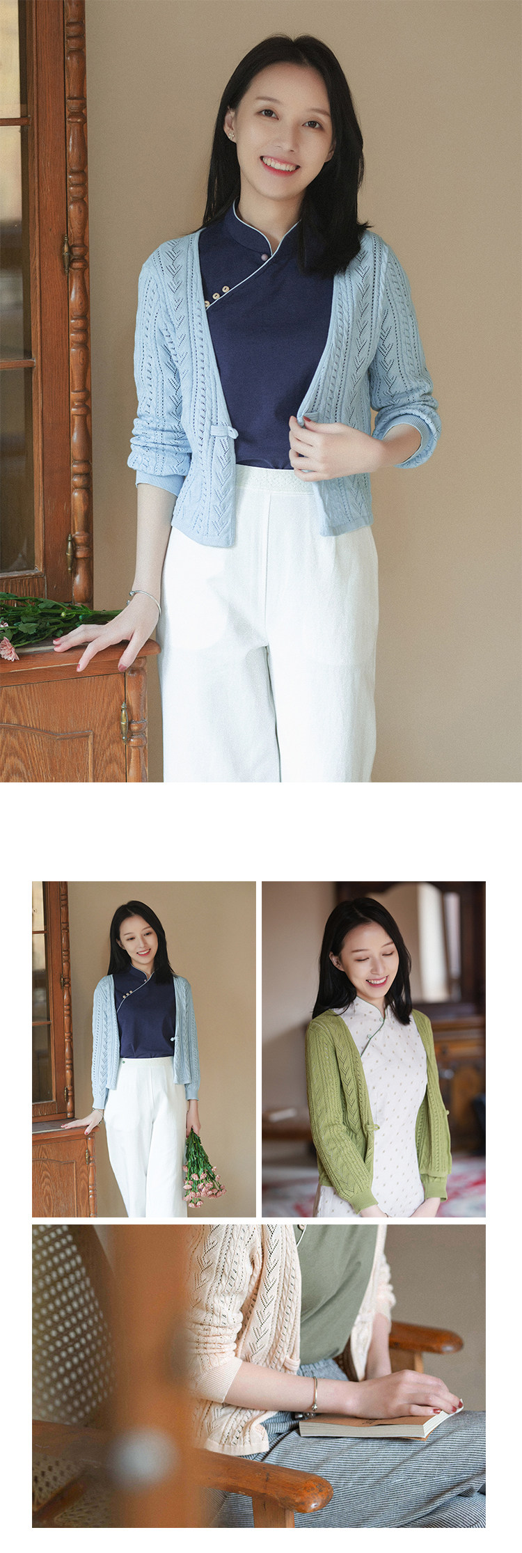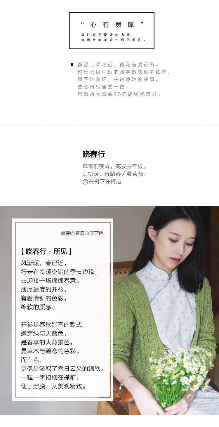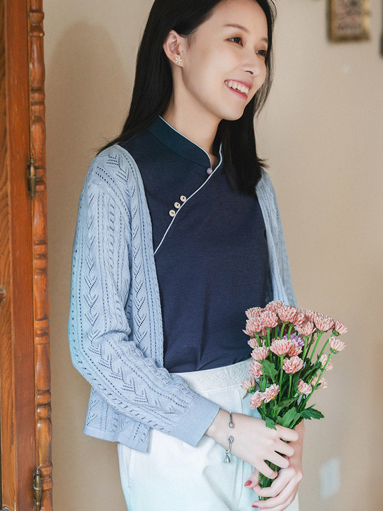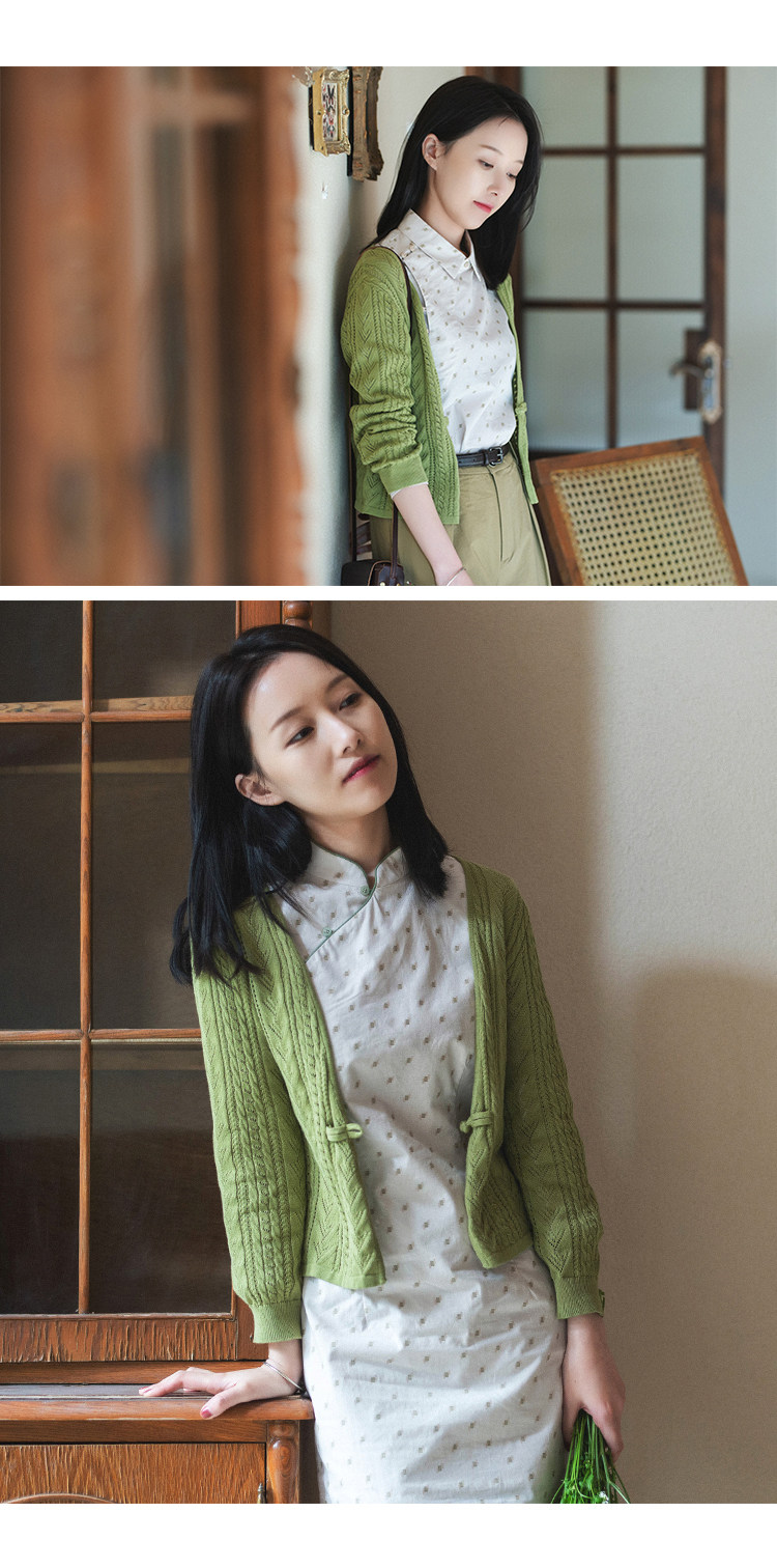 21cxm-002 [xiaoChunxing] Ретро и нежный художественный весна и лето тонкий хлопковой вязаный кардиган прошлой и настоящей жизни
