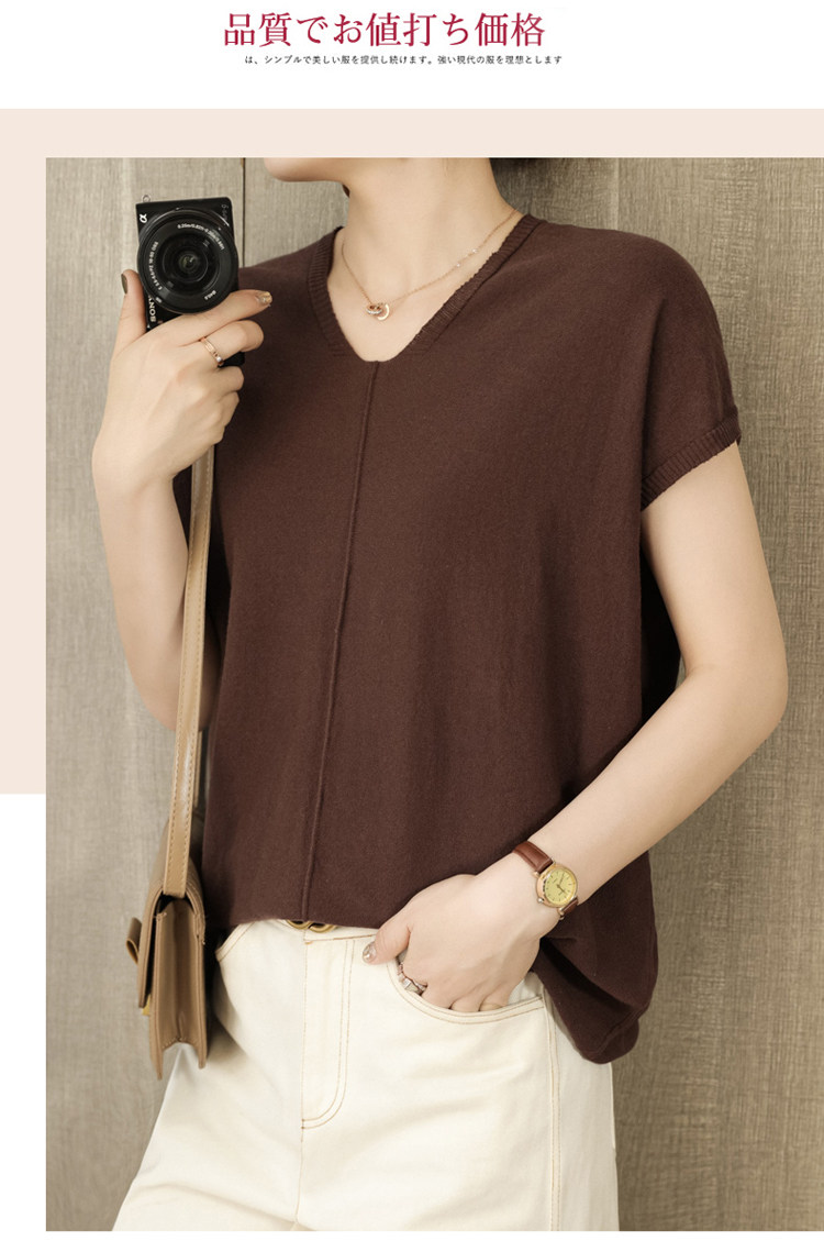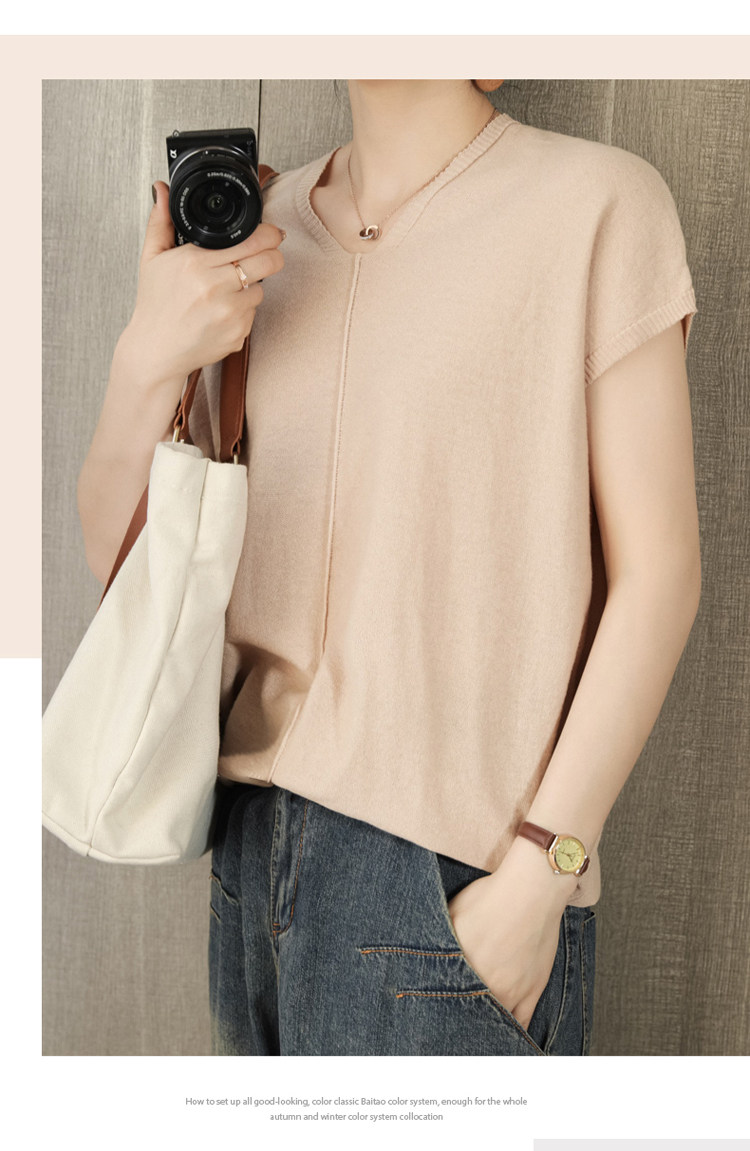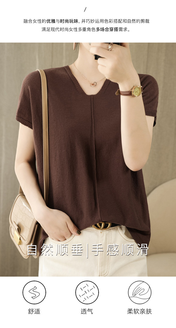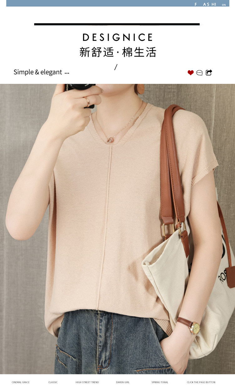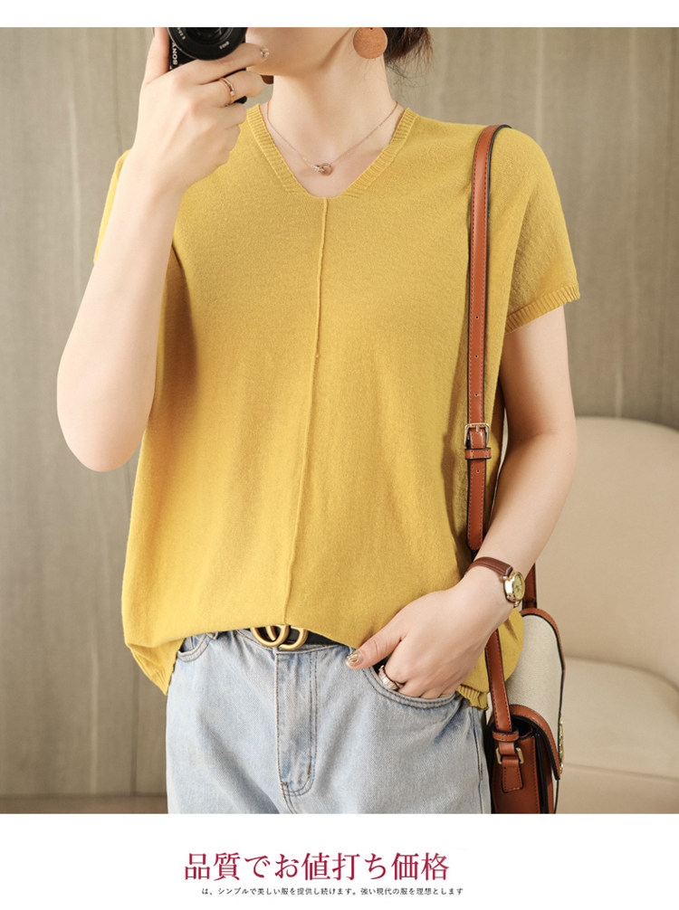 Трикотажная футболка, коллекция 2021, из хлопка и льна, короткий рукав, V-образный вырез, оверсайз