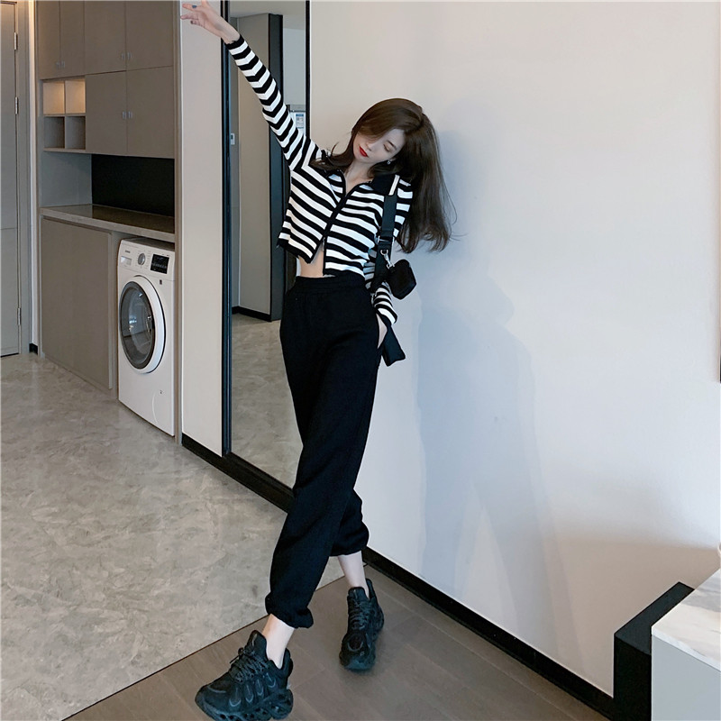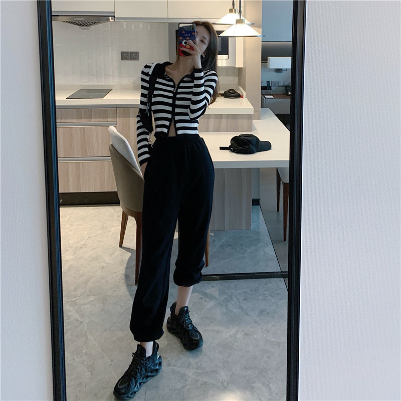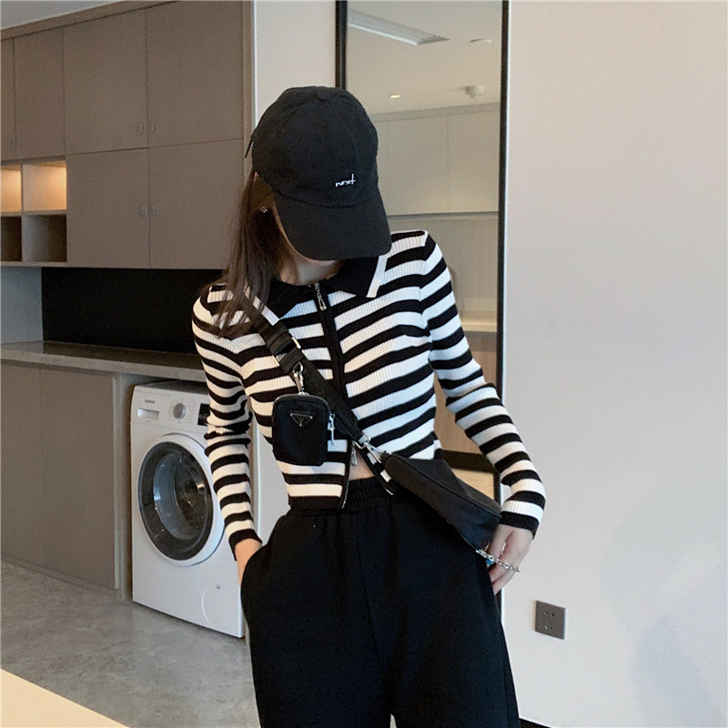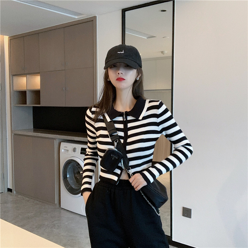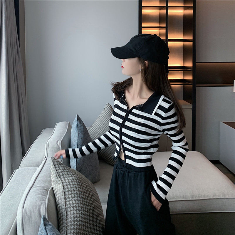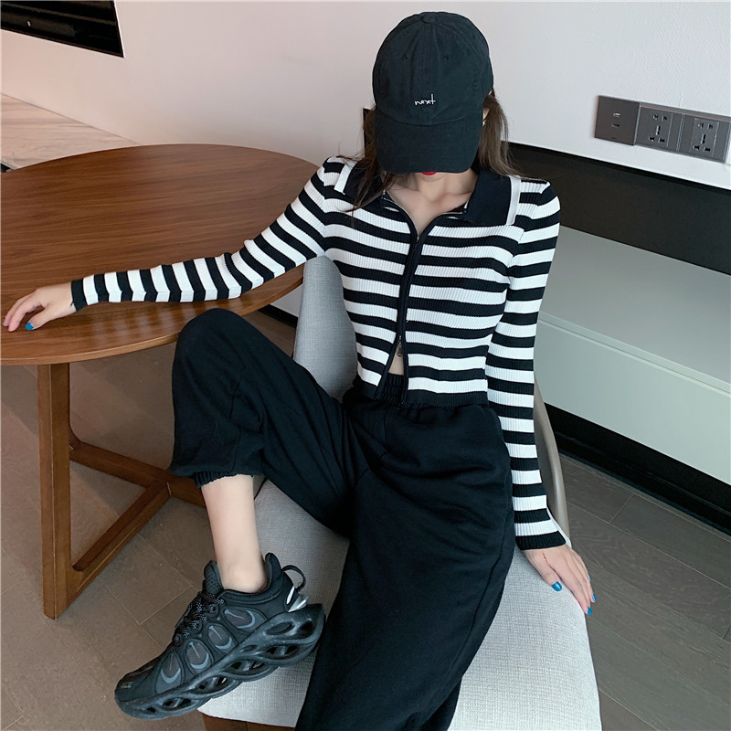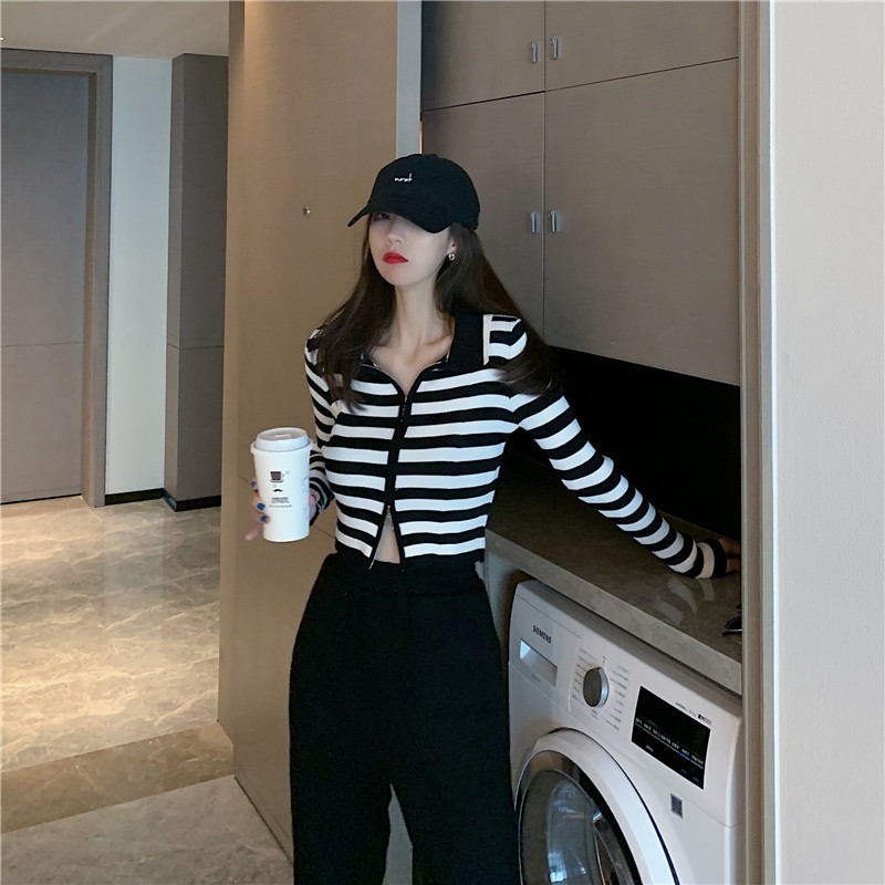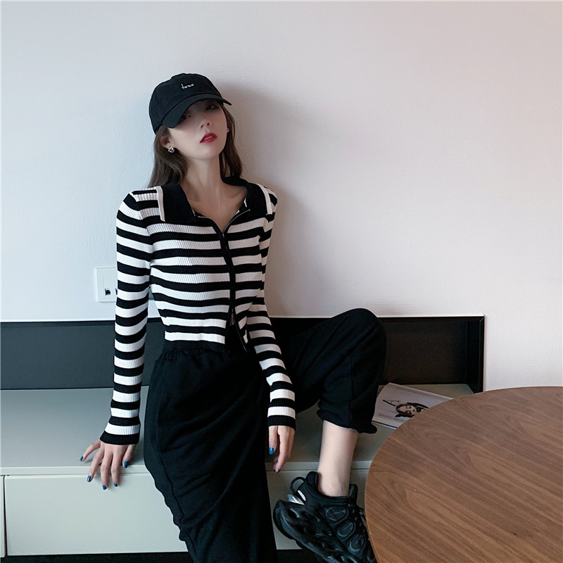 Трикотажный осенний модный короткий кардиган с молнией, облегающий крой, в западном стиле