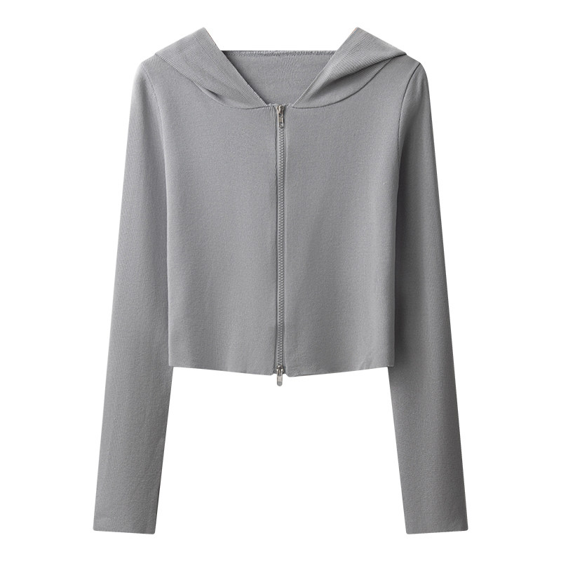Свитер с капюшоном, демисезонный кардиган, короткая куртка, тонкий базовый приятный телу лонгслив, оверсайз