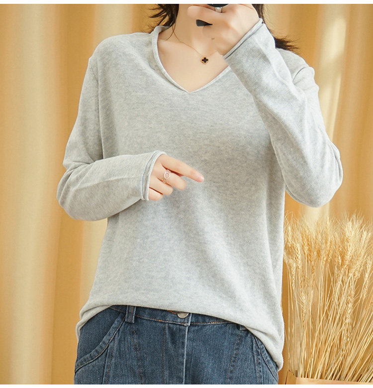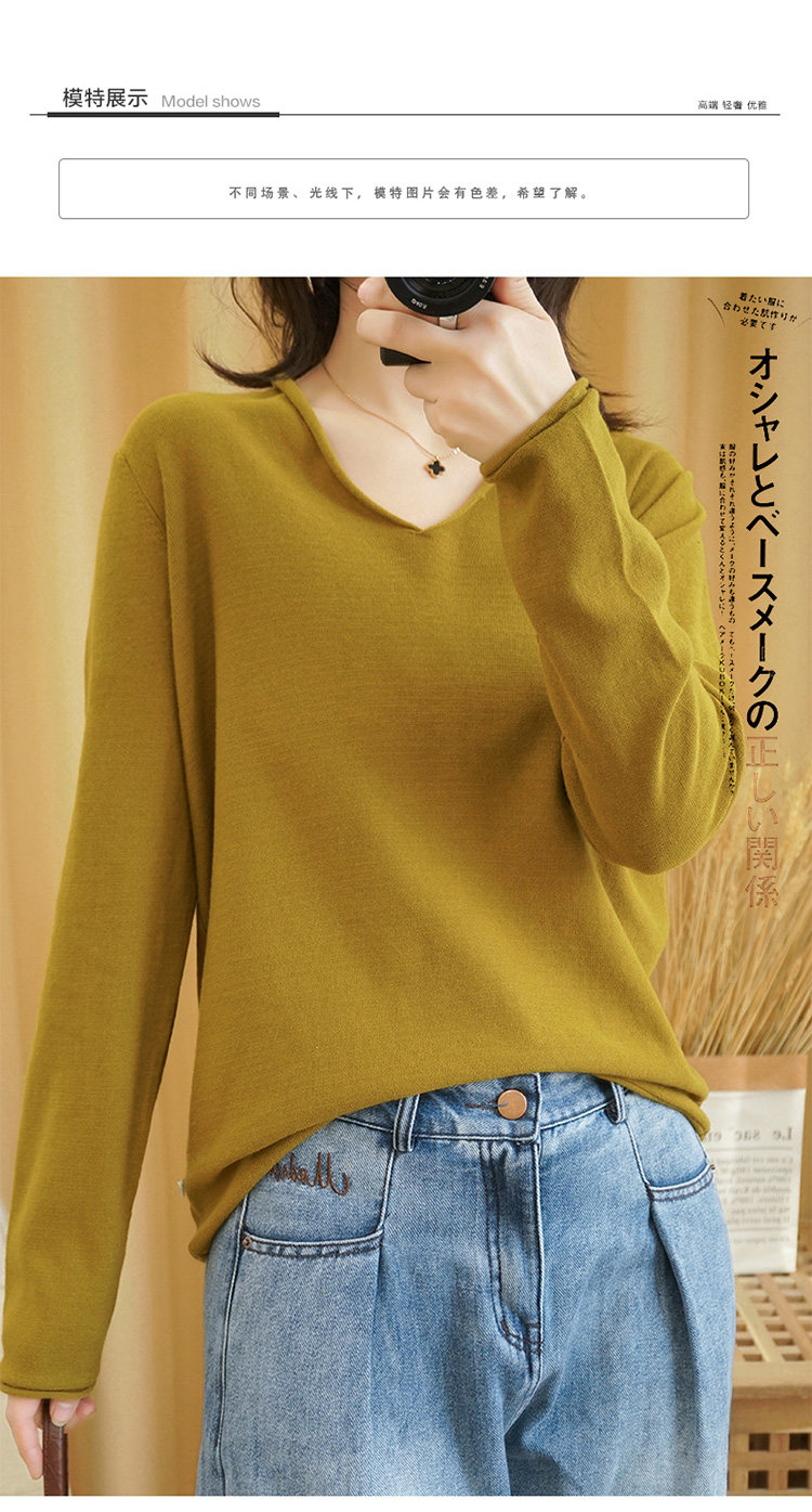 Хлопковая осенняя толстовка, тонкий лонгслив, трикотажный базовый короткий свитер, куртка, оверсайз, V-образный вырез