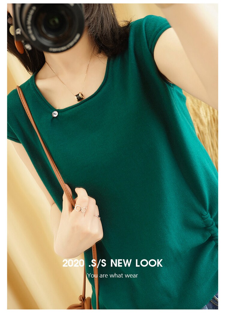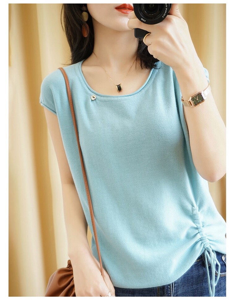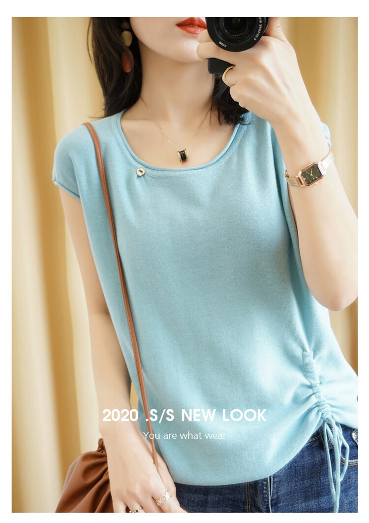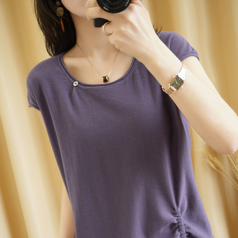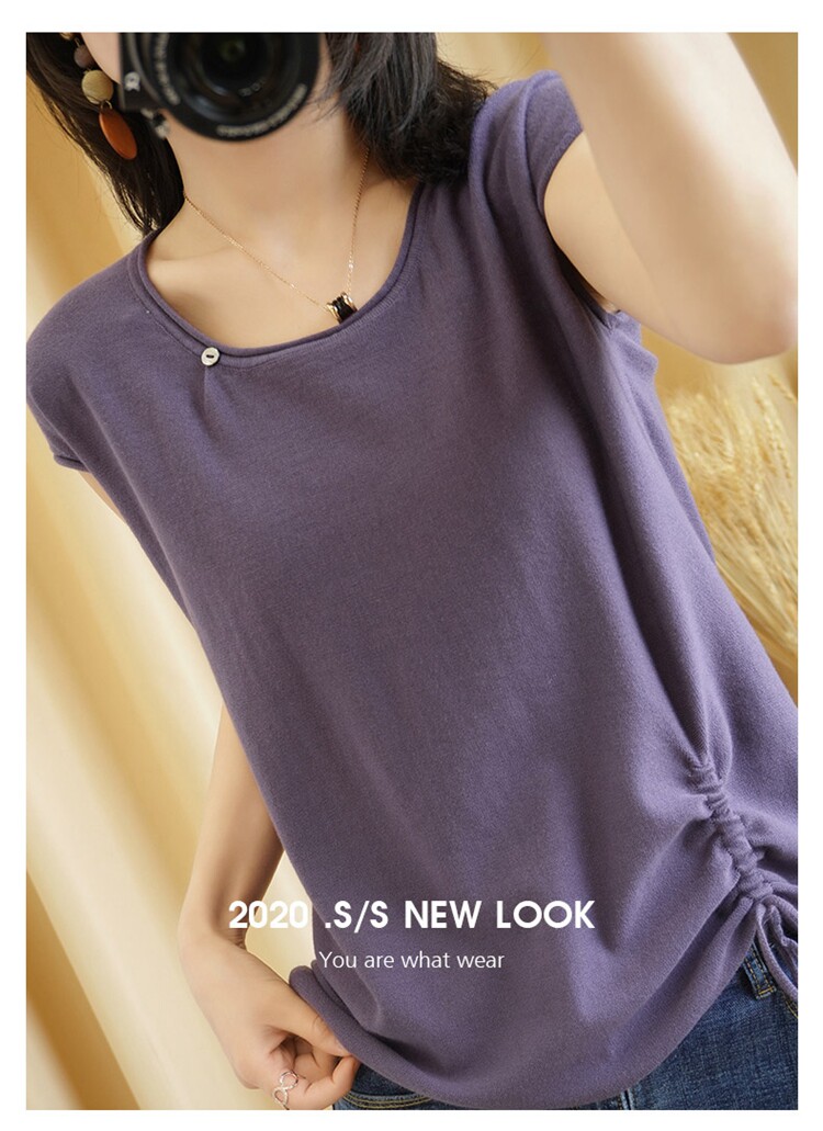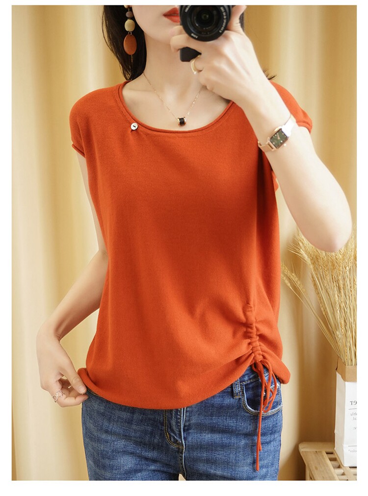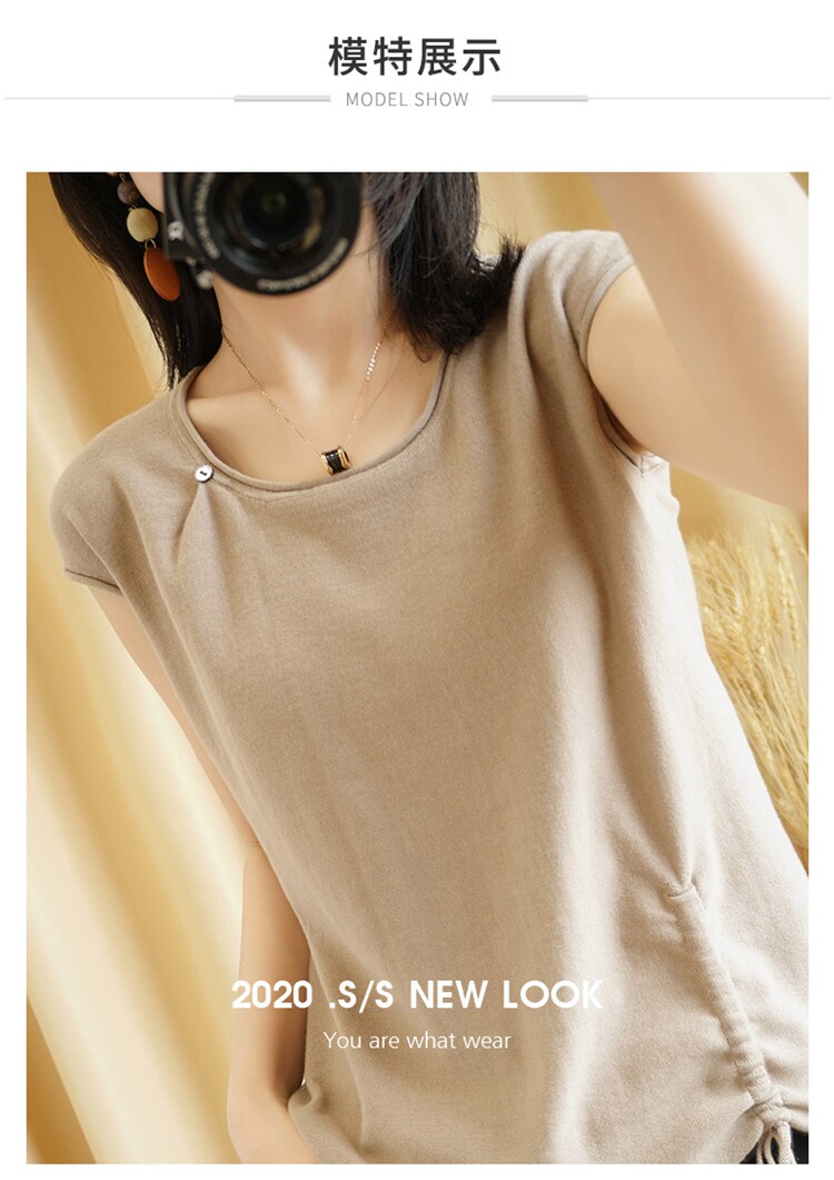 Трикотажная хлопковая летняя одежда с круглым воротником, тонкая футболка, короткий рукав, из хлопка и льна, оверсайз, на шнурках