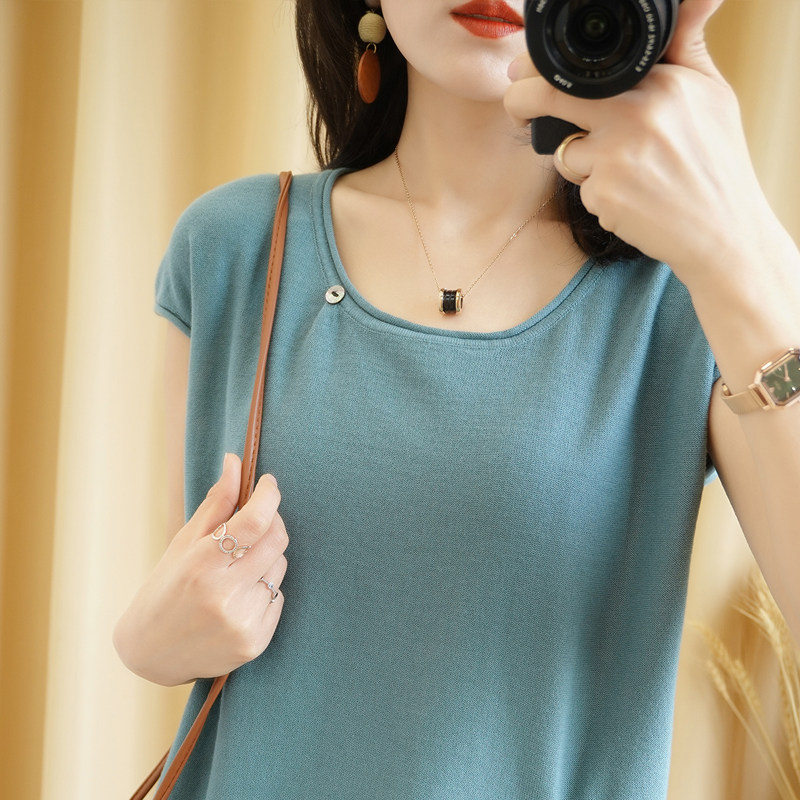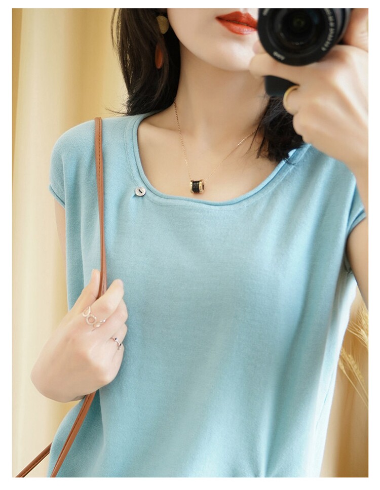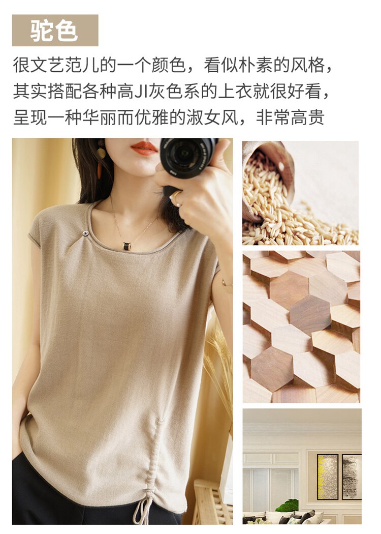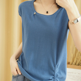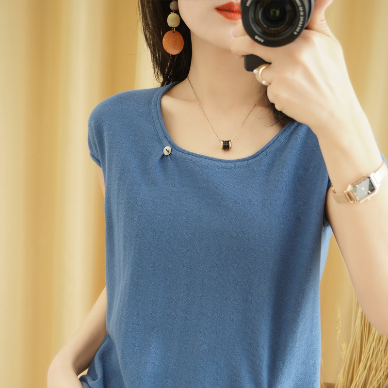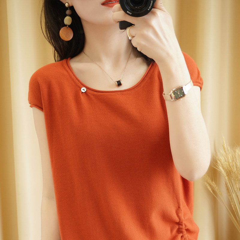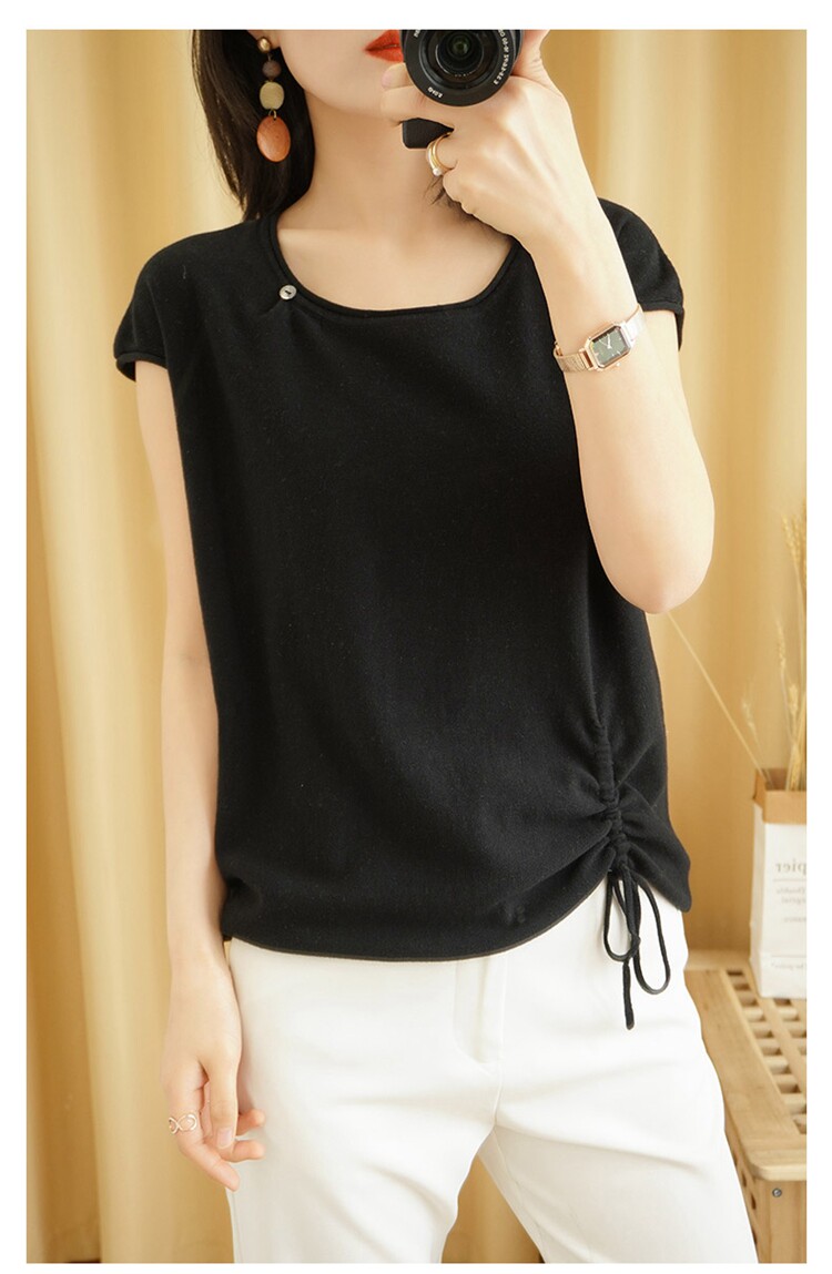 Трикотажная хлопковая летняя одежда с круглым воротником, тонкая футболка, короткий рукав, из хлопка и льна, оверсайз, на шнурках