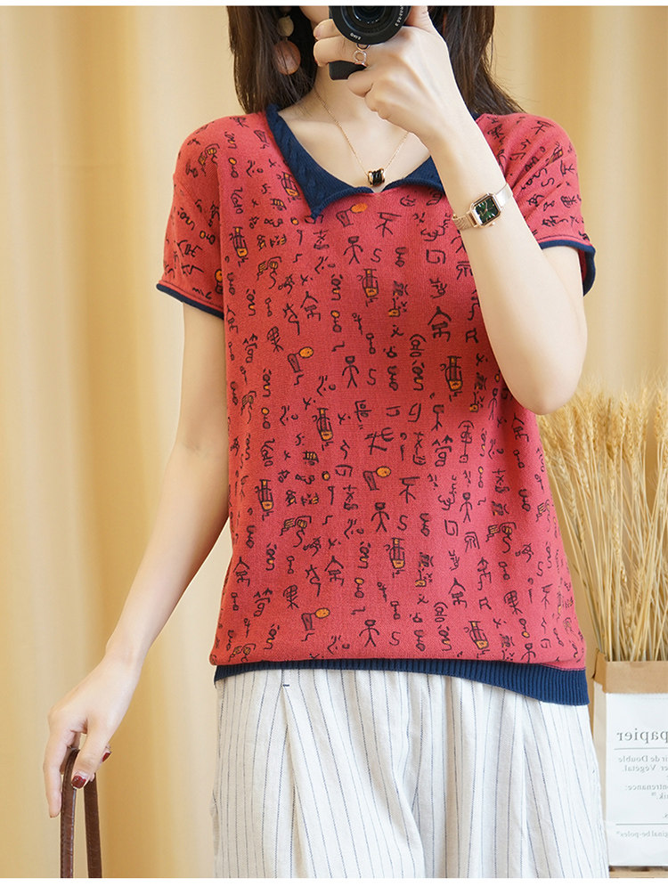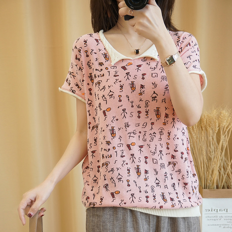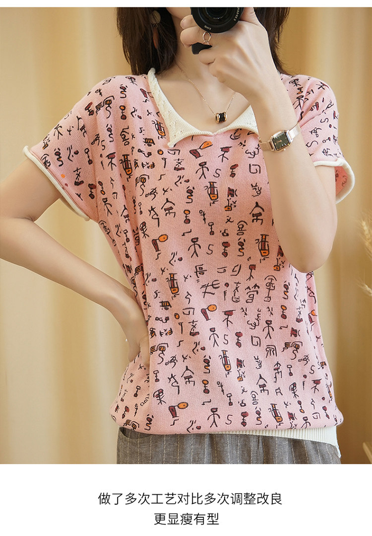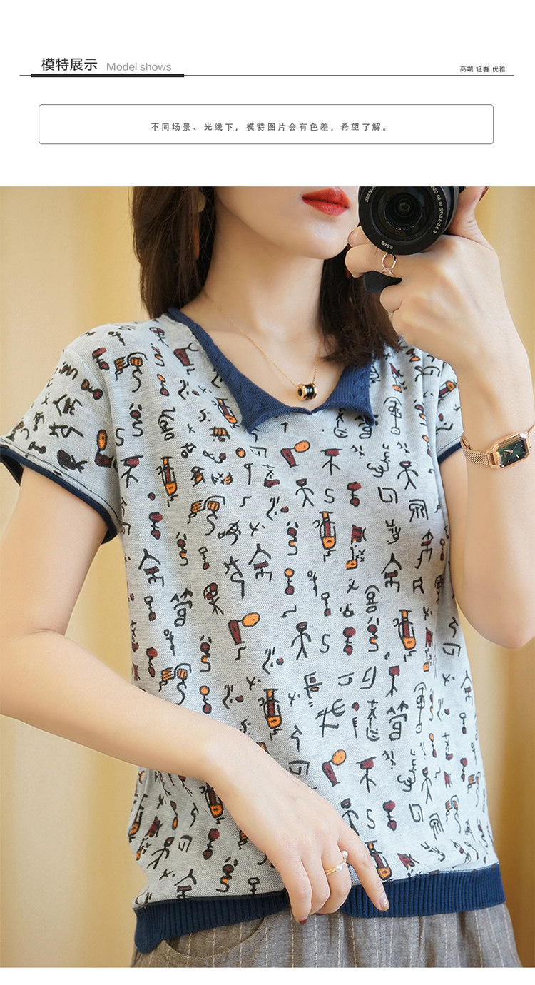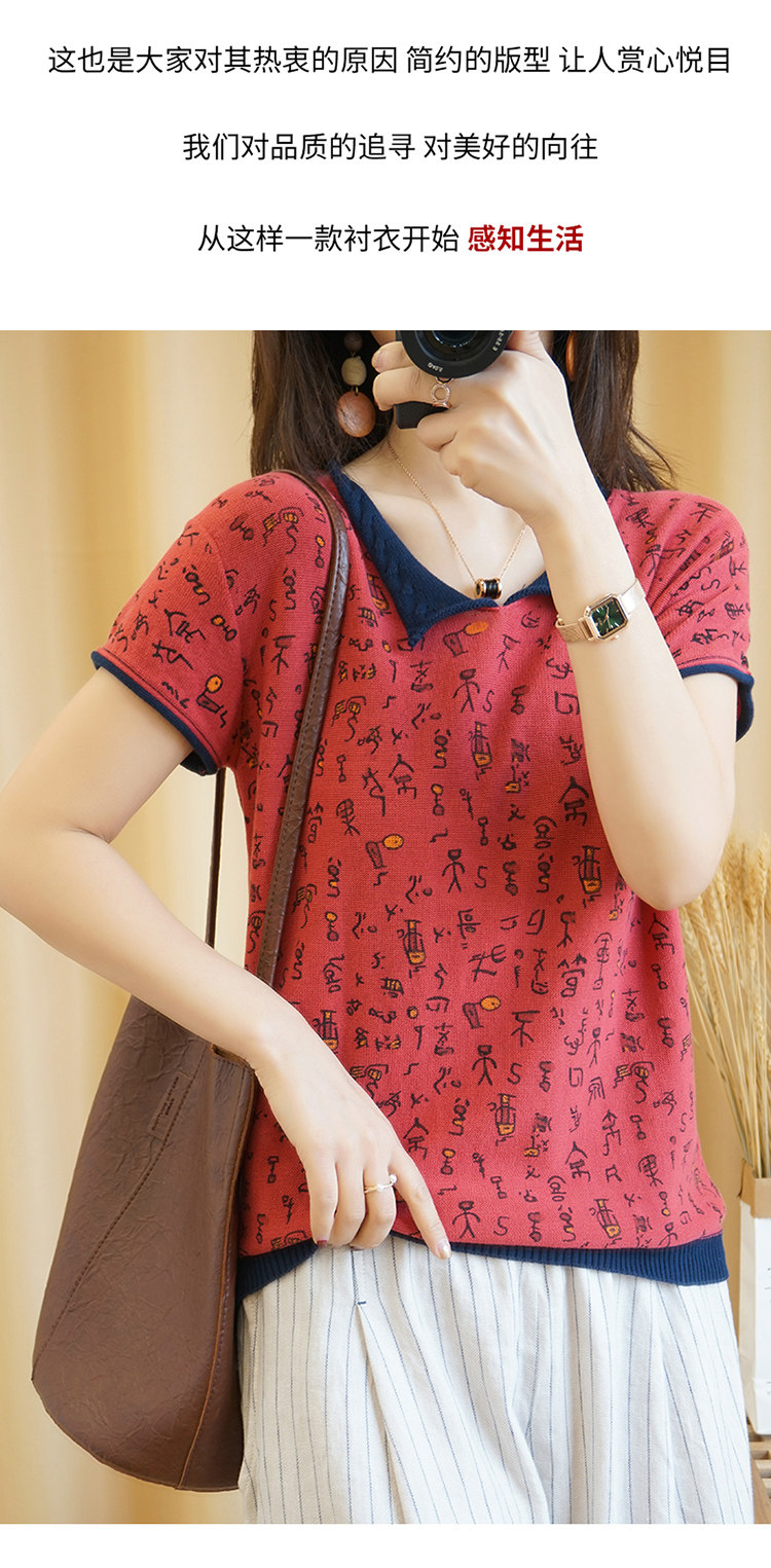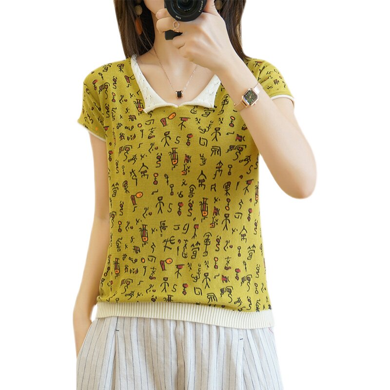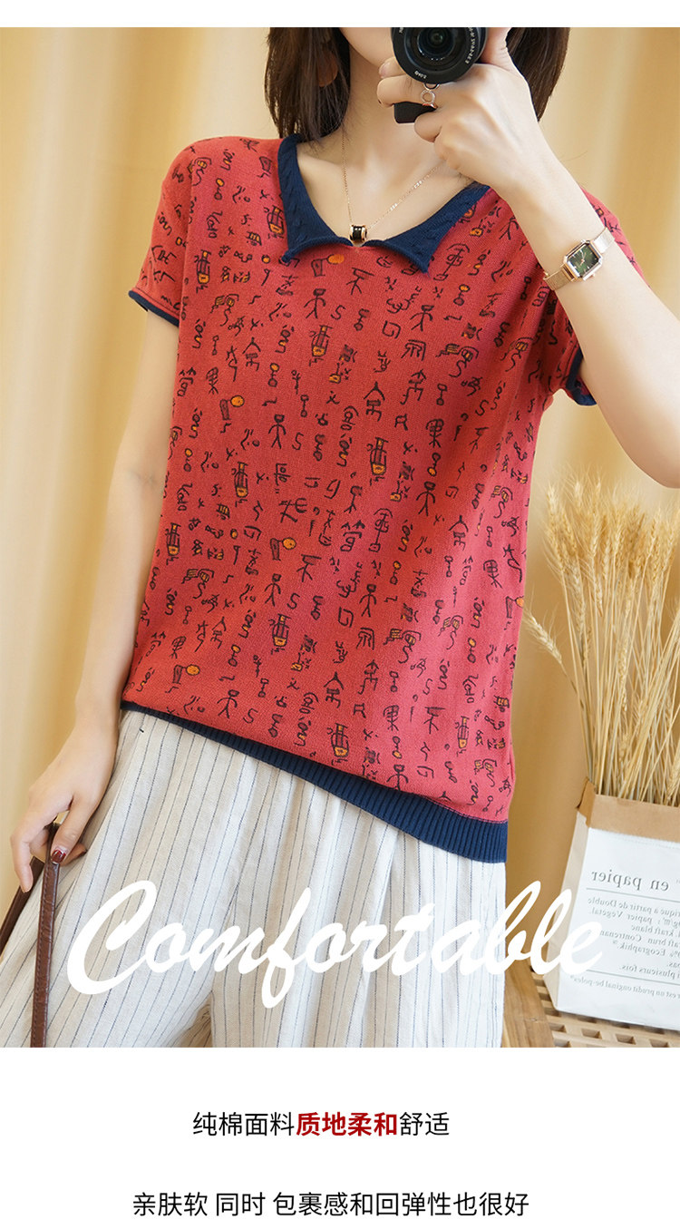 Хлопковая трикотажная футболка, сезон 2021, короткий рукав, V-образный вырез, свободный крой