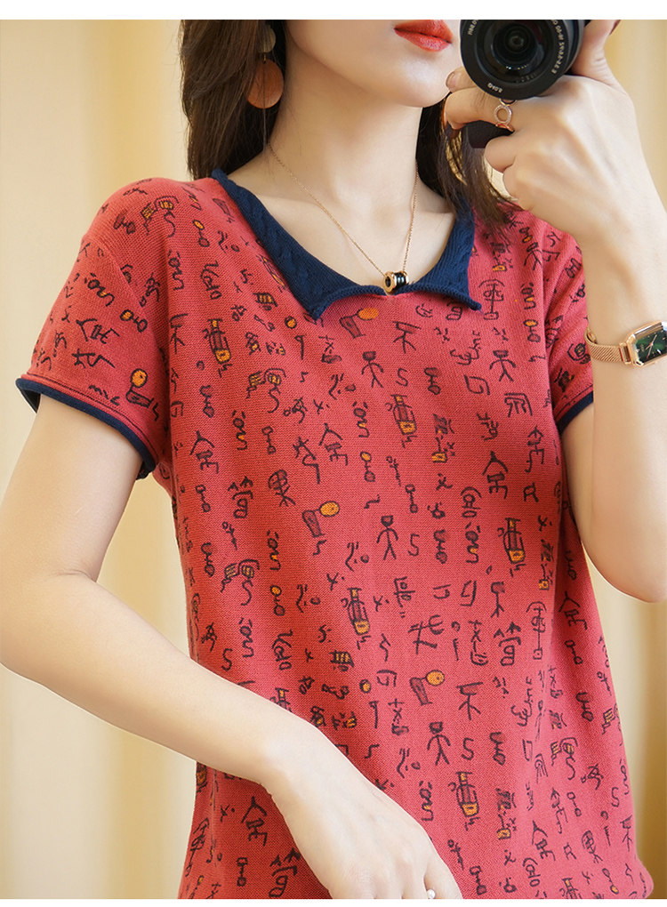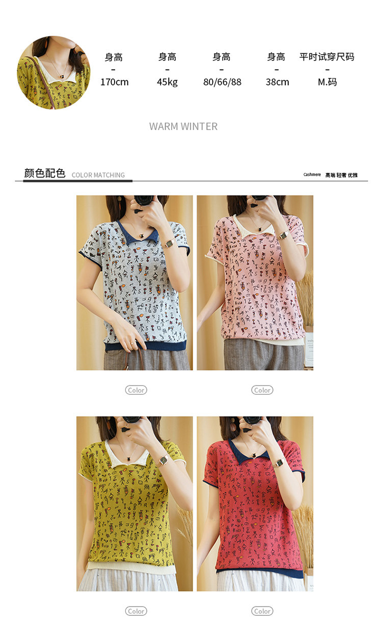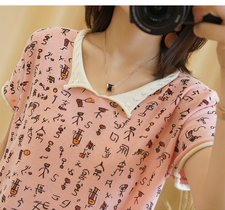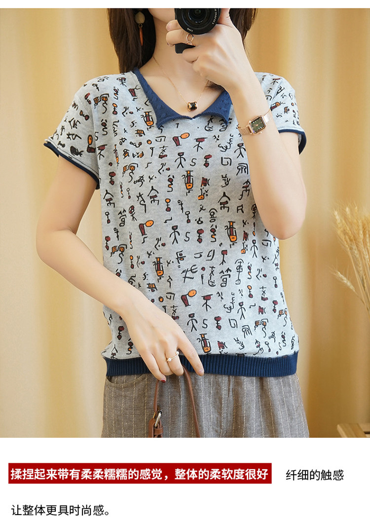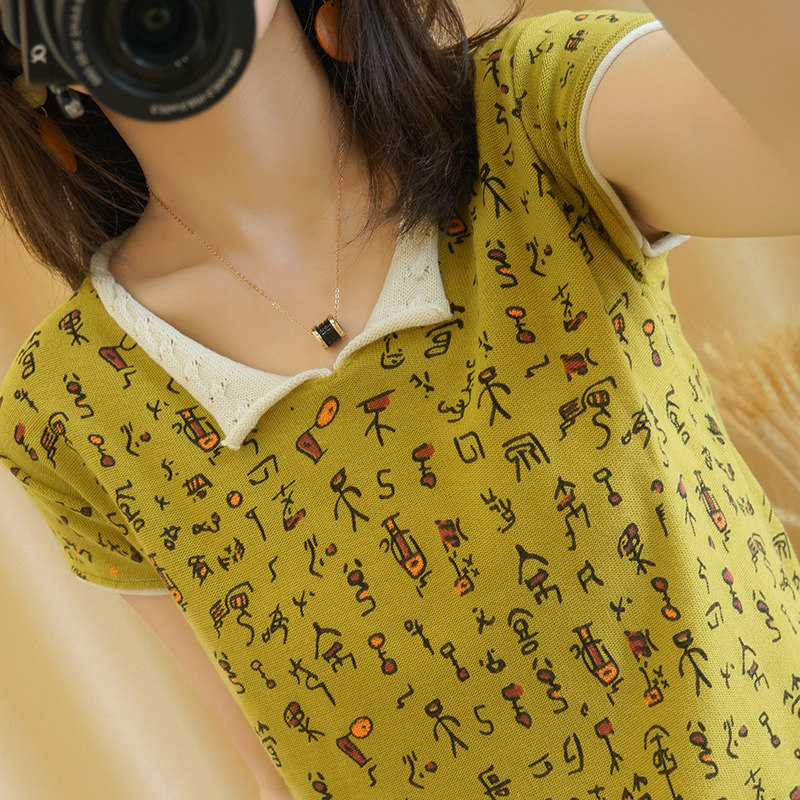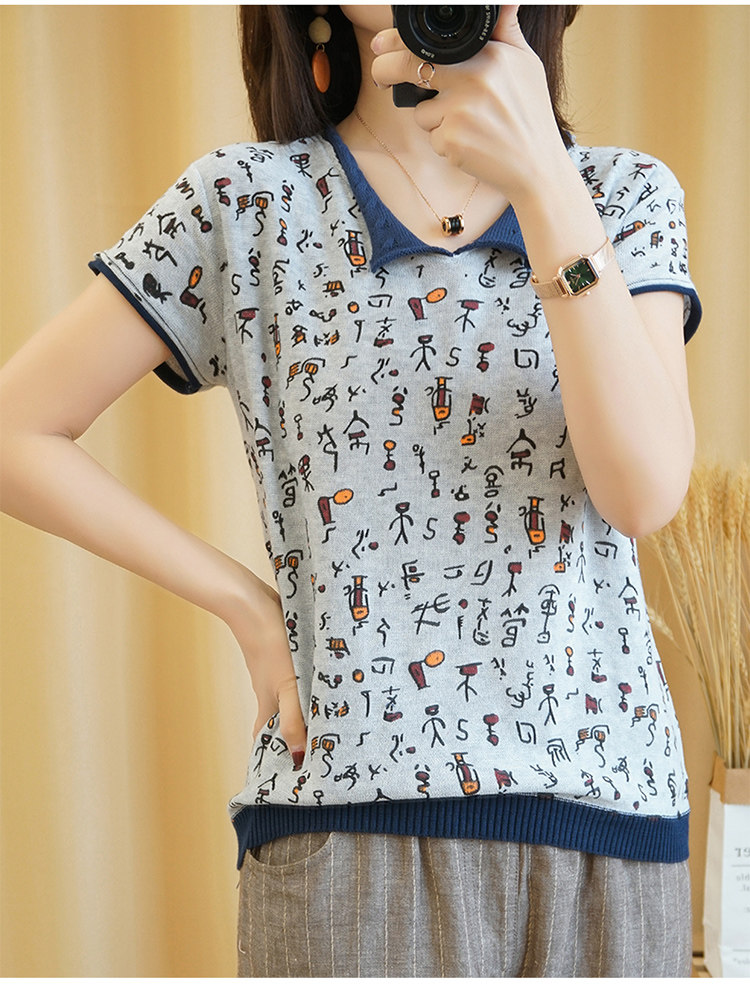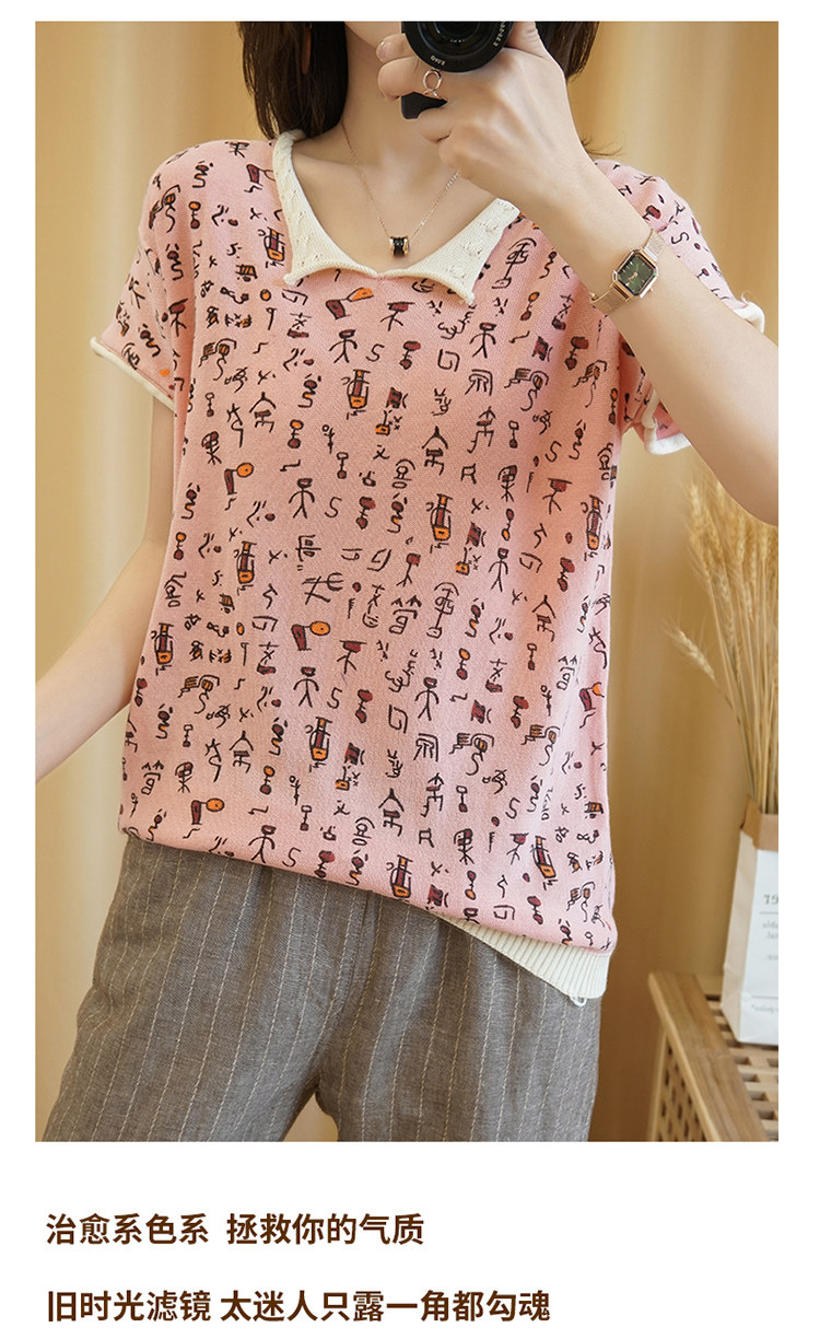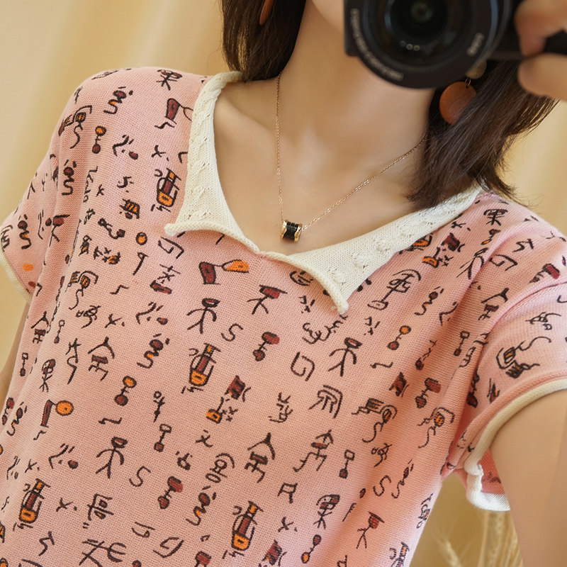 Хлопковая трикотажная футболка, сезон 2021, короткий рукав, V-образный вырез, свободный крой