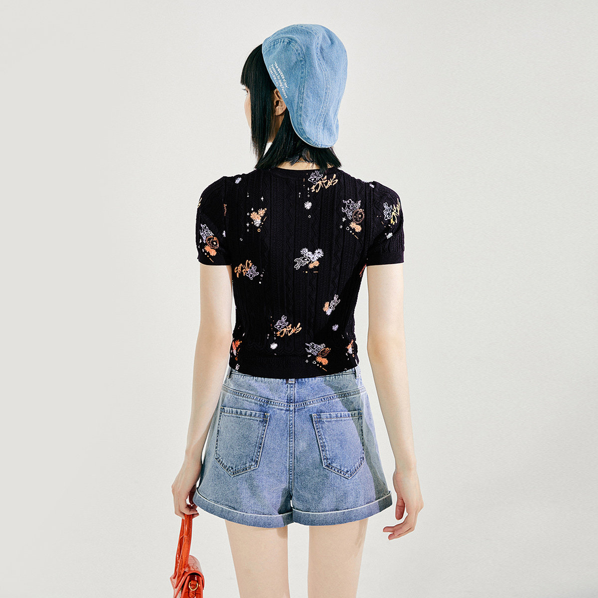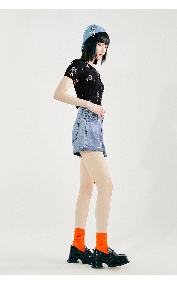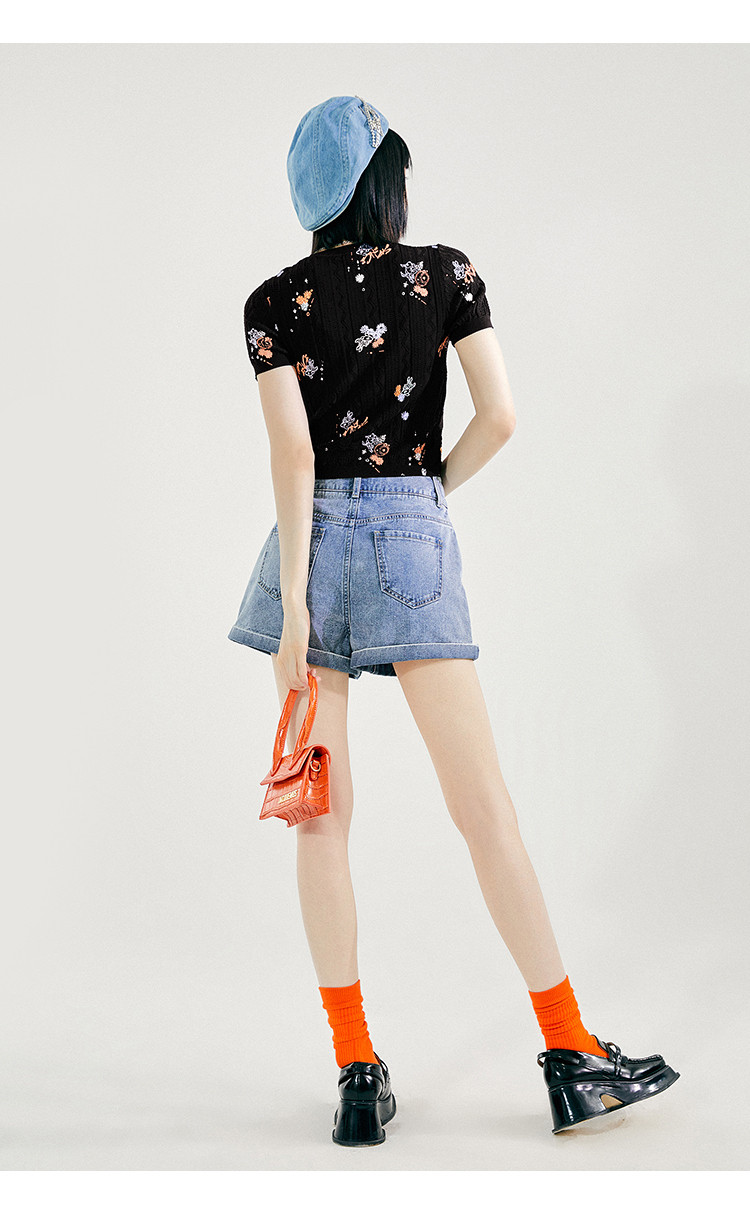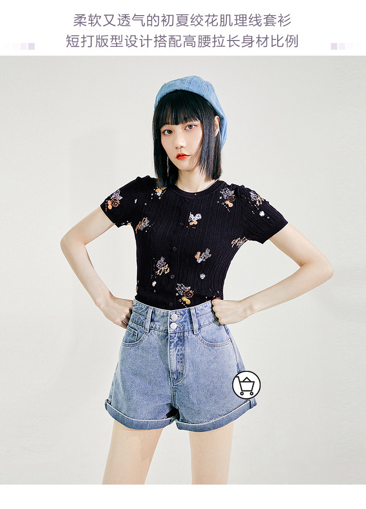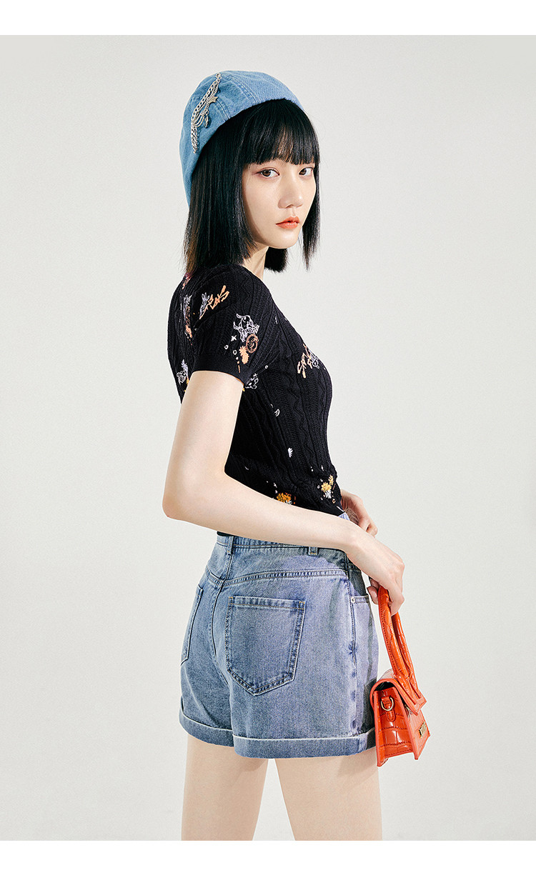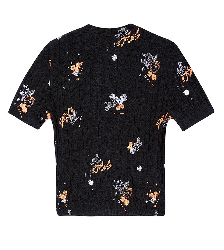 Tide, трикотажный летний черный свитер, коллекция 2021, облегающий крой, короткий рукав