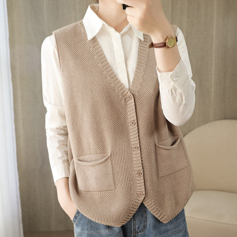 Осенний жилет, трикотажный свитер без рукавов, хлопковый кардиган, свободный крой, большой размер
