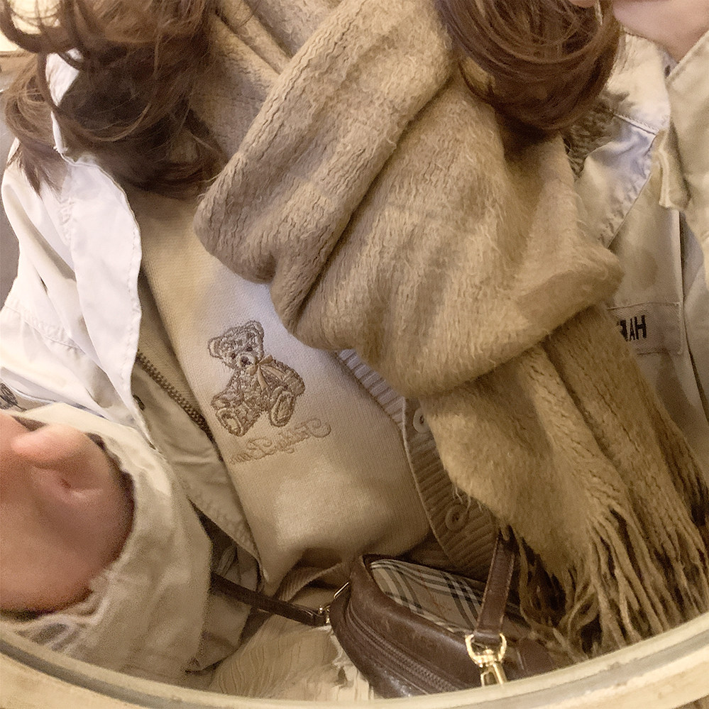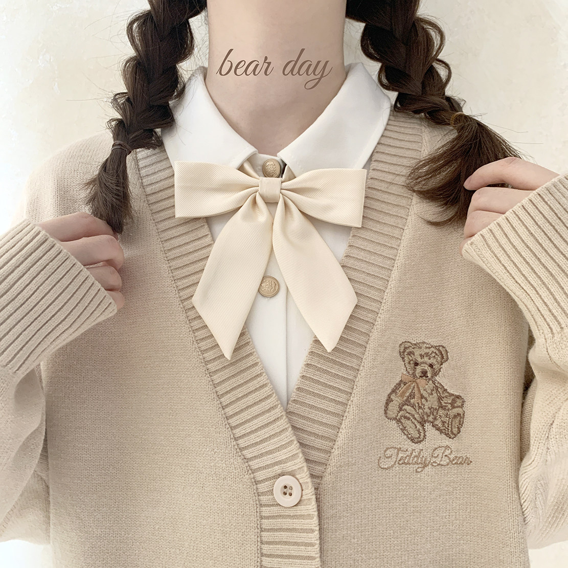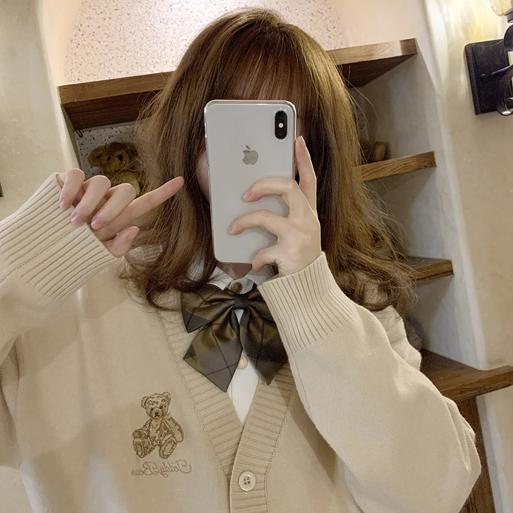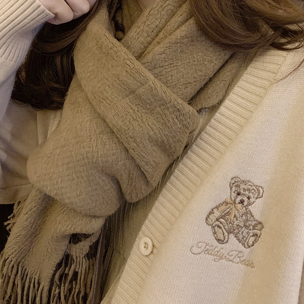 Ретро бежевый трикотажный свитер, кардиган, с вышивкой, с медвежатами, свободный крой, V-образный вырез