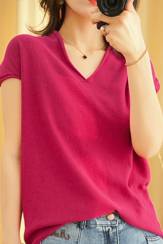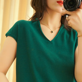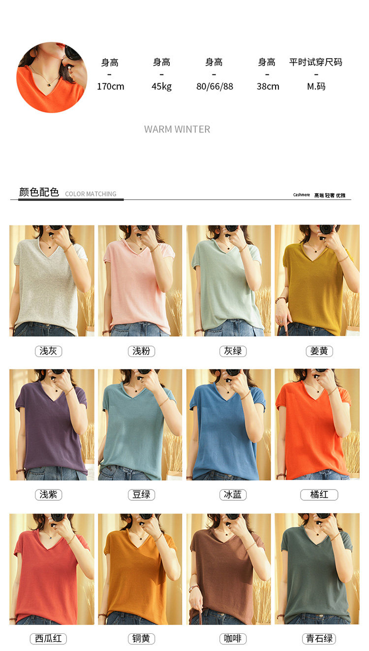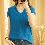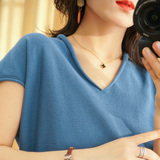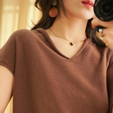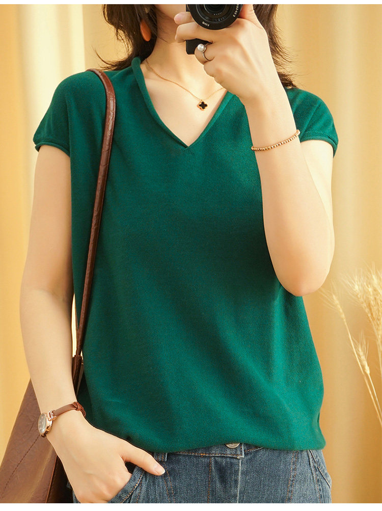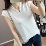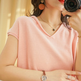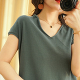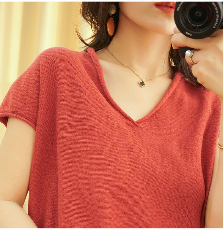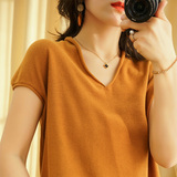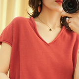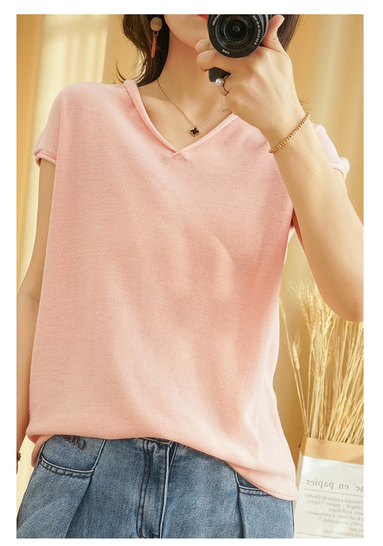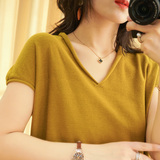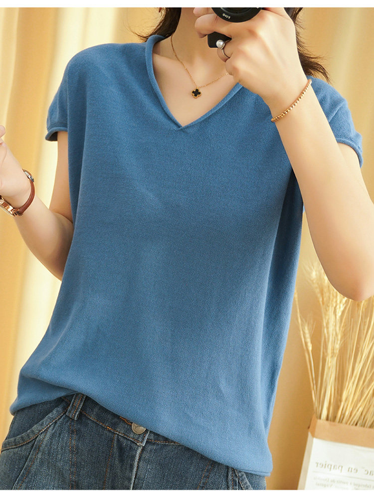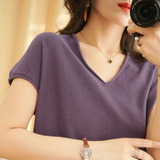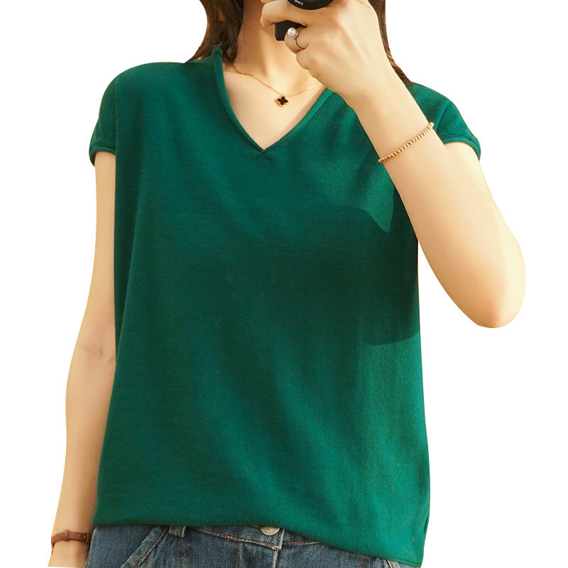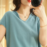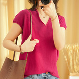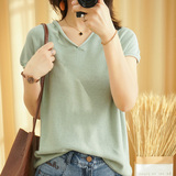 Летний тонкий трикотажный свитер, хлопковая футболка, из хлопка и льна, короткий рукав, коллекция 2021, V-образный вырез, в корейском стиле, большой размер