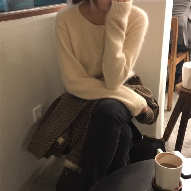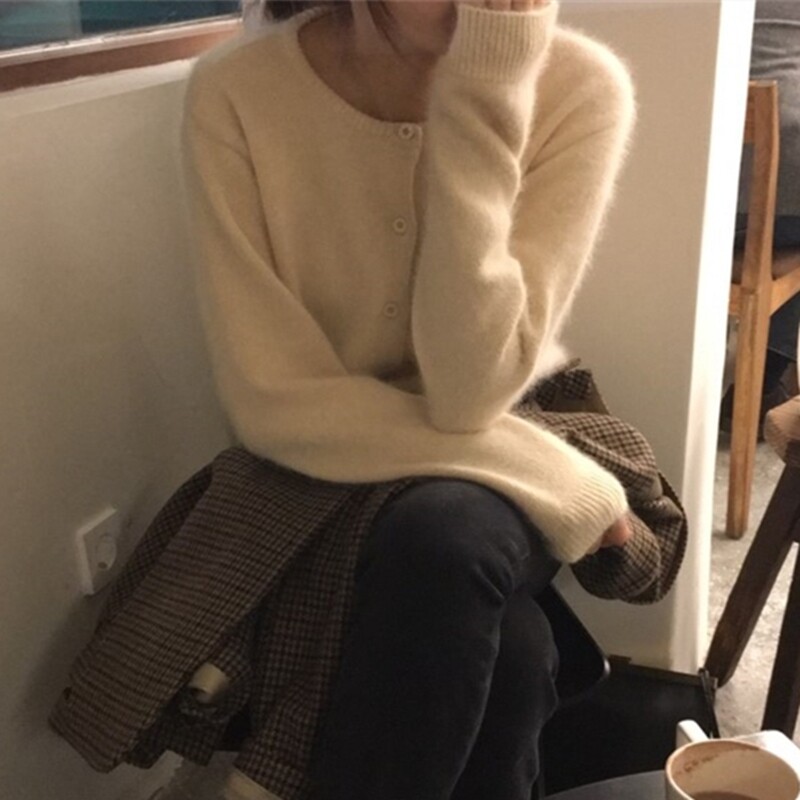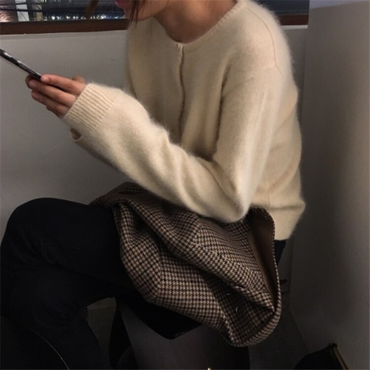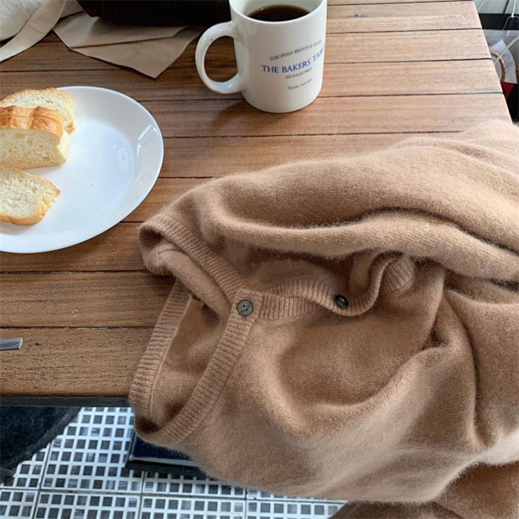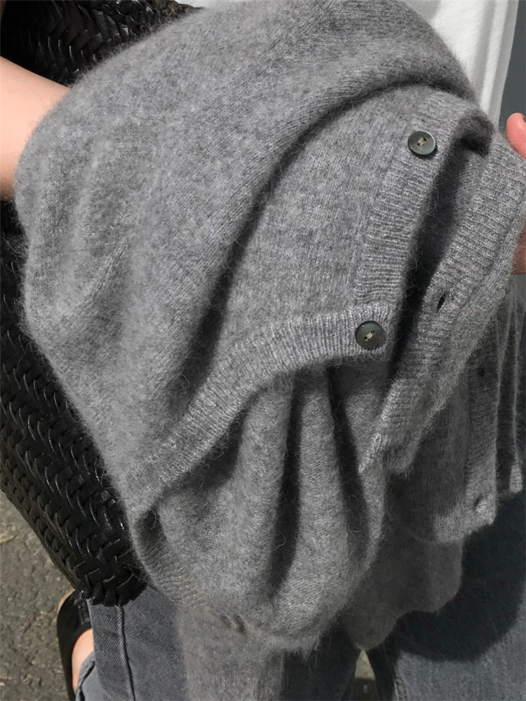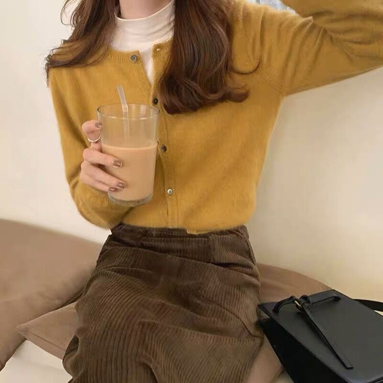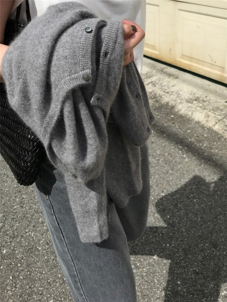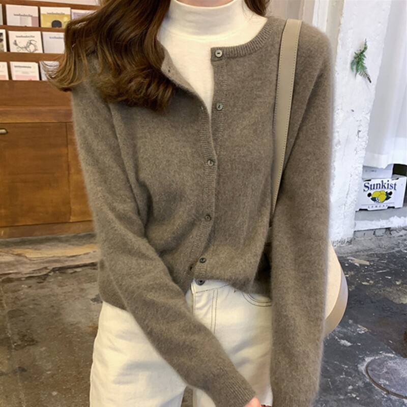 Шерстяной короткий кардиган, свитер с круглым воротником, трикотажная куртка, оверсайз