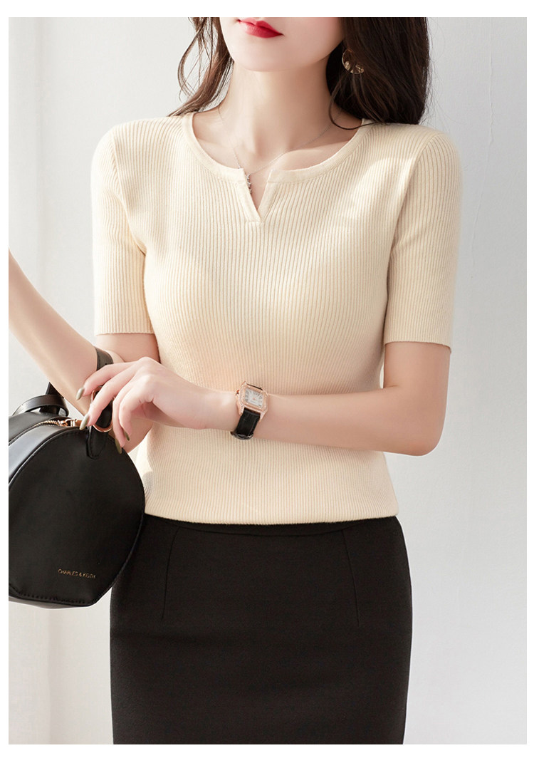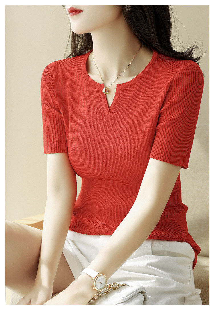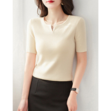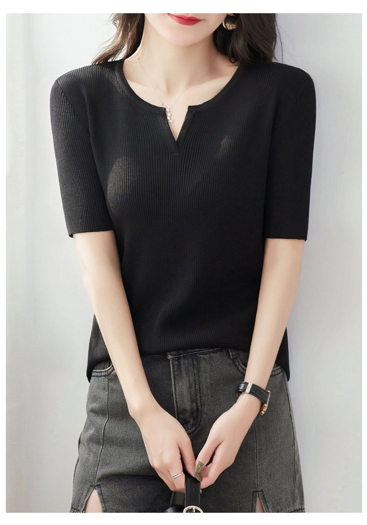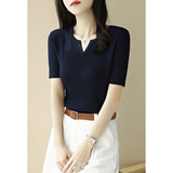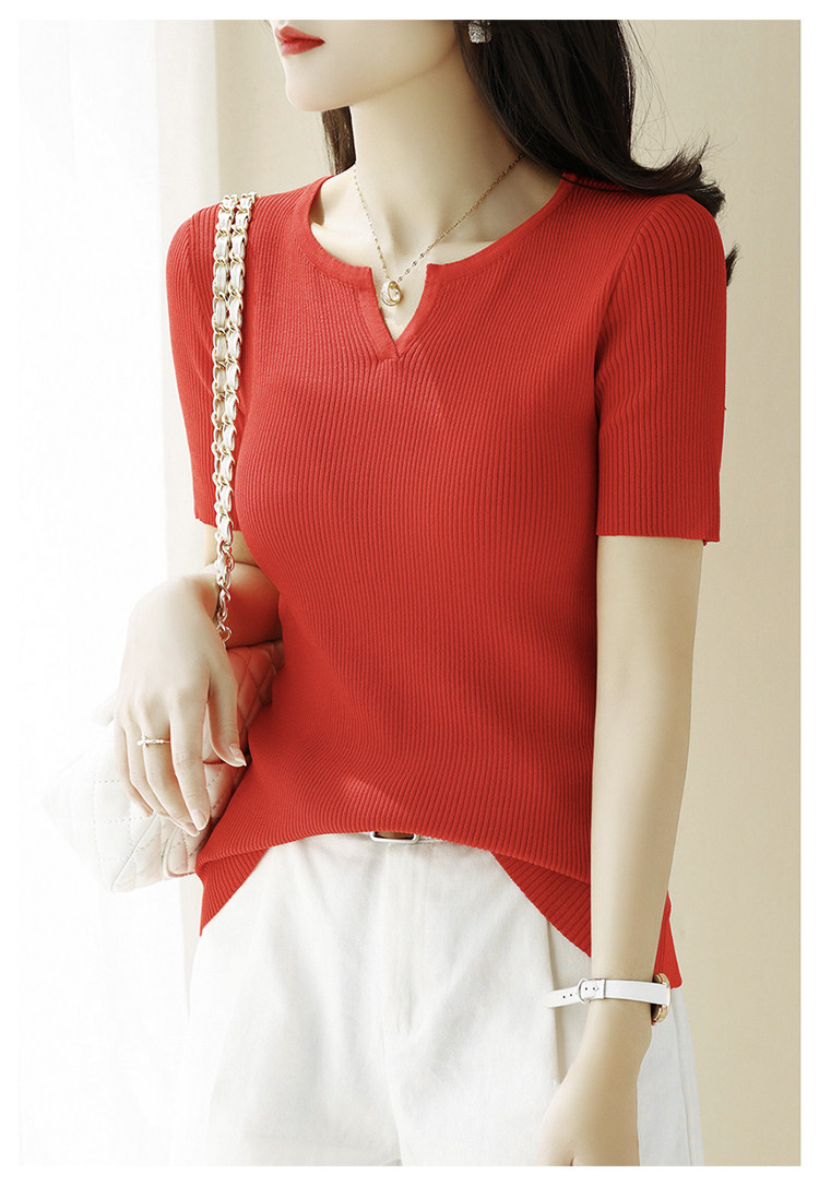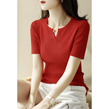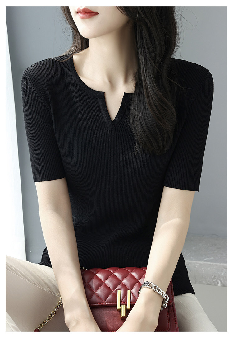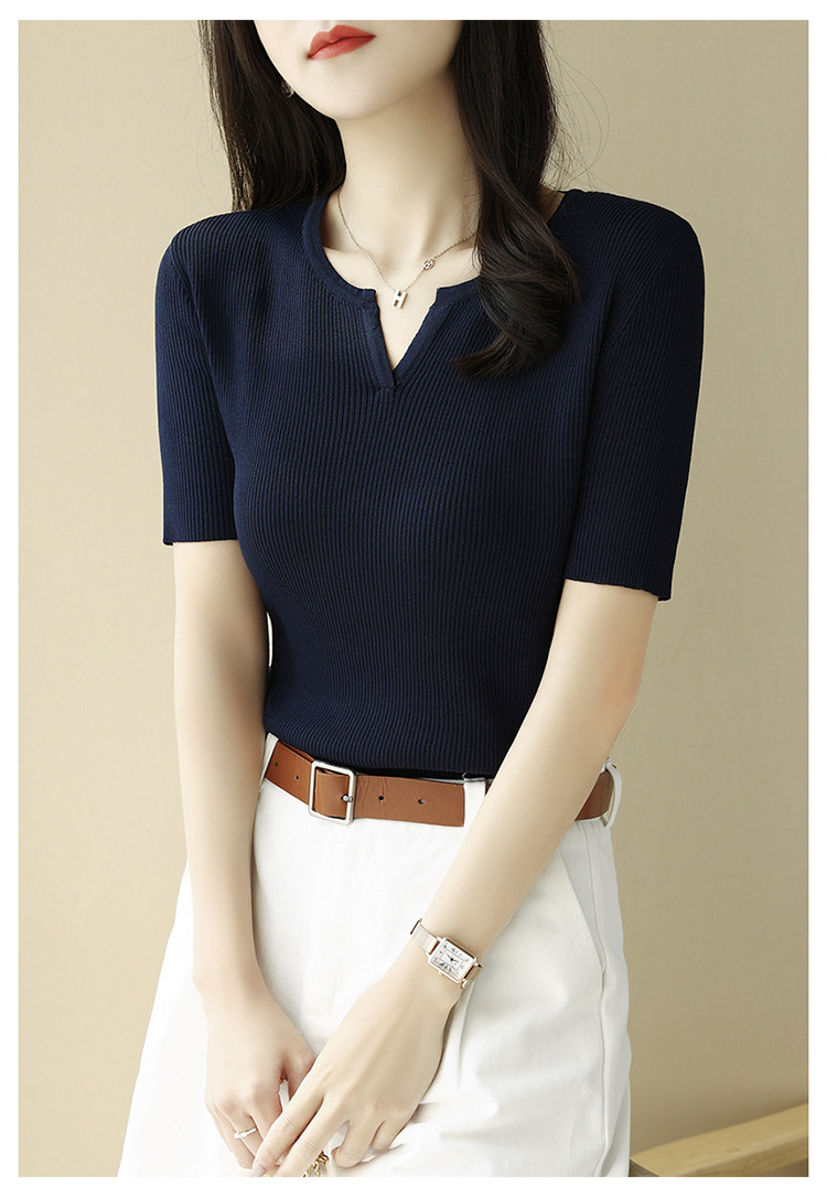 Трикотажная летняя футболка, французский стиль, V-образный вырез