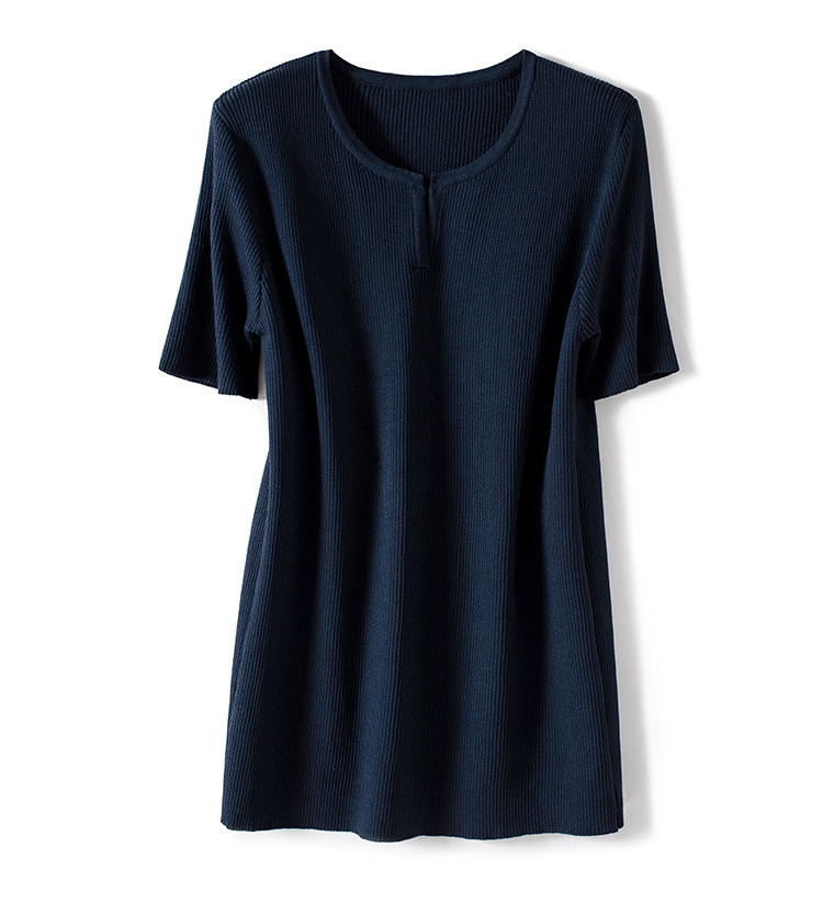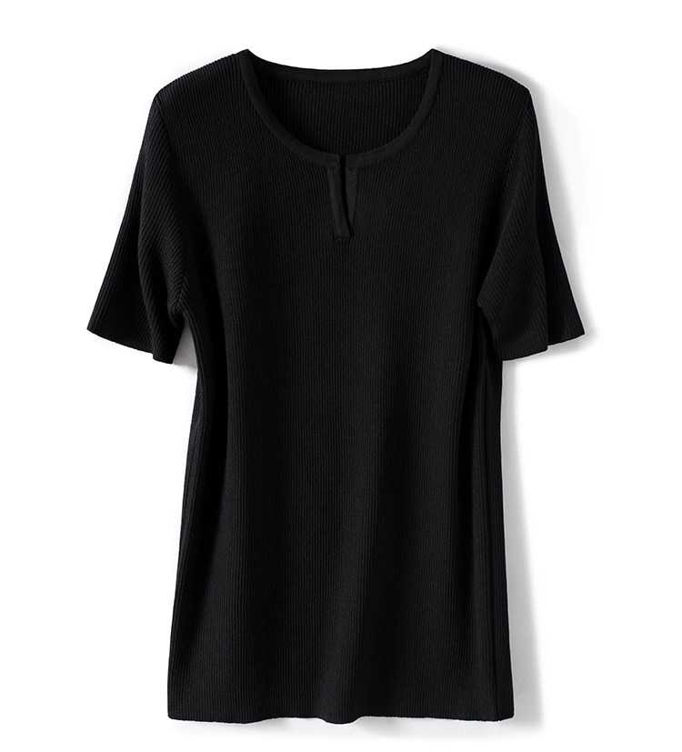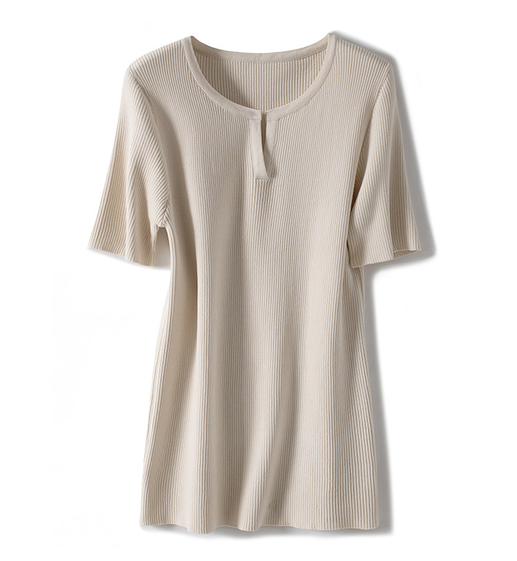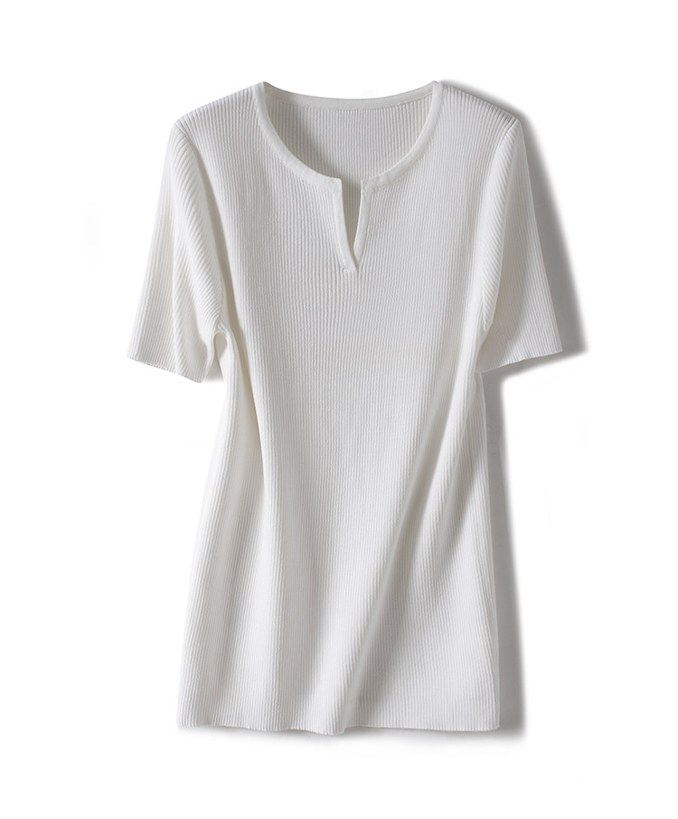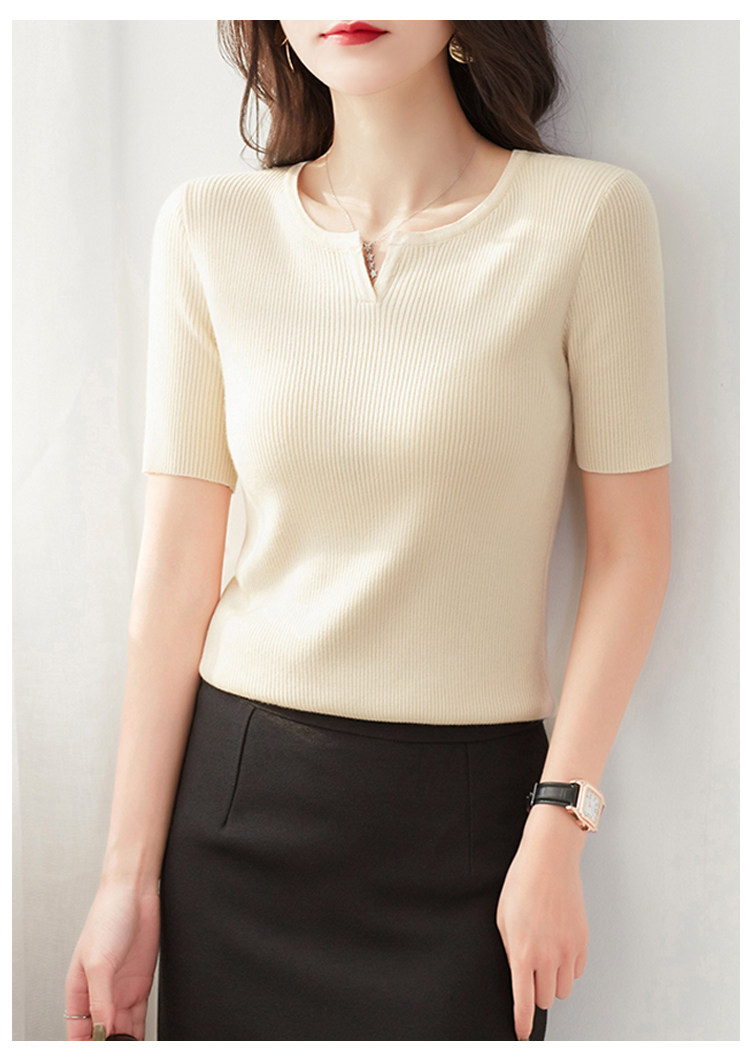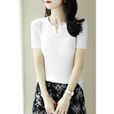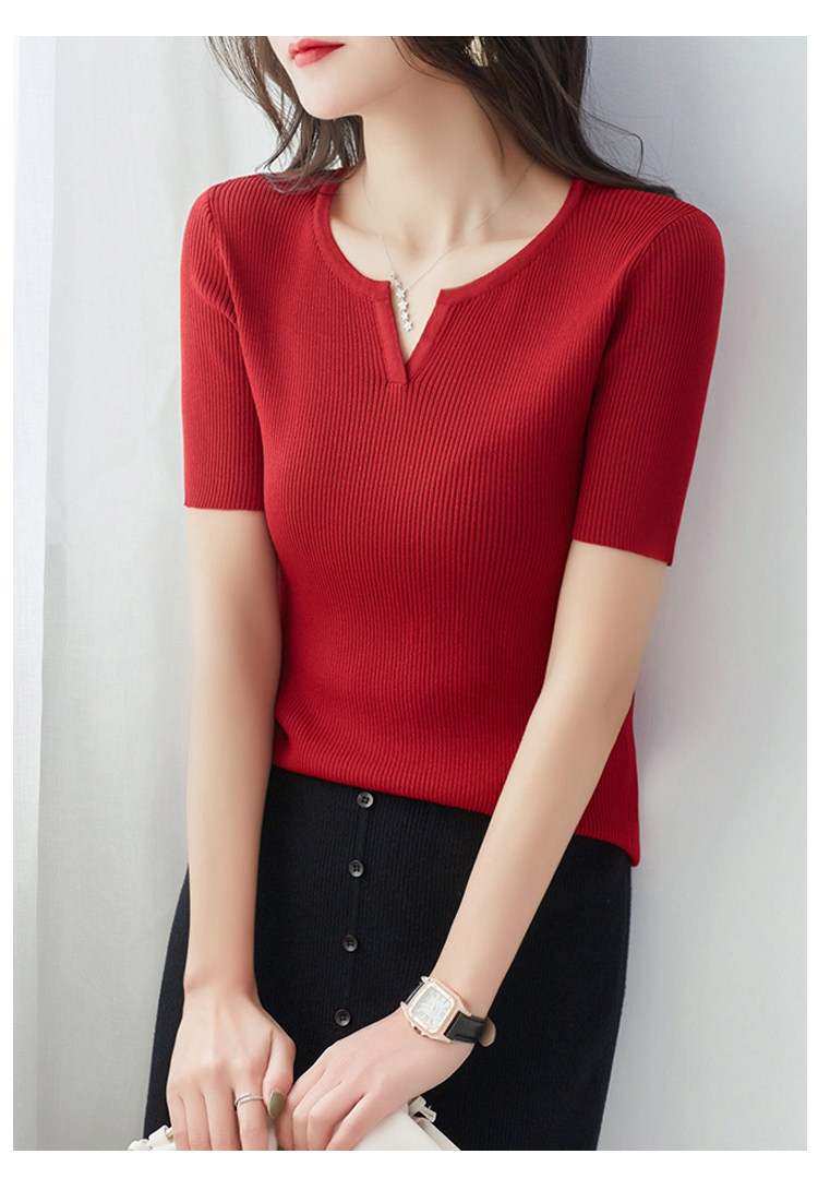 Трикотажная летняя футболка, французский стиль, V-образный вырез