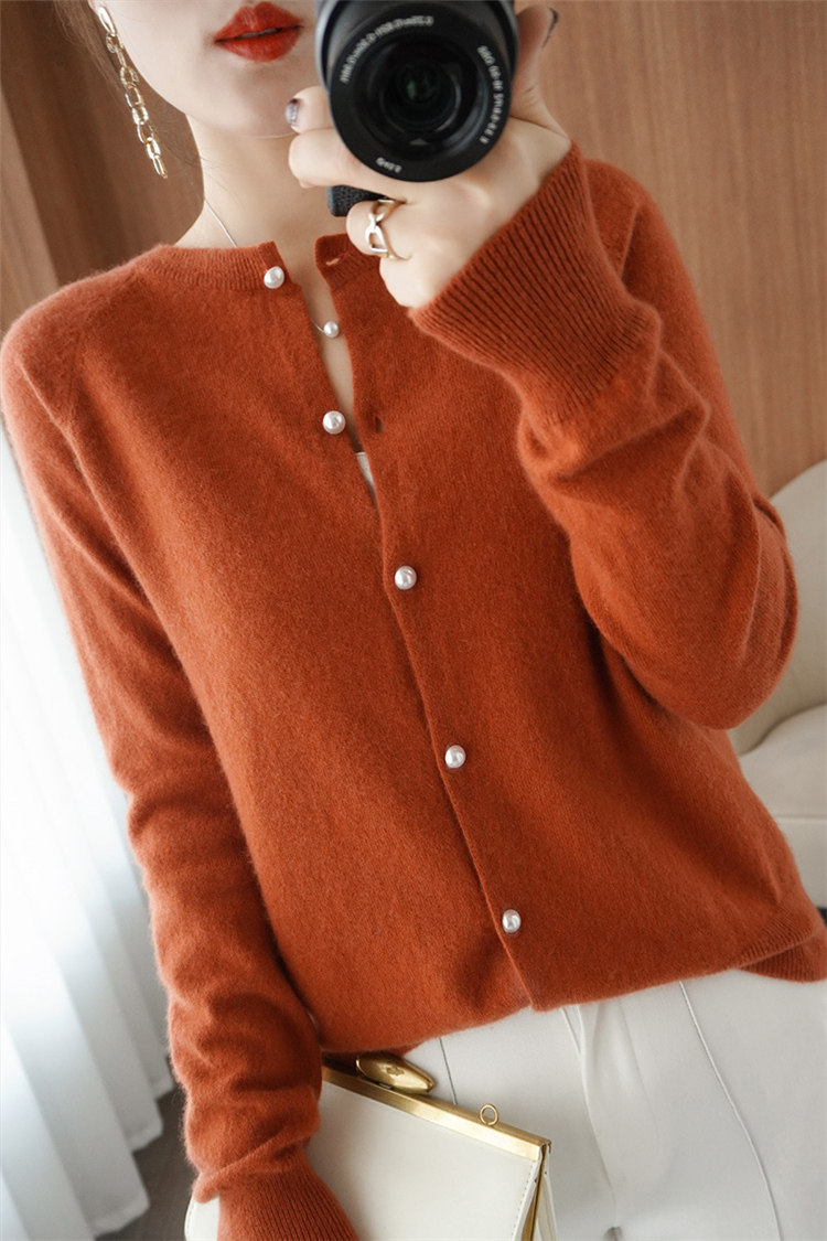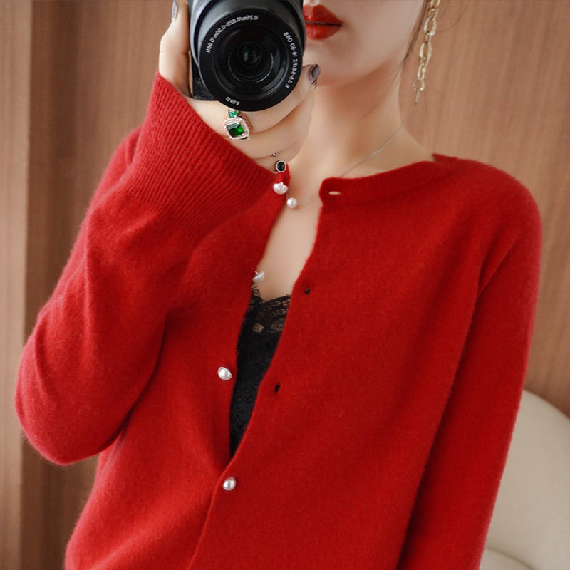 Осенний шерстяной свитер с круглым воротником, трикотажный кашемировый кардиган