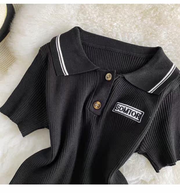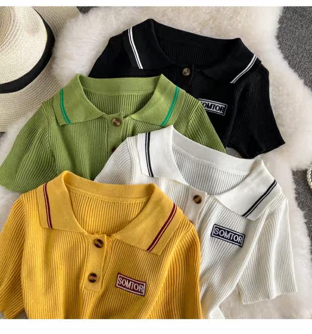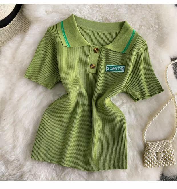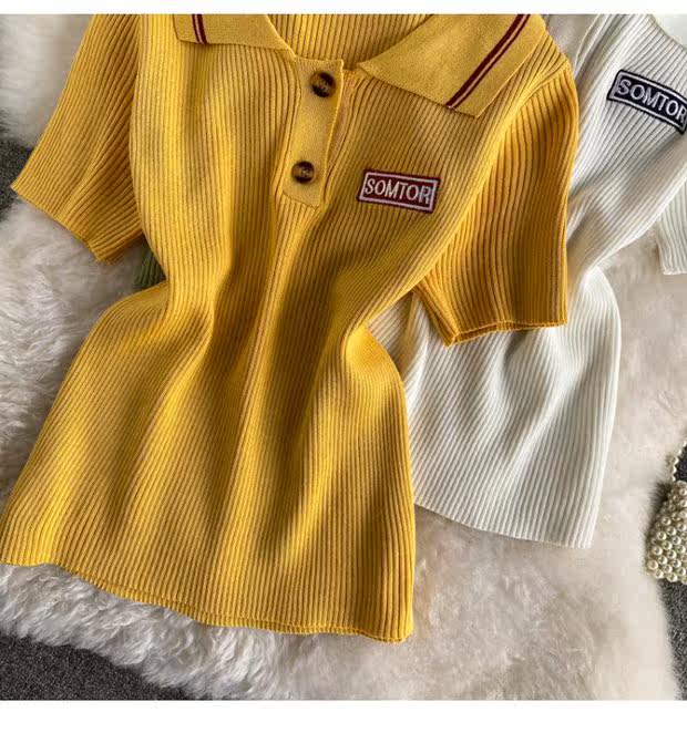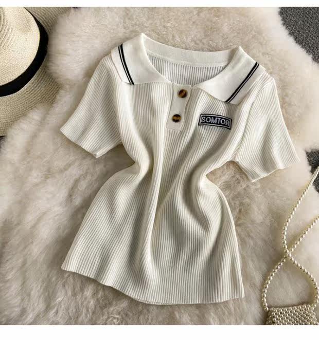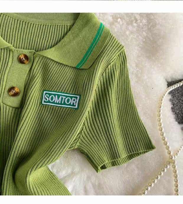 Tide, ретро трикотажный летний свитер, летняя одежда, футболка с коротким рукавом для школьников и студентов, коллекция 2021, в корейском стиле