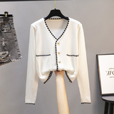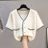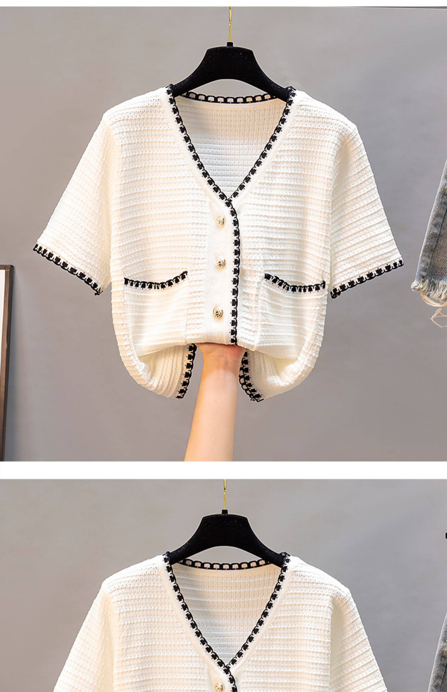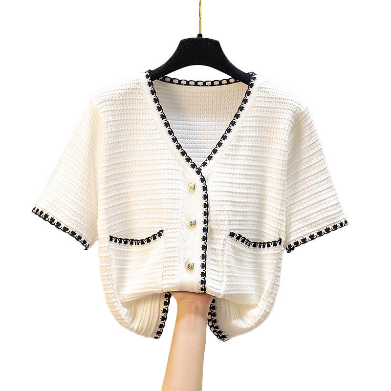 Шелковая футболка, трикотажный летний короткий белый свитер, 2021 года, в корейском стиле, V-образный вырез