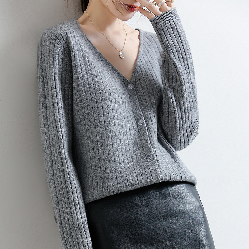 Шерстяной кашемировый кардиган, трикотажная короткая осенняя куртка, тонкий свитер, 2021 года, V-образный вырез