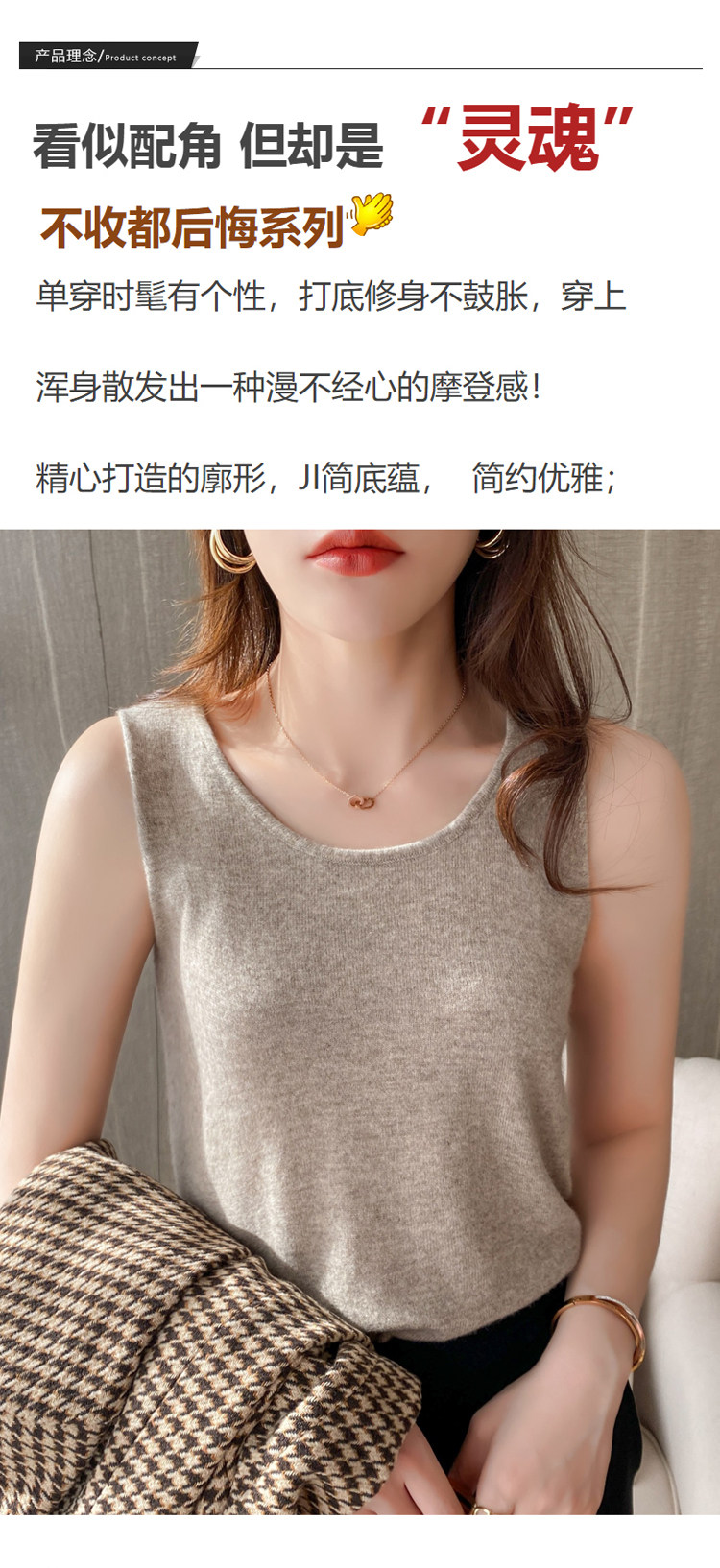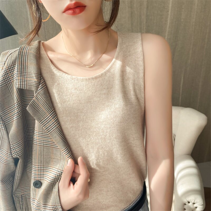 Трикотажная кашемировая летняя демисезонная базовая майка, приятный телу жилет
