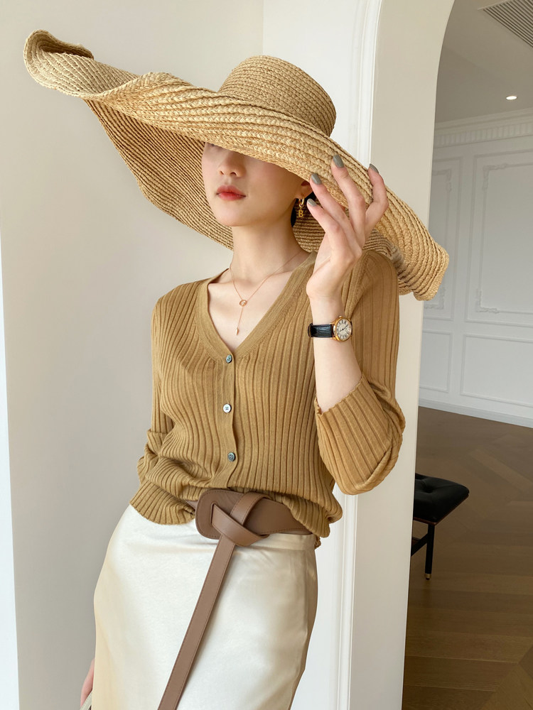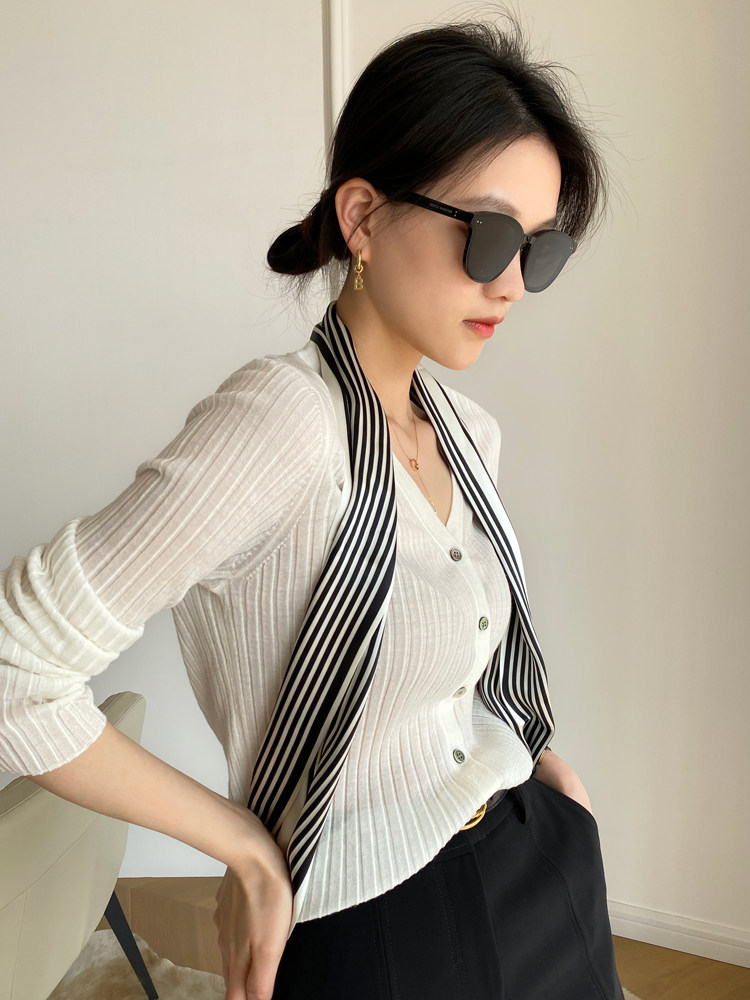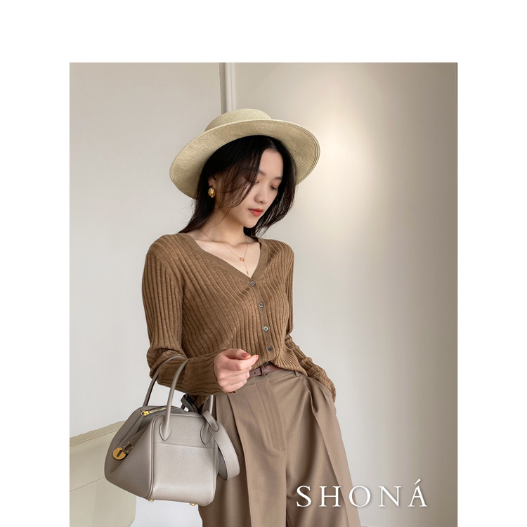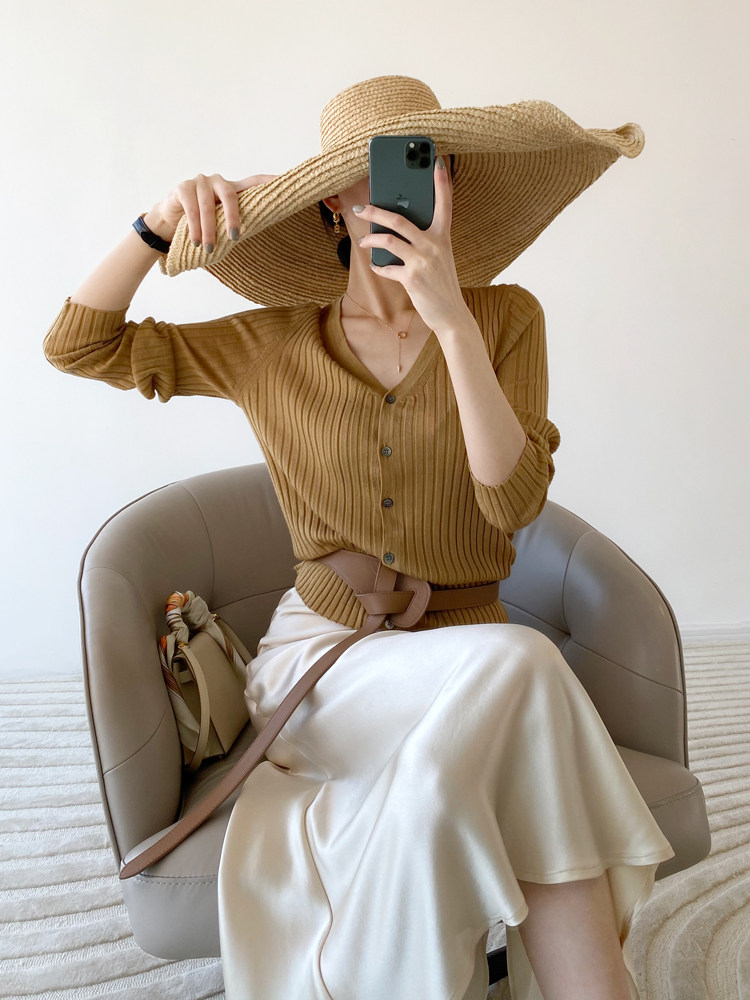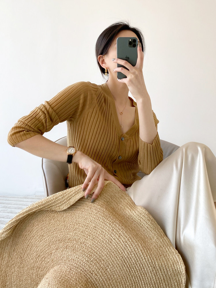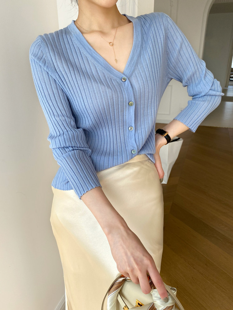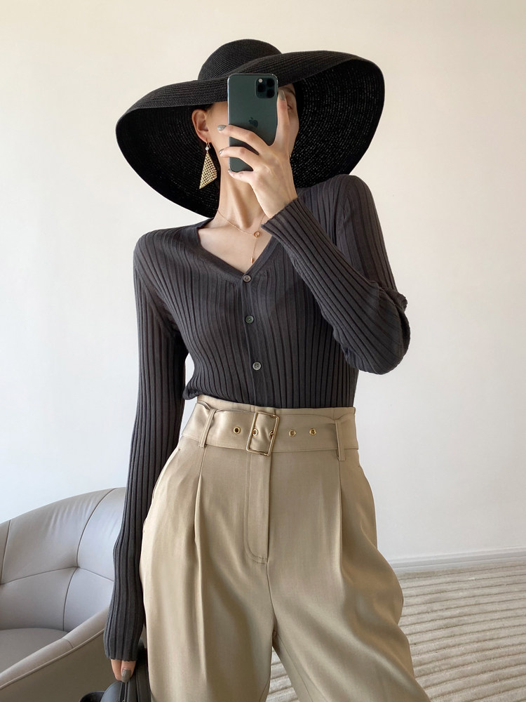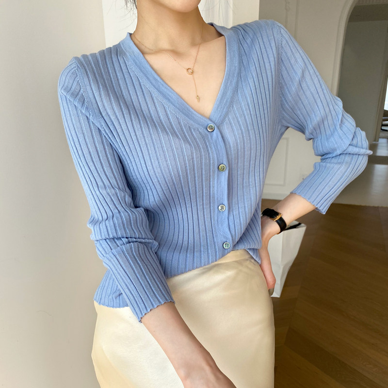 Дыхательный шерстяной импортный качественный летний лонгслив, тонкий кардиган, облегающий крой, V-образный вырез