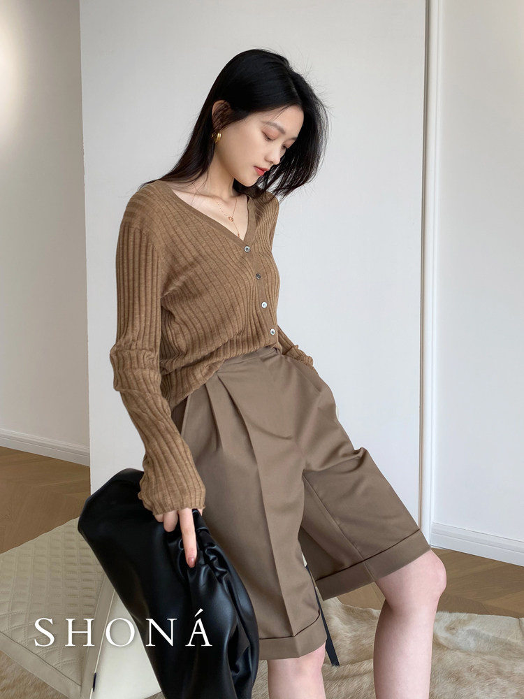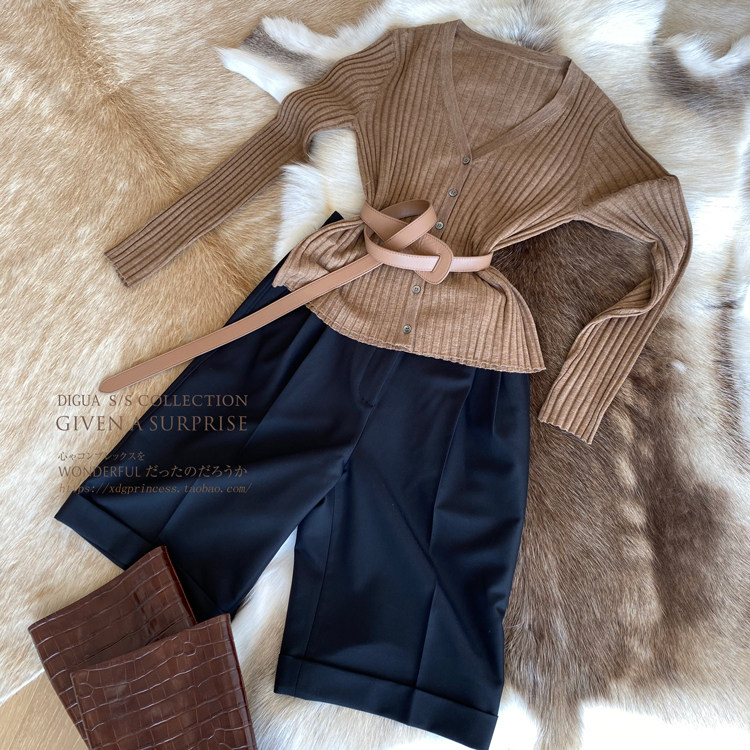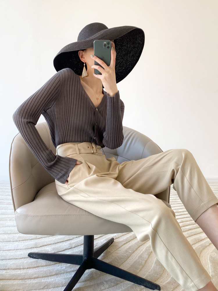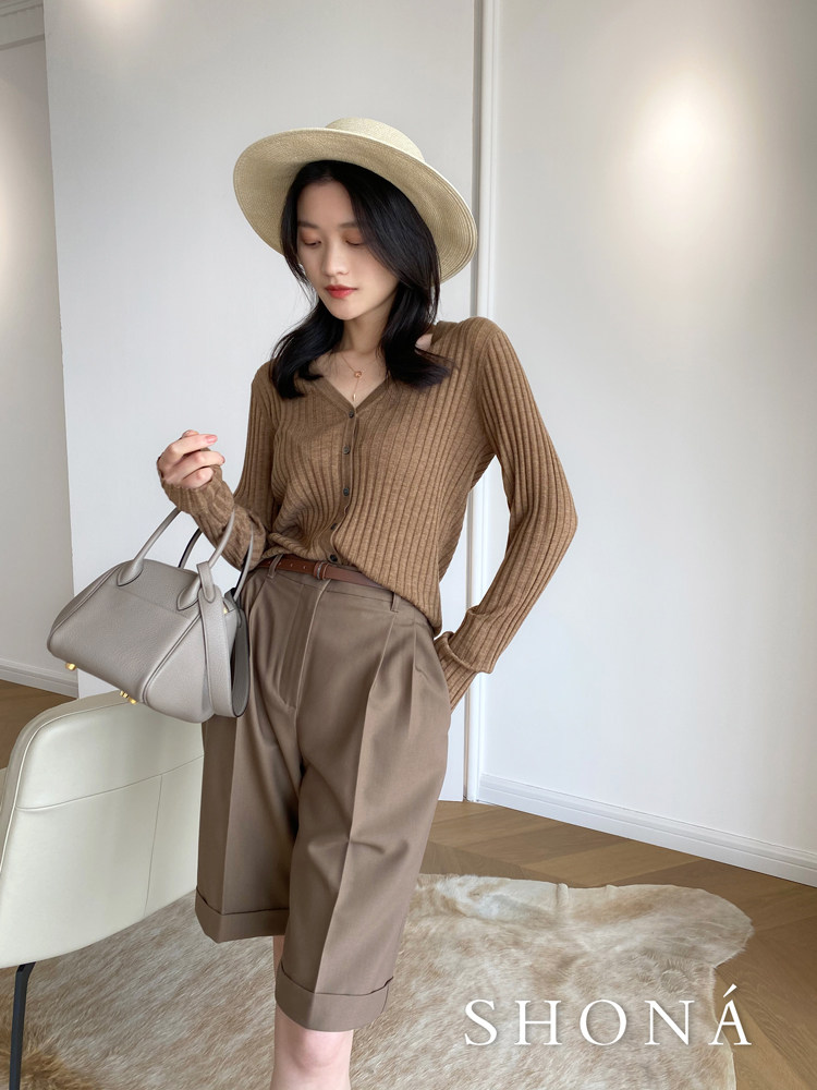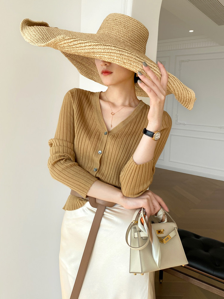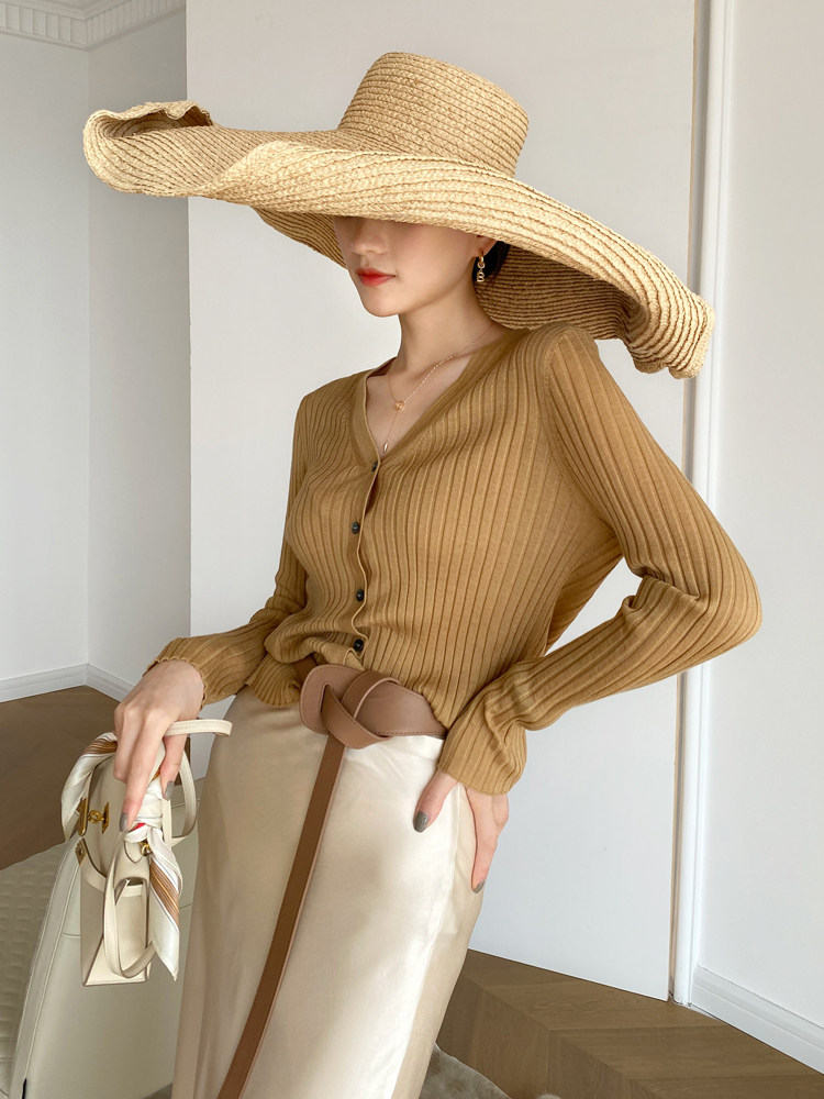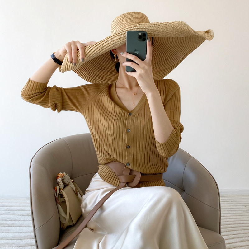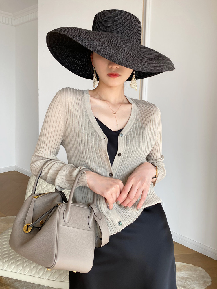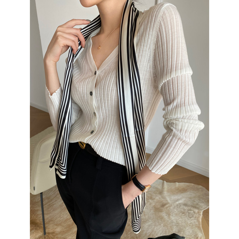 Дыхательный шерстяной импортный качественный летний лонгслив, тонкий кардиган, облегающий крой, V-образный вырез