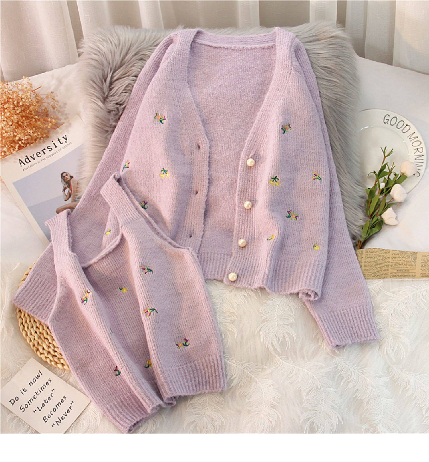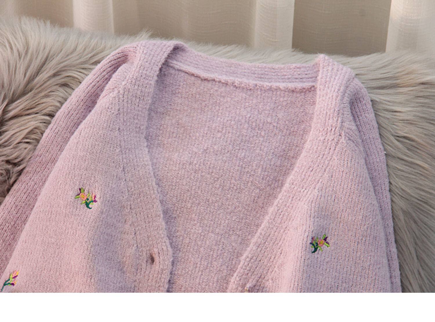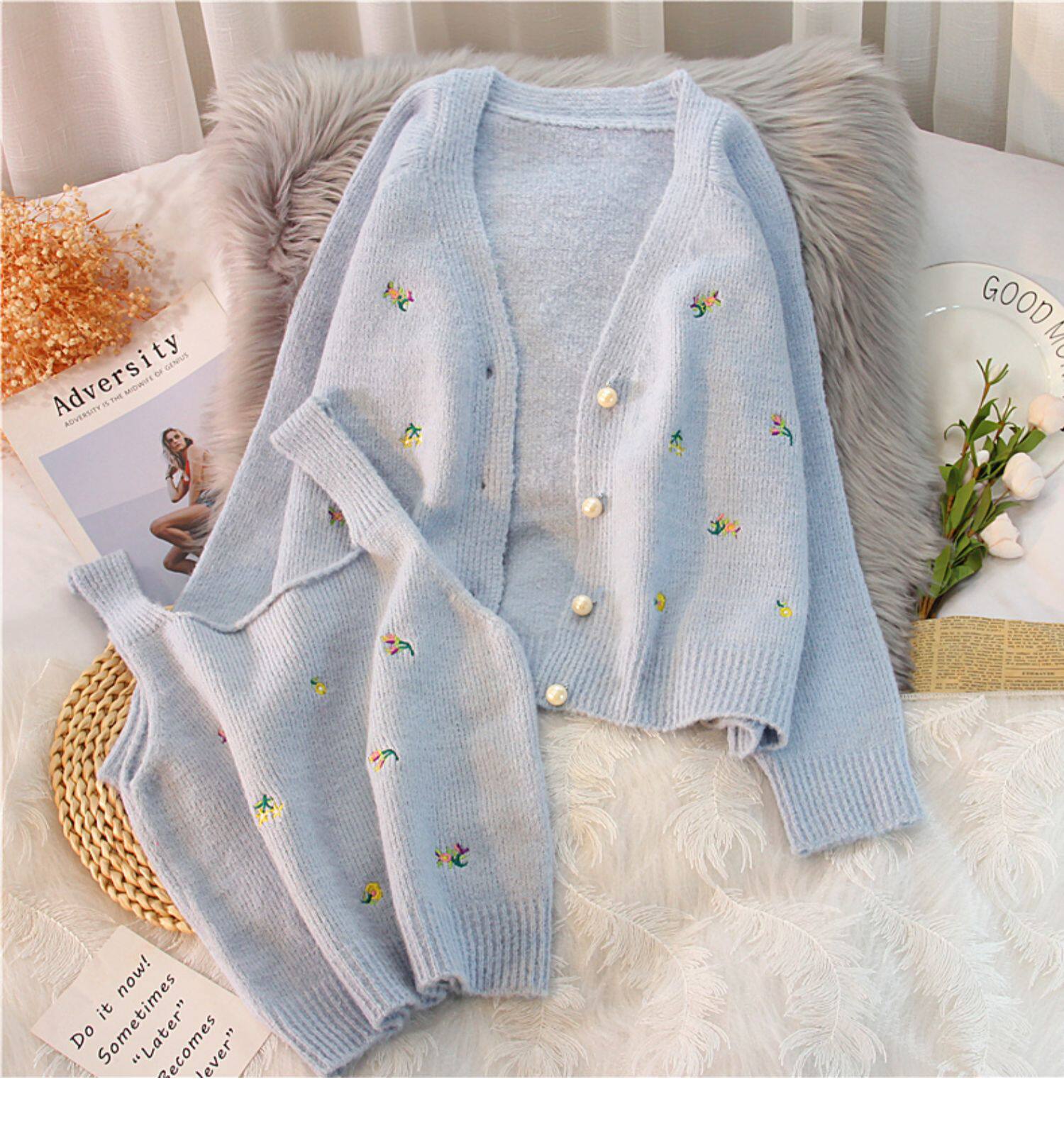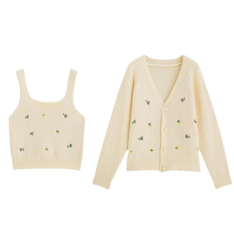 Весенний свитер, кардиган, короткий комплект, коллекция 2022, с вышивкой, в западном стиле, эффект подтяжки