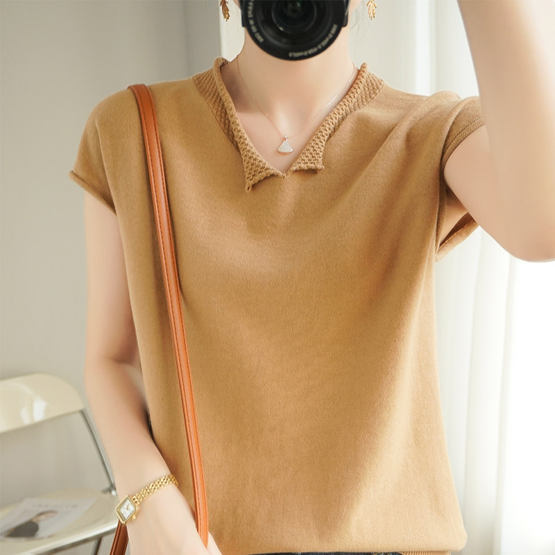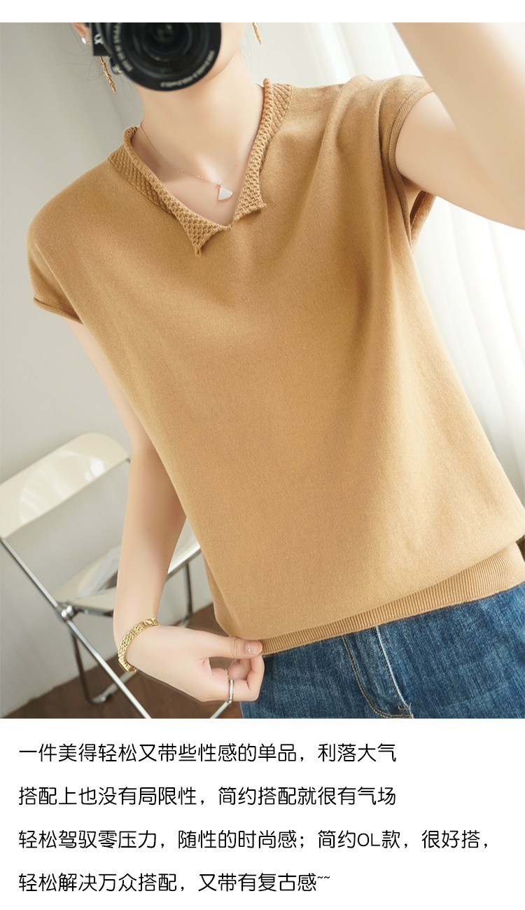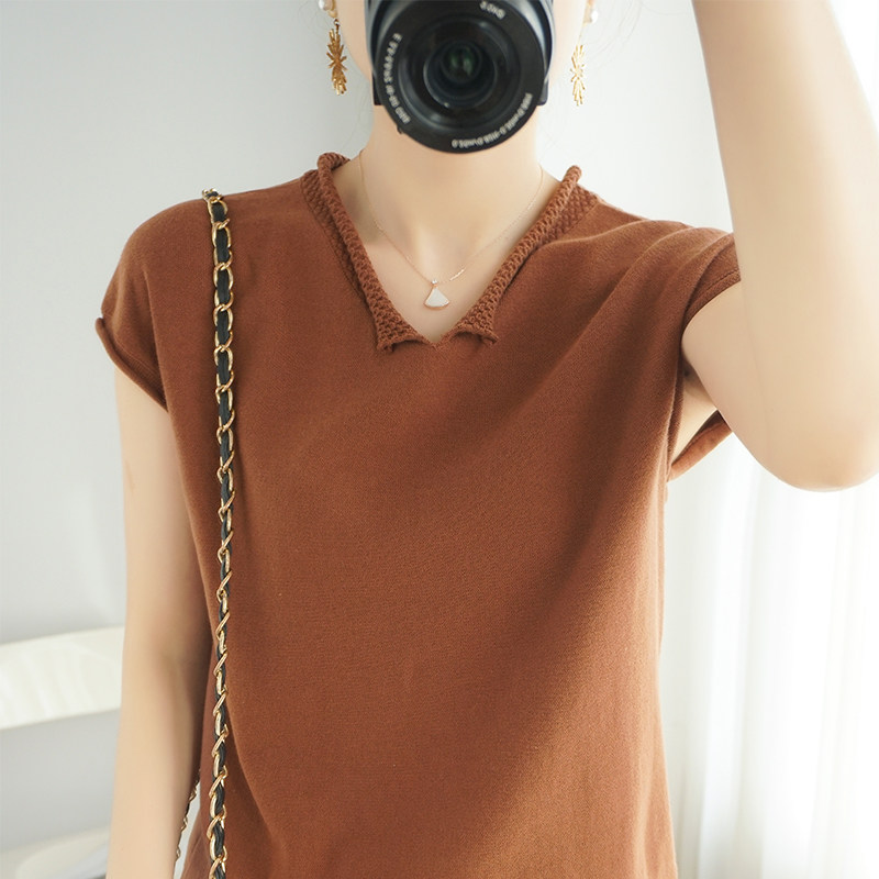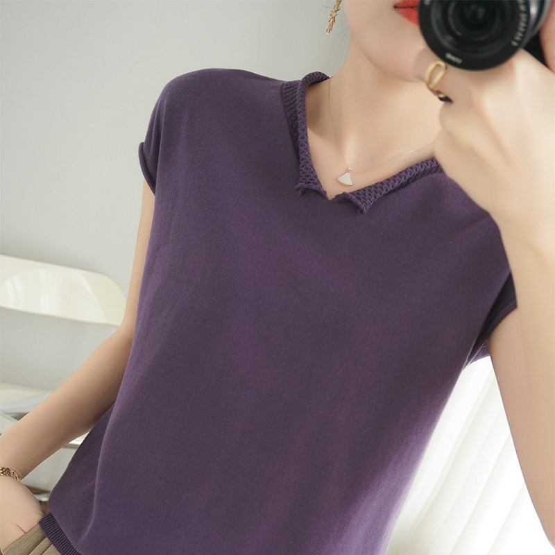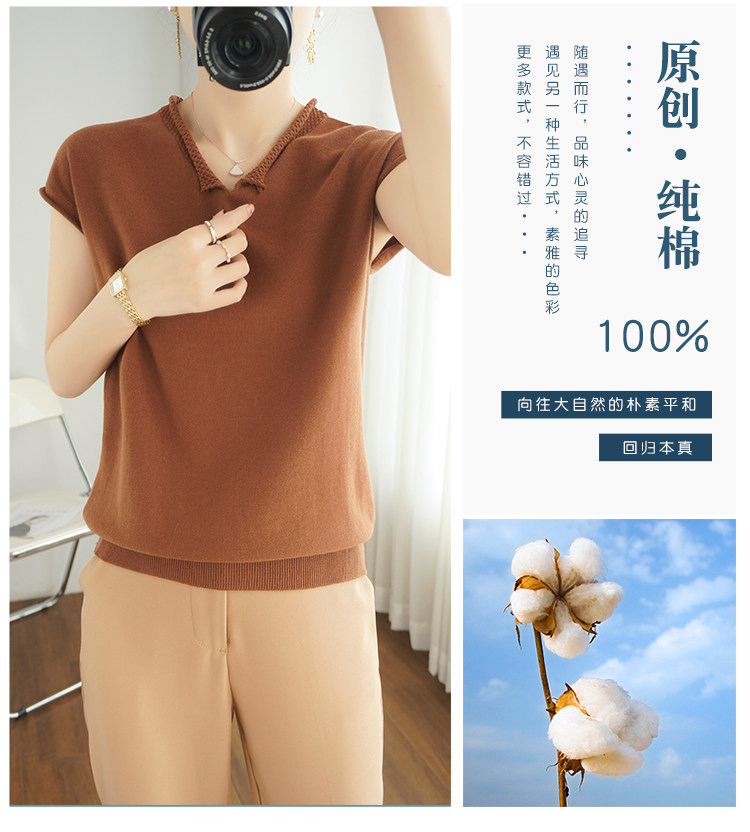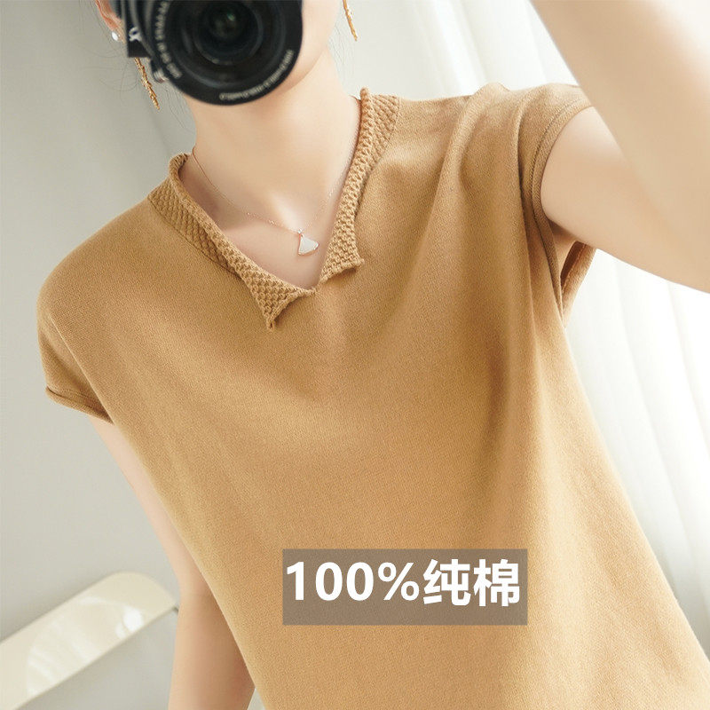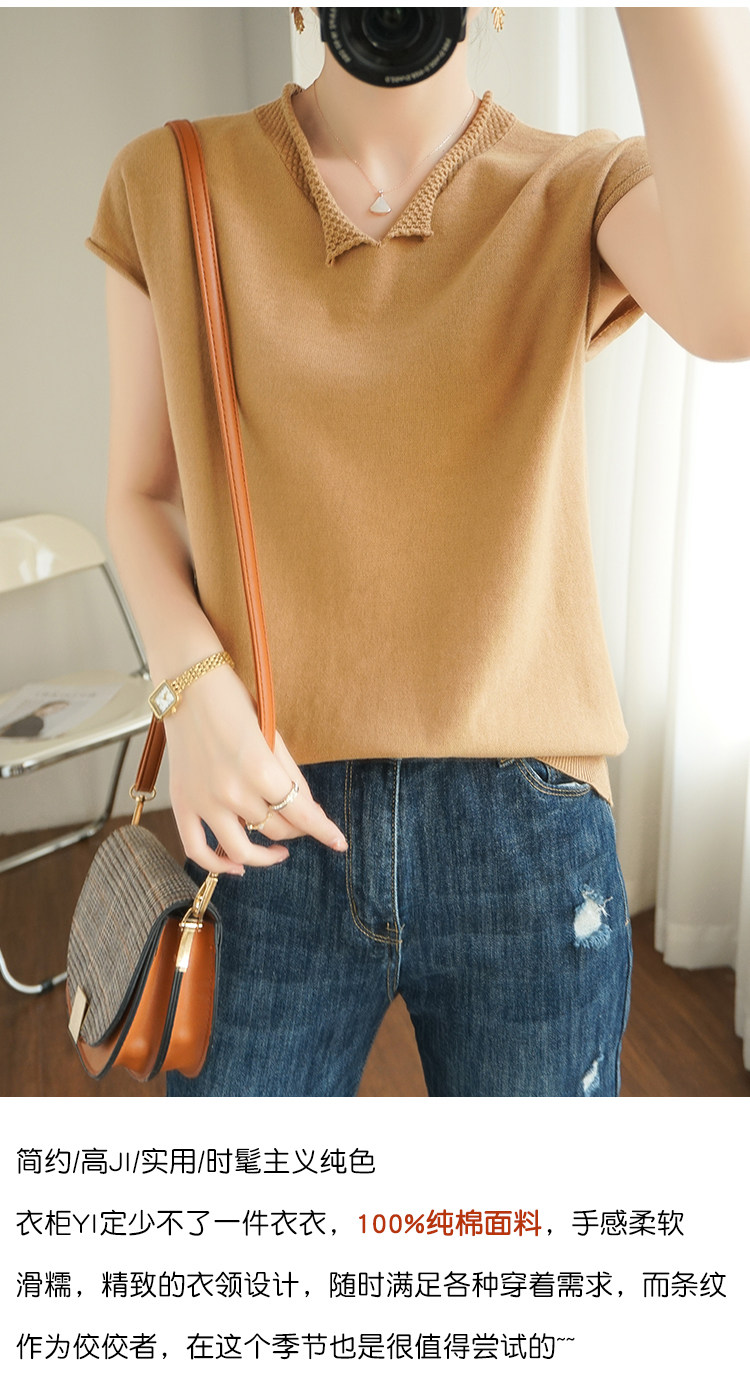 Трикотажная хлопковая базовая приятная телу летняя футболка, коллекция 2021, из хлопка и льна, короткий рукав, V-образный вырез, большой размер, в корейском стиле