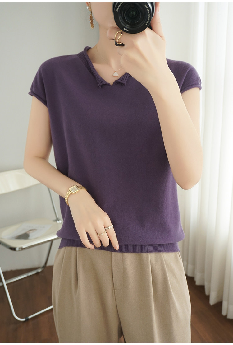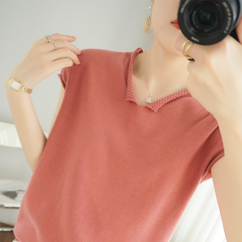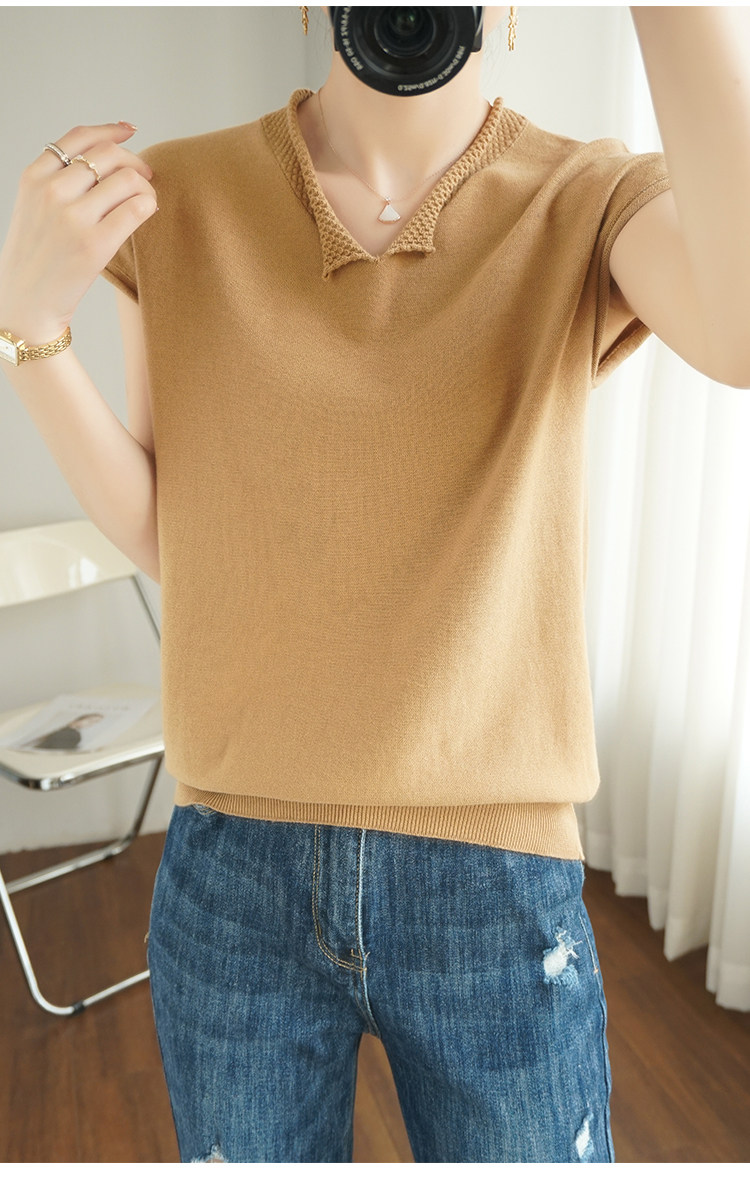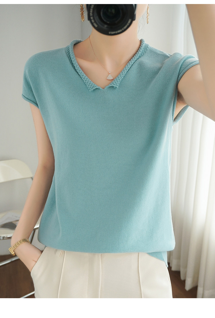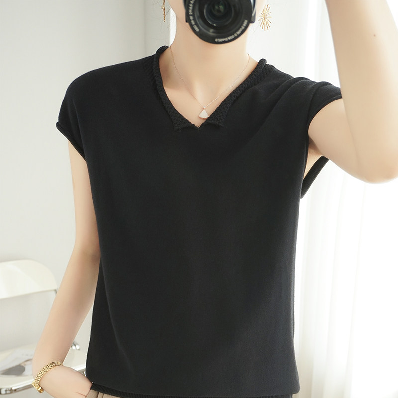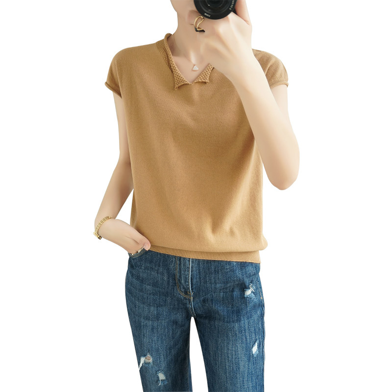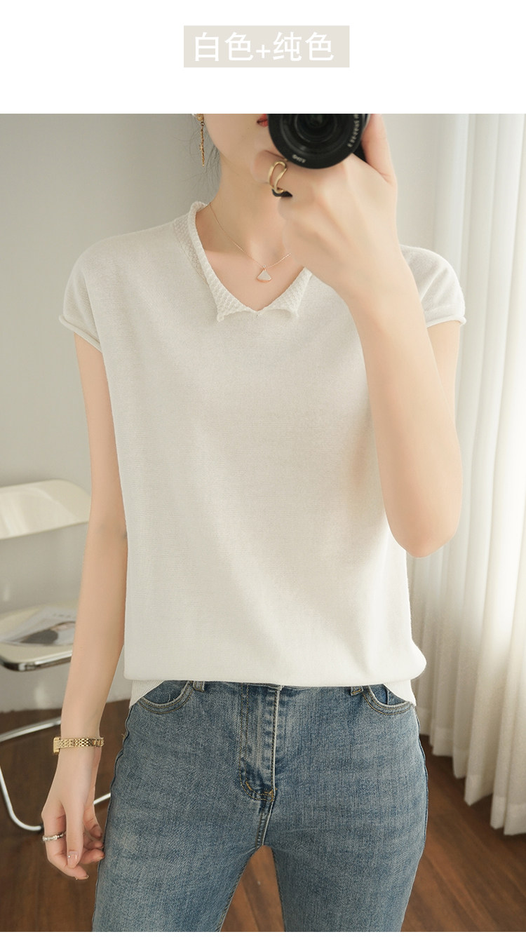 Трикотажная хлопковая базовая приятная телу летняя футболка, коллекция 2021, из хлопка и льна, короткий рукав, V-образный вырез, большой размер, в корейском стиле