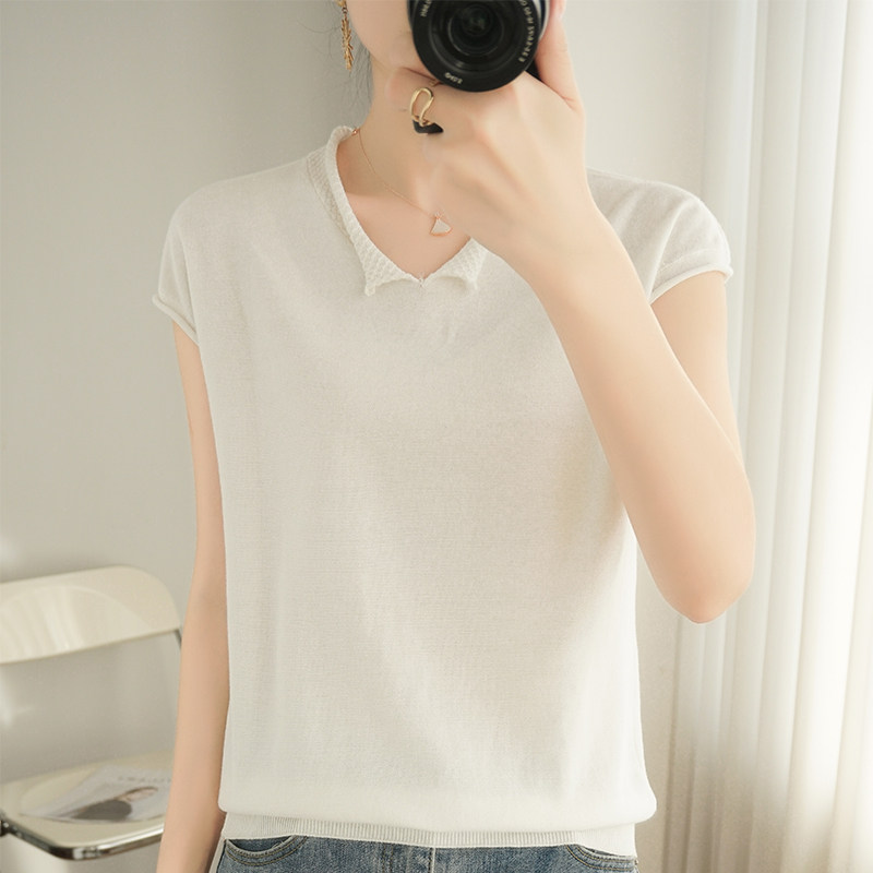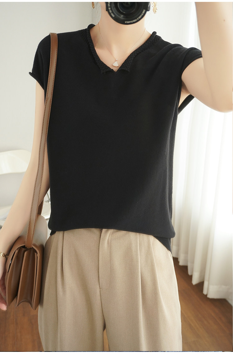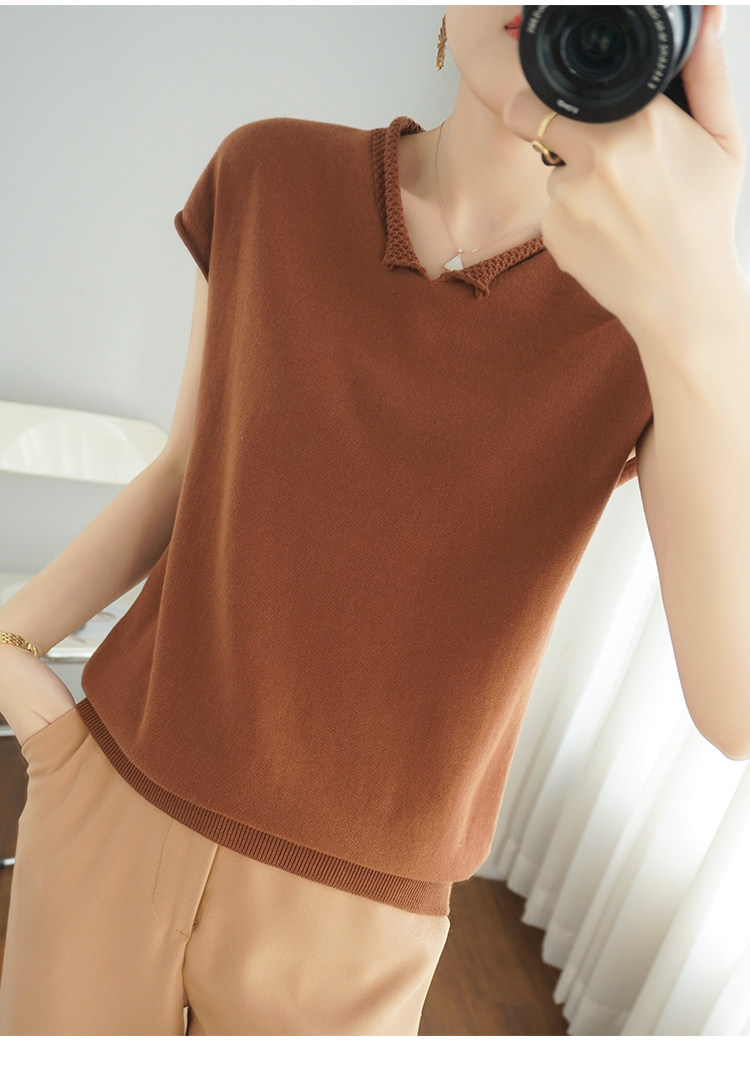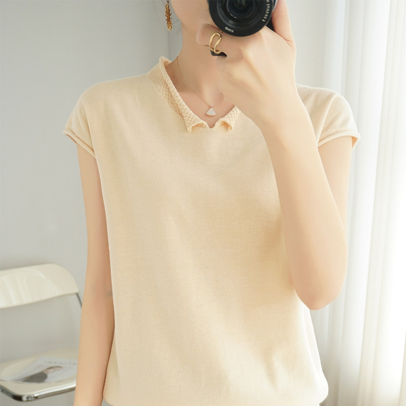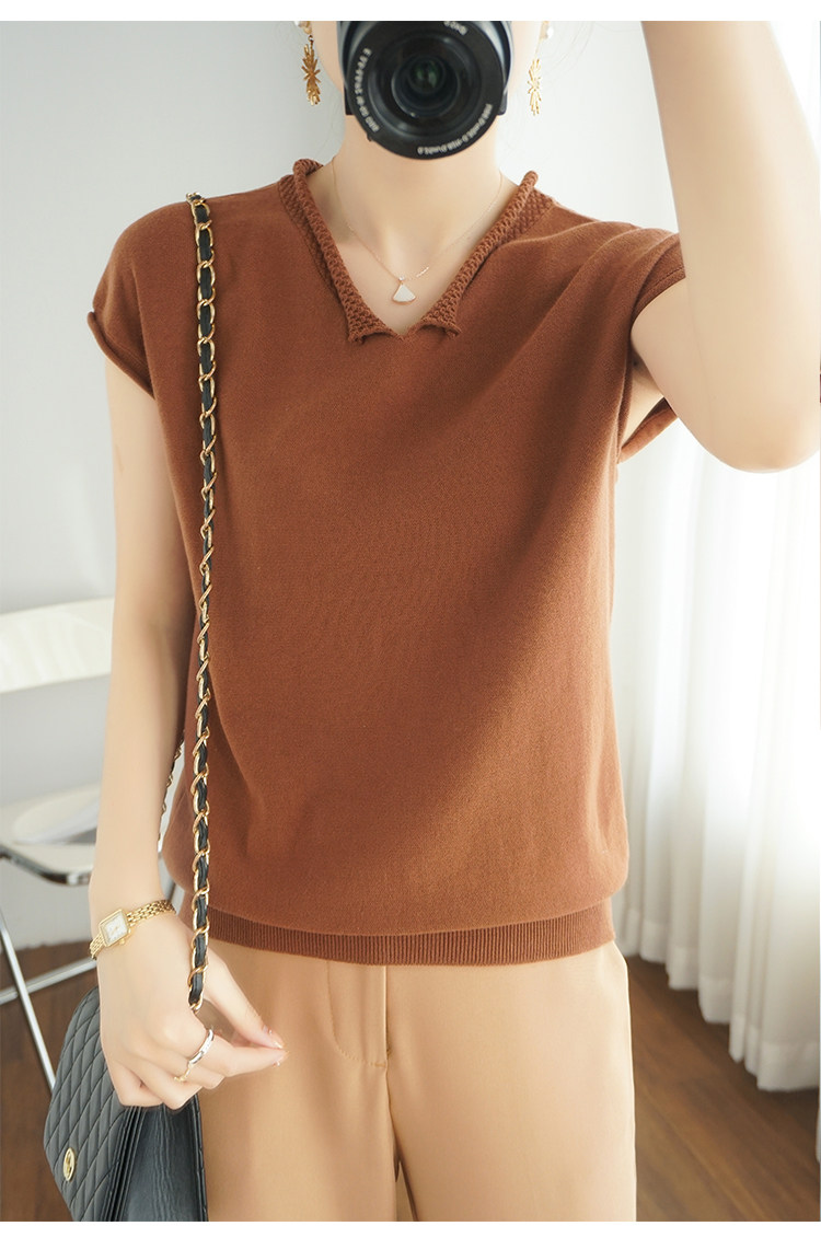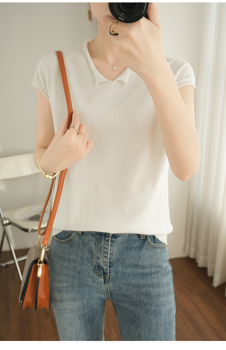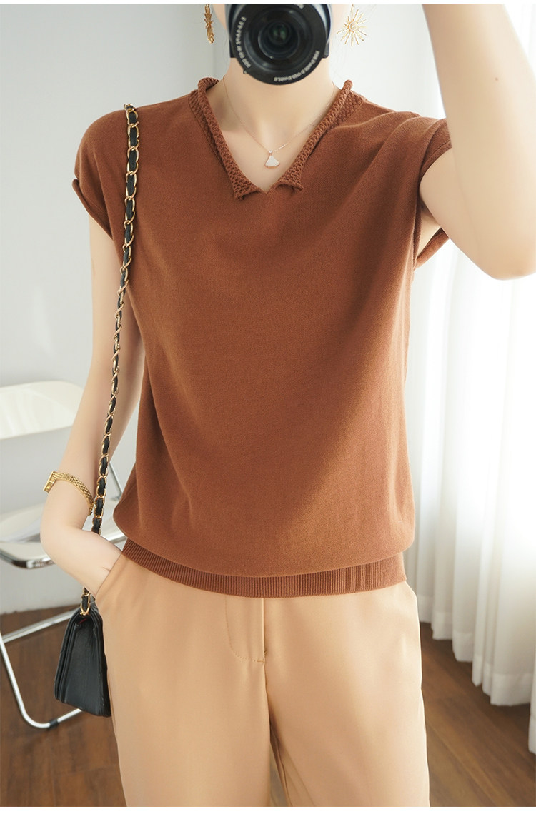 Трикотажная хлопковая базовая приятная телу летняя футболка, коллекция 2021, из хлопка и льна, короткий рукав, V-образный вырез, большой размер, в корейском стиле