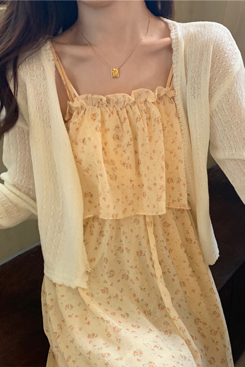 | Цвет: | Белый кардиган, Желтое платье |