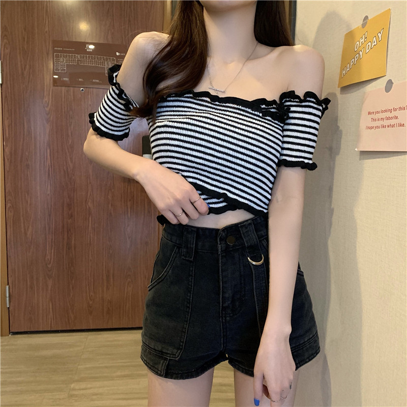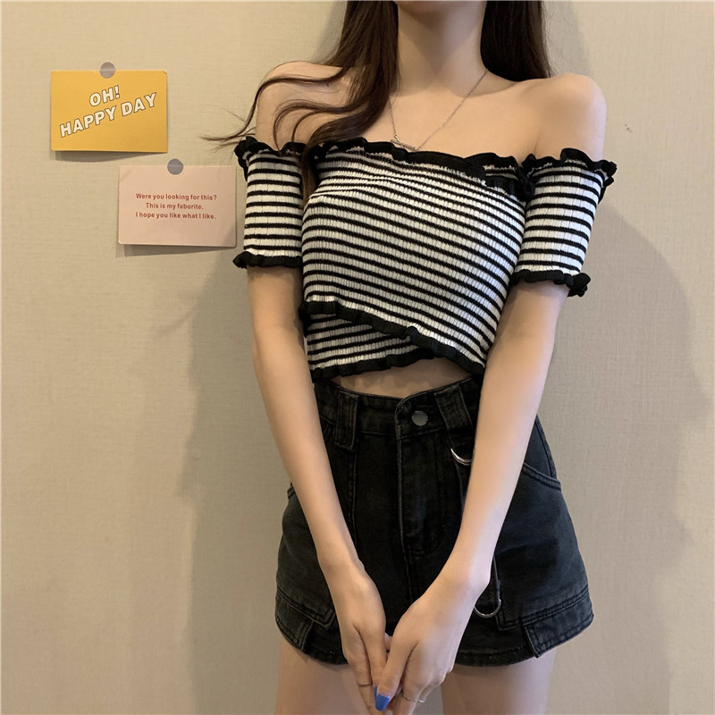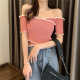 Летний дизайнерский трикотажный короткий свитер, открытые плечи, дизайн крест-накрест